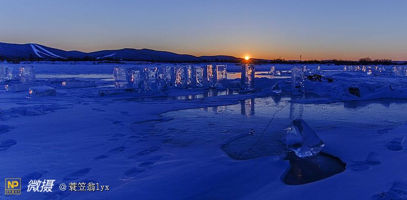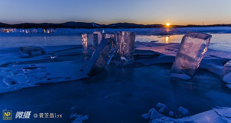 夕阳映冰