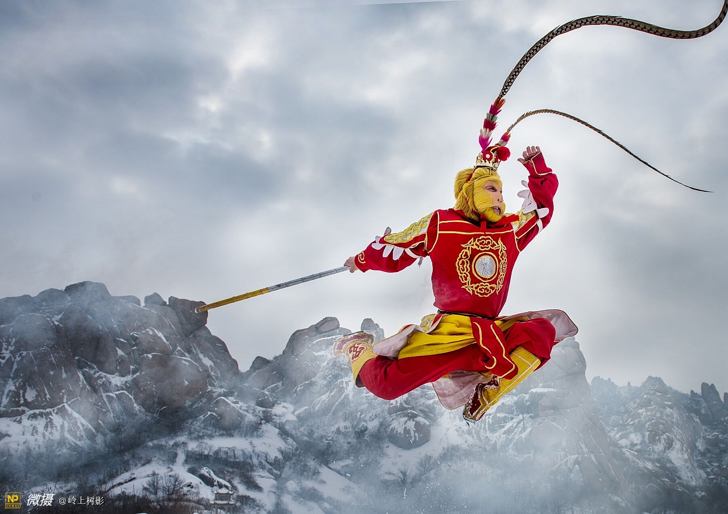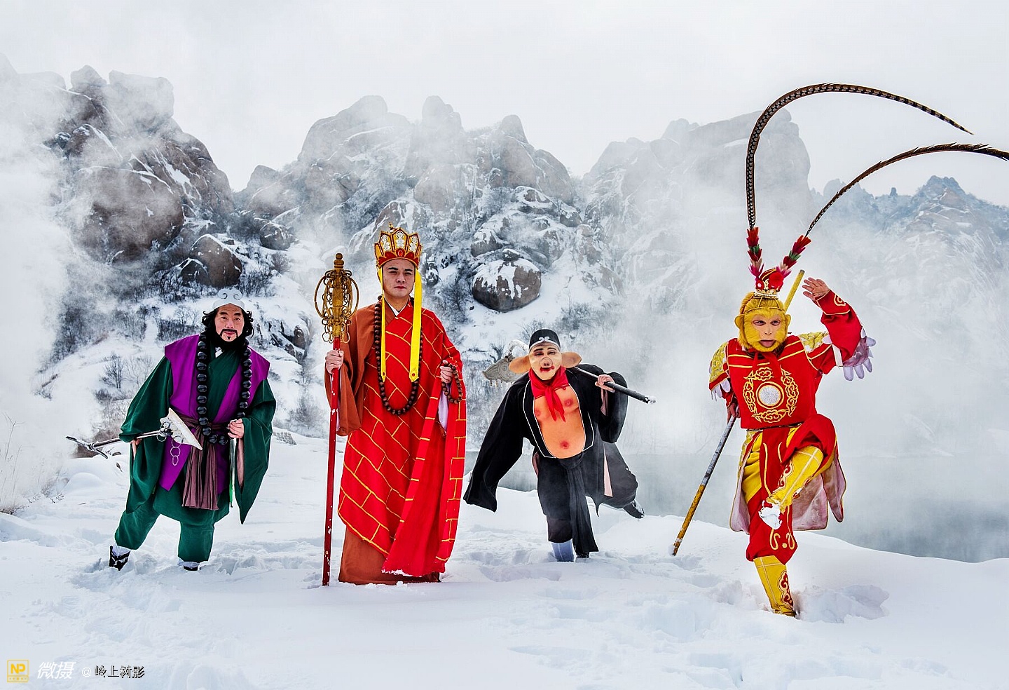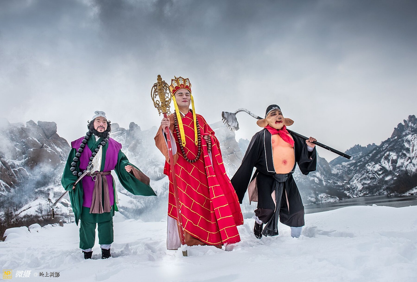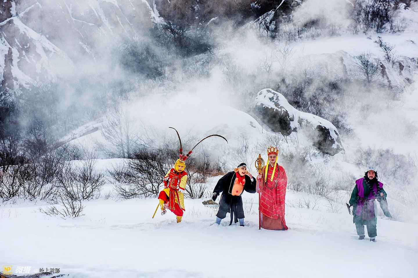 一场雪后让嵖岈山美成了仙境,唐僧师徒也腾云驾雾来赏美景……