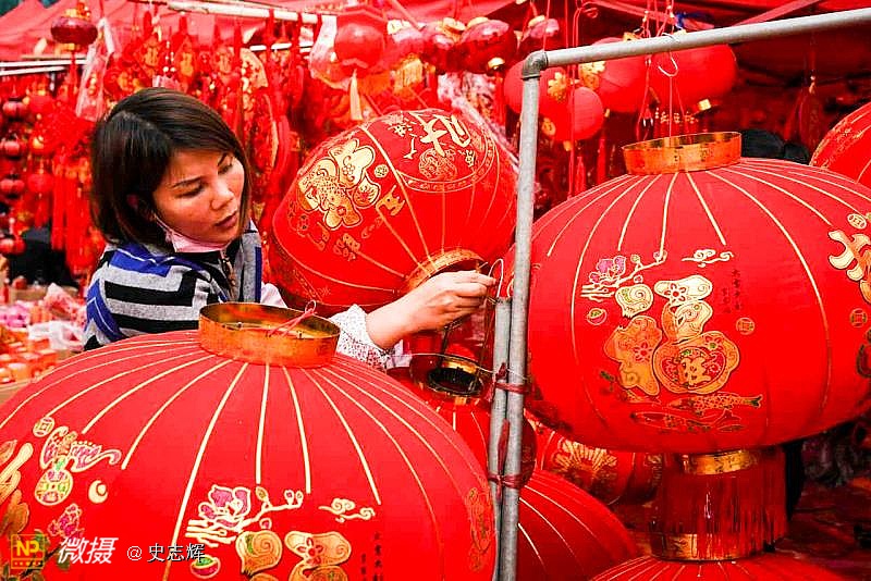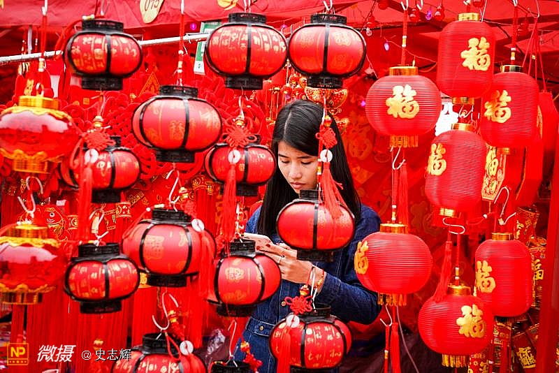大红灯笼福春联,喜迎中国旺旺年
