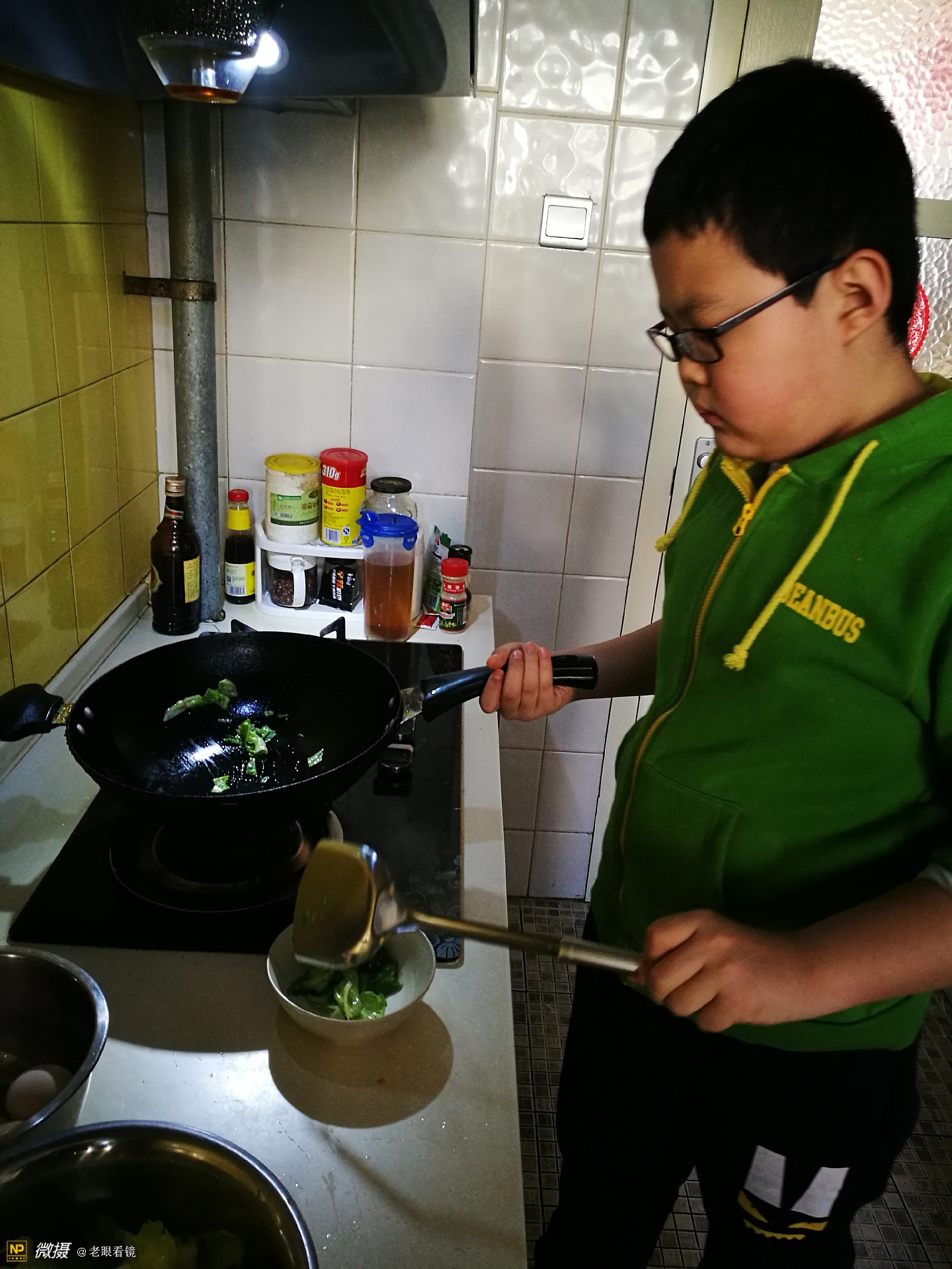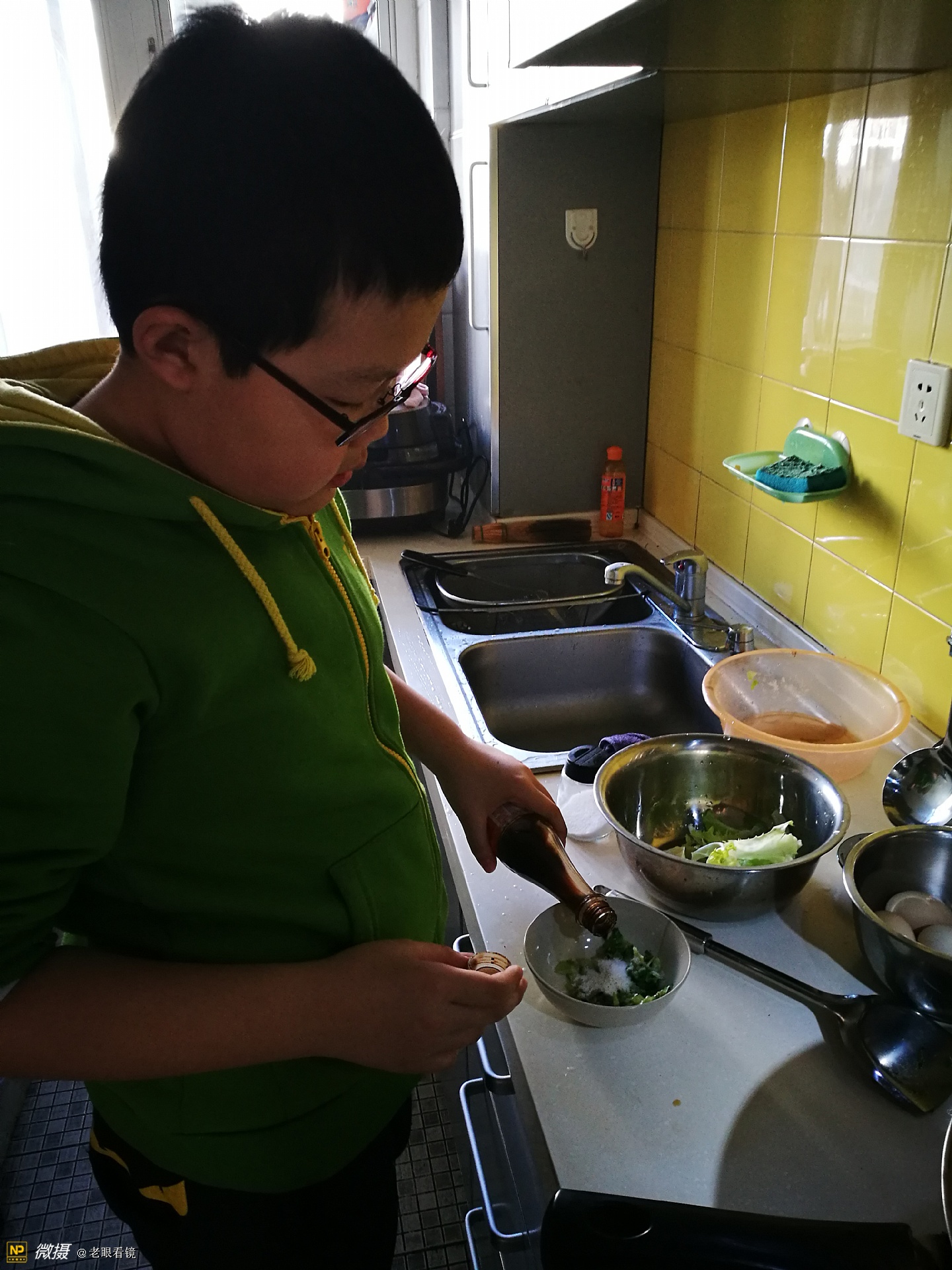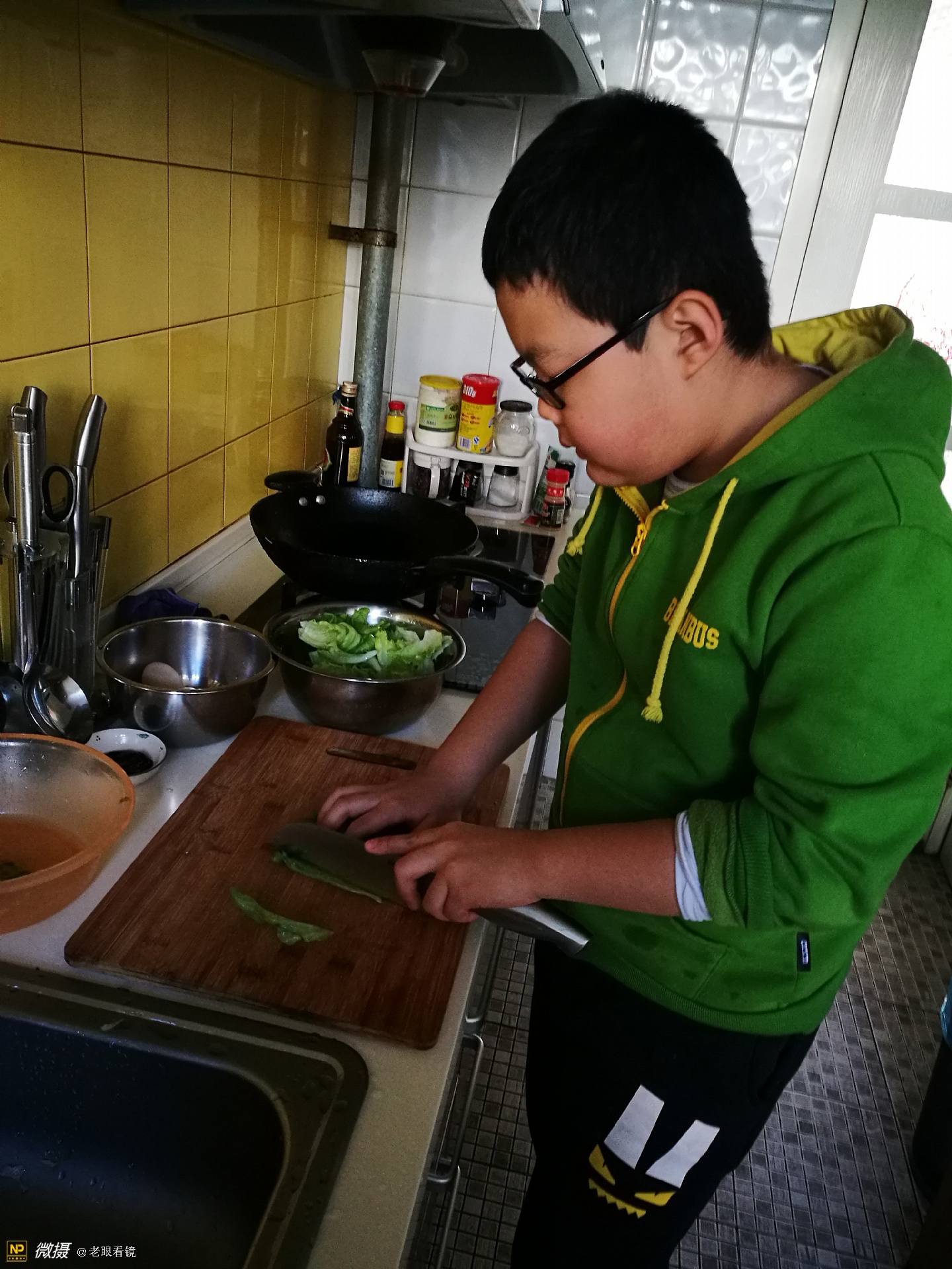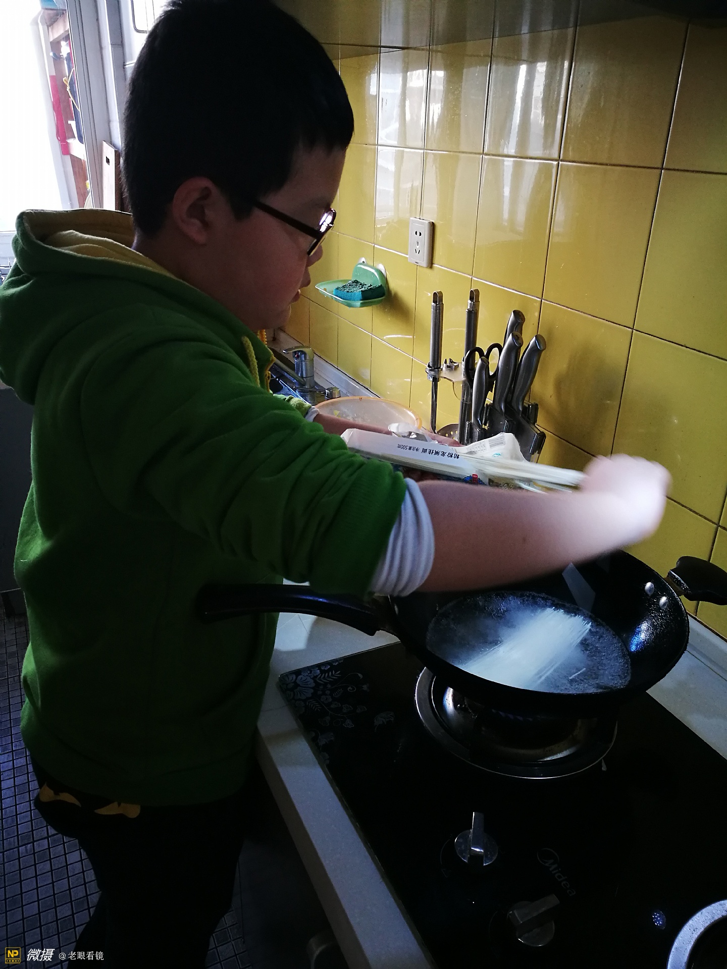 今天,孙子的妈妈过生日,早晨起来,他为妈妈煮了碗长寿面,我们全家也跟着借了一个光。同时,也用手机记录了全过程。