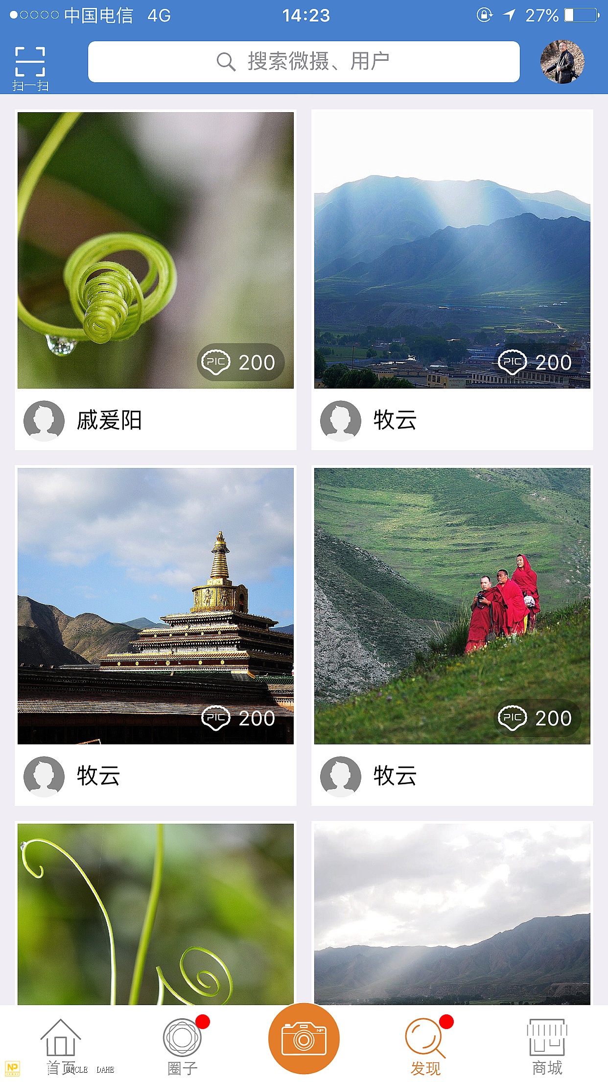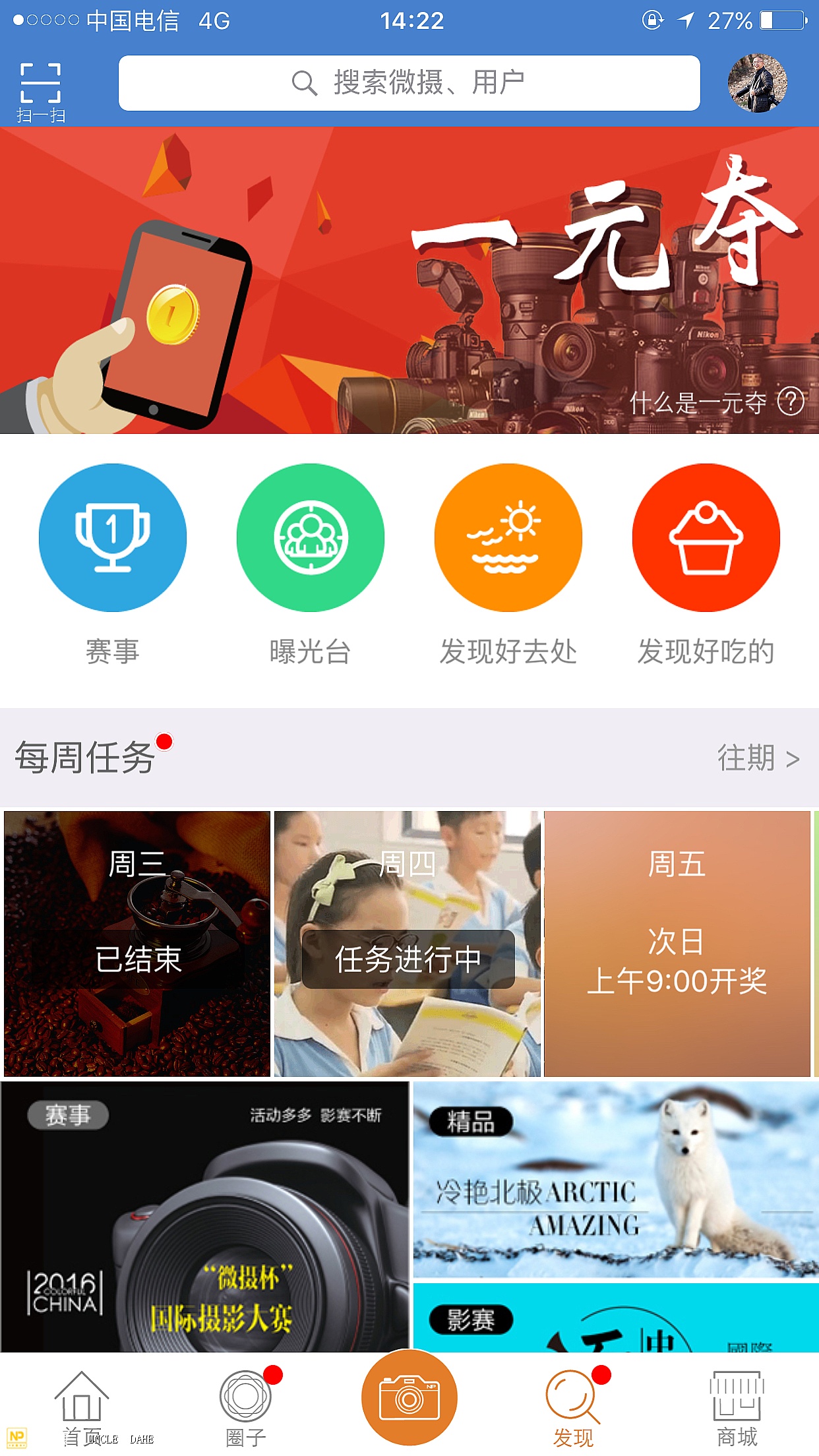 微摄的发现平台上,玩的是快乐,每日摄影大赛不断,奖品奖金不断。相机拍,手机拍,只要拍拍上传到赛区,奖品奖金就有可能会属于你。