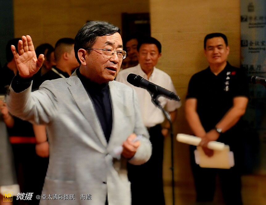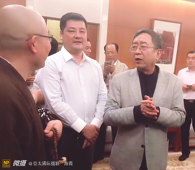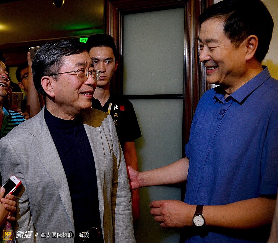 余秋雨和参加翰墨展的著名演员濮存昕交谈