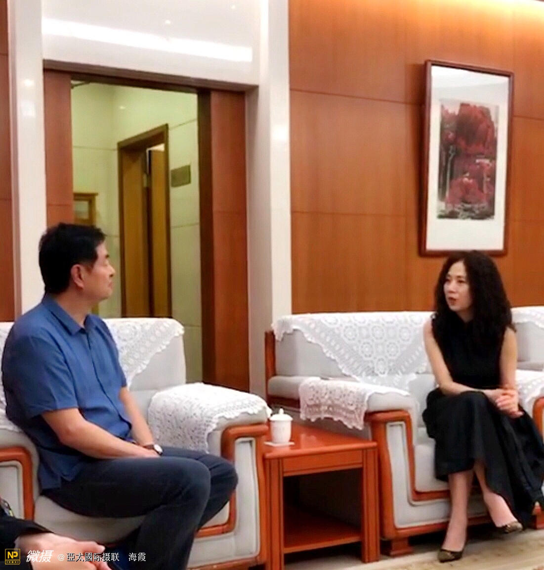 余秋雨夫人马兰在翰墨展和著名演员濮存昕交谈