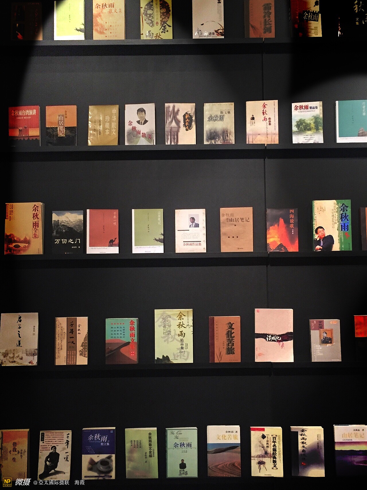 此次翰墨展一大特别亮眼之处,是辟出一个区域展出了余秋雨先生的大量著作,取名“书壁”。里面比较系统地展出余秋雨著作的大陆版、台湾版、外文版等庞大著作量。此外,还展出部分盗版书,一是反映余先生著作的受欢迎程度,二是从一个侧面反映出近十年来国内反盗版的进步。