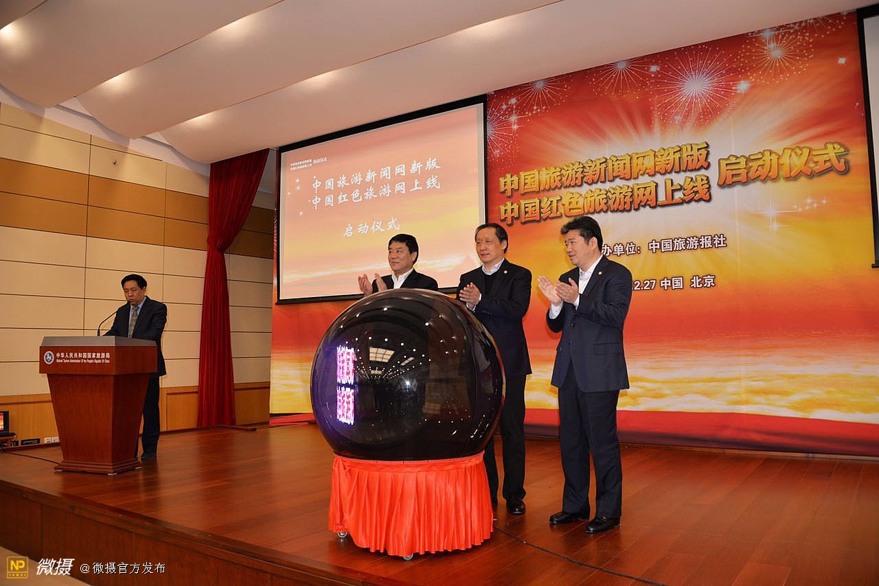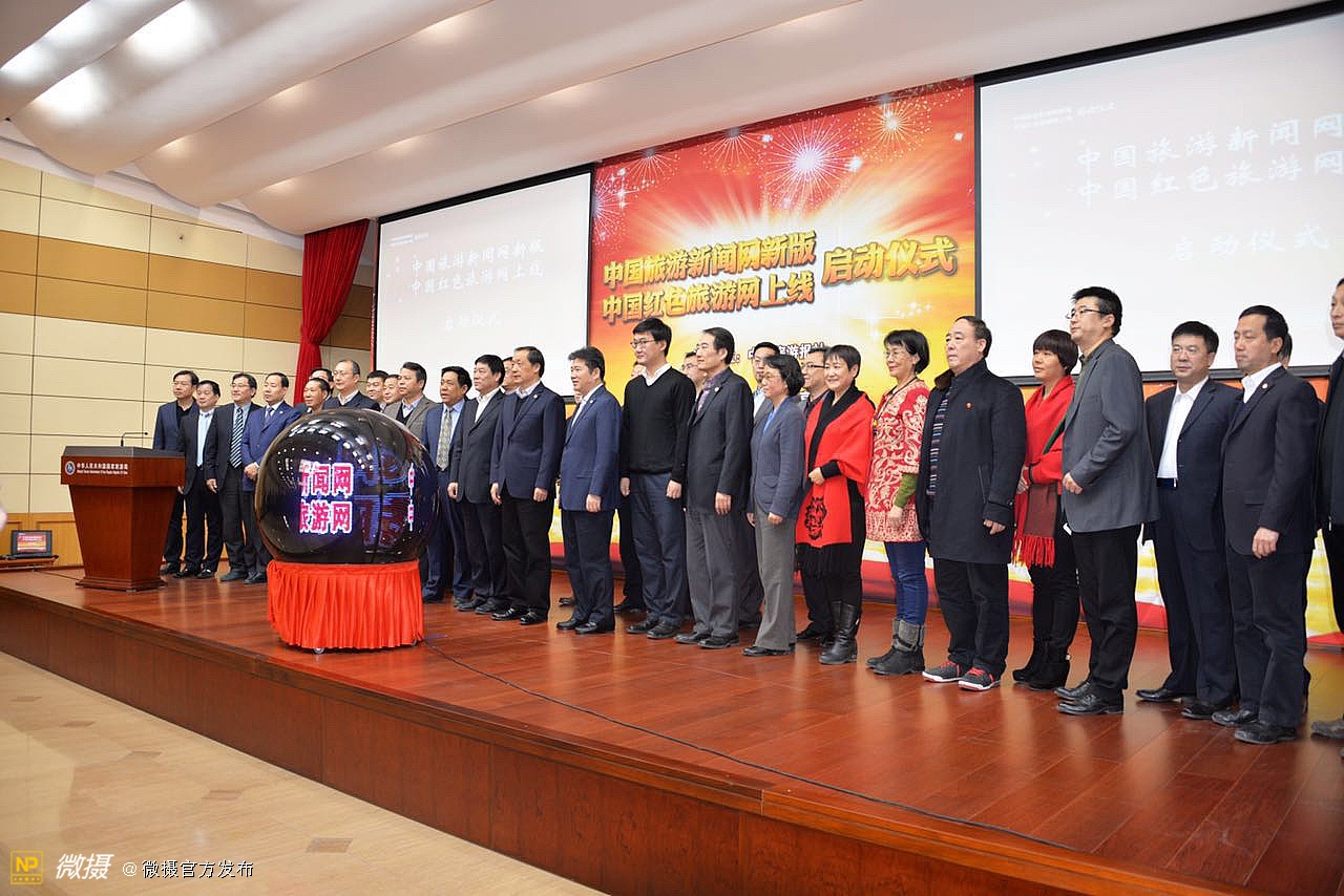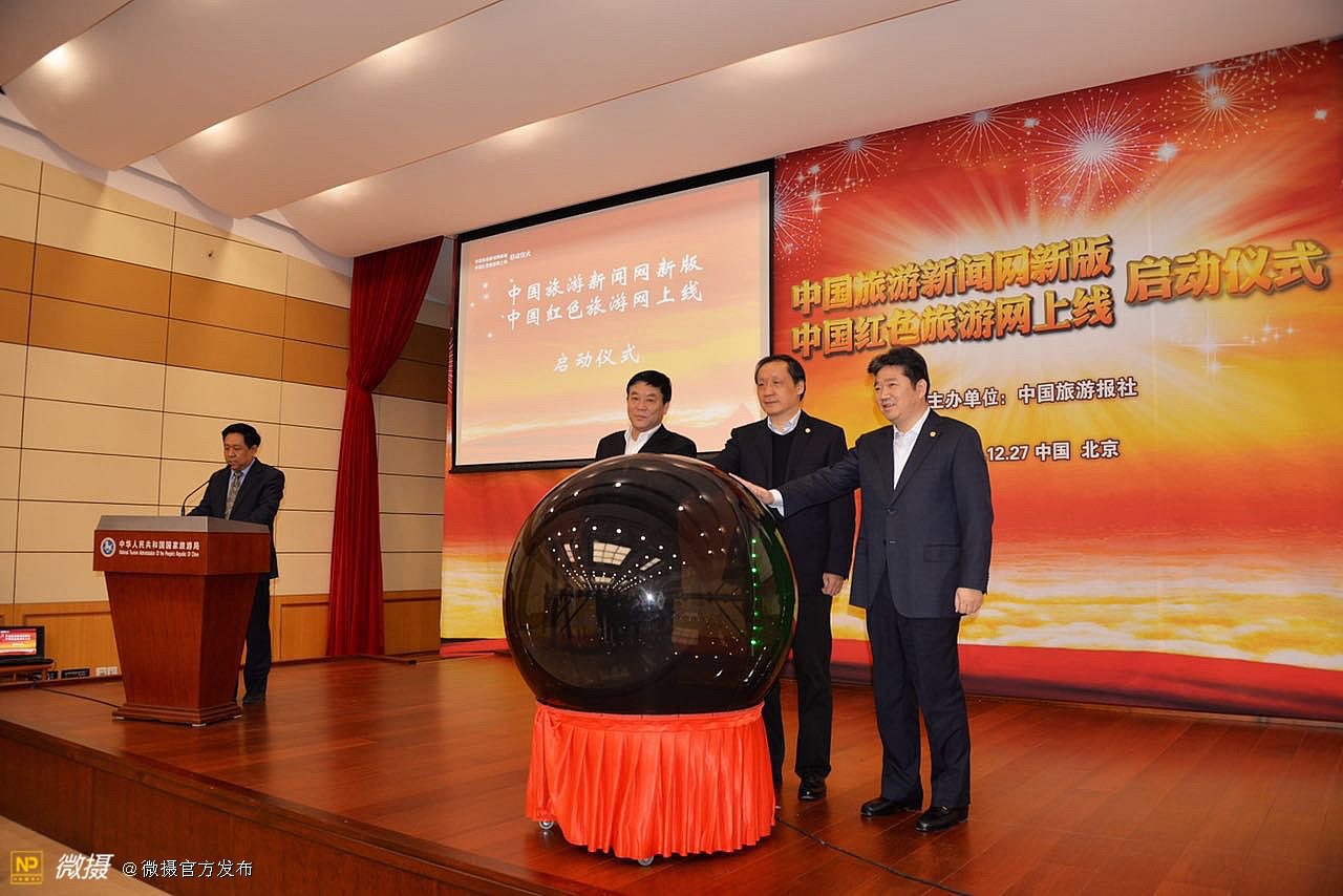 国家旅游局李金早局长、李世宏副局长、魏洪涛副局长一起上台触摸水晶球启动两网上线,参加启动仪式的有来自相关部委和单位的嘉宾、国家旅游局有关司室及直属单位负责人、有关省区旅游局(委)负责人及有关企业集团负责人。
