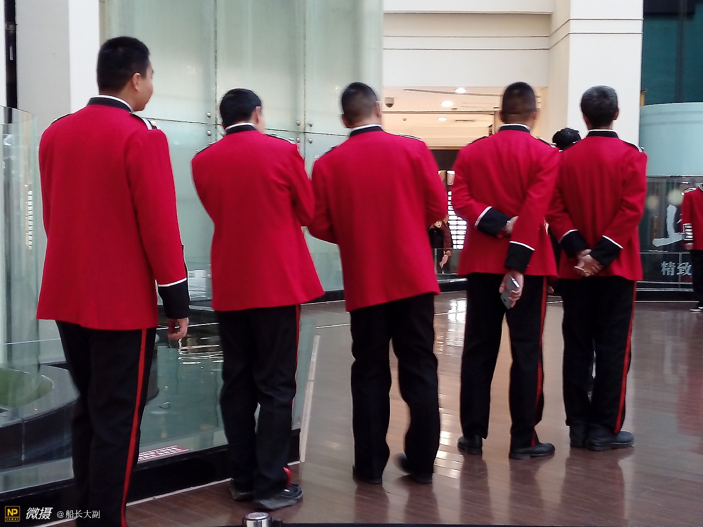一队保安在接受统一的任务