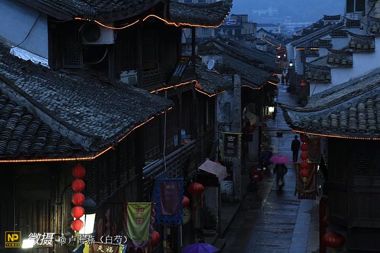 红灯笼映照着修缮完整的古城墙,我从拱门穿过,遇上了弯曲的小河、弯曲的廊棚、弯曲的石板路。青石板有些松动踩上去发出声响又溅一脚水来。桥与水彼此之间模糊了眼,没有了边际。没有月色更没有星光,未打烊的店铺灯光还亮着。走累了也疲乏了,夜色朦胧坐在古城墙上又撩起了莫名忧愁,那种柔软的忧愁,就像听不懂的绍兴话一样柔软起来。像飘飘的薄雾缭绕着,弥散、升腾!