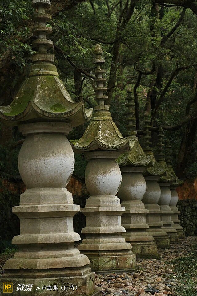 国清寺(天台寺)前巨樟临溪,寒拾亭立,丰干桥卧;松柏争而不让,横枝披叶,直上云霄。五峰胜境,万松深处;鸟宿古树,僧敲夜门;一行至此,溪水西流。