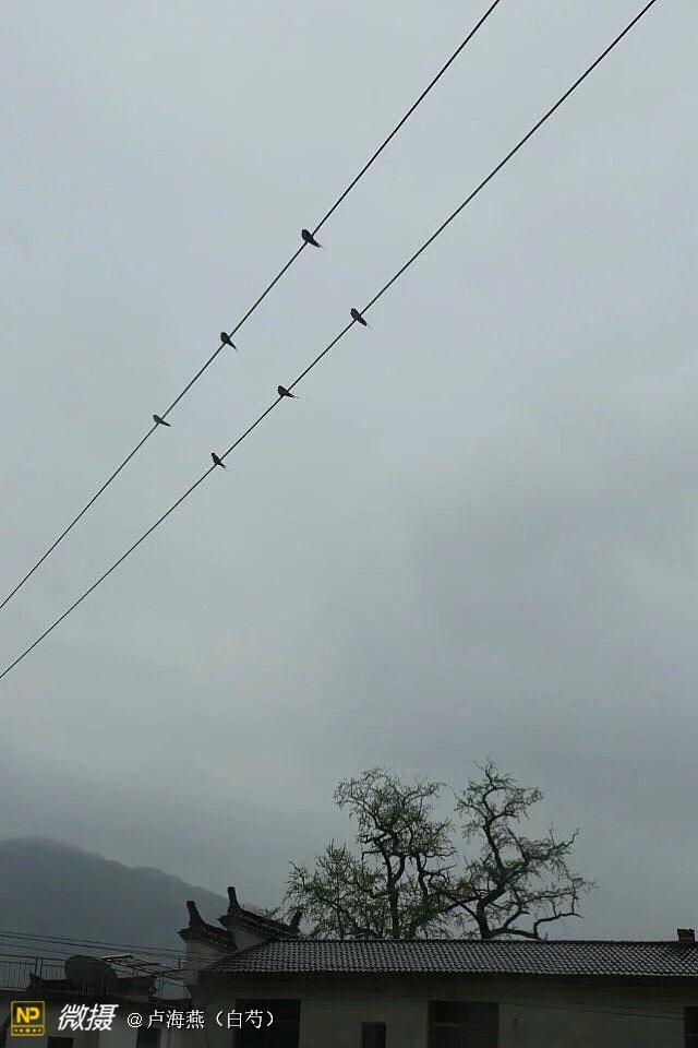 昏暗的天空中留下几只自由自在的劳燕仿佛在诉说着惆怅……