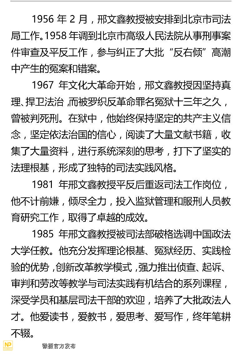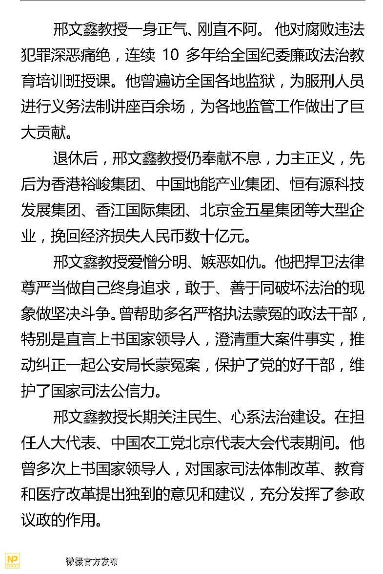 一生捍卫法律尊严的邢文鑫教授与世长辞