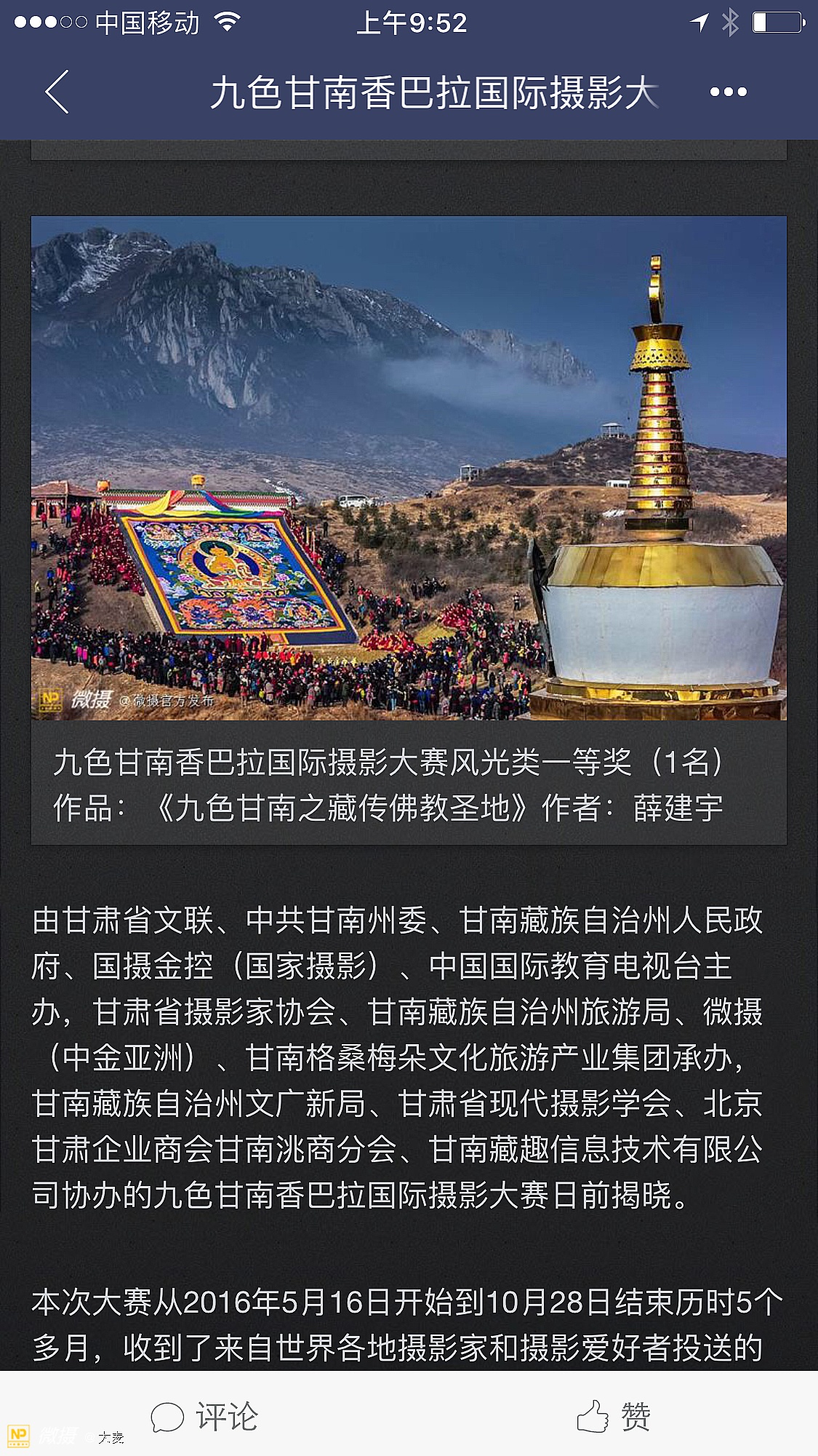 最开心的事情是获得《九色香巴拉甘南国际摄影大赛》风光类一等奖[em_16]