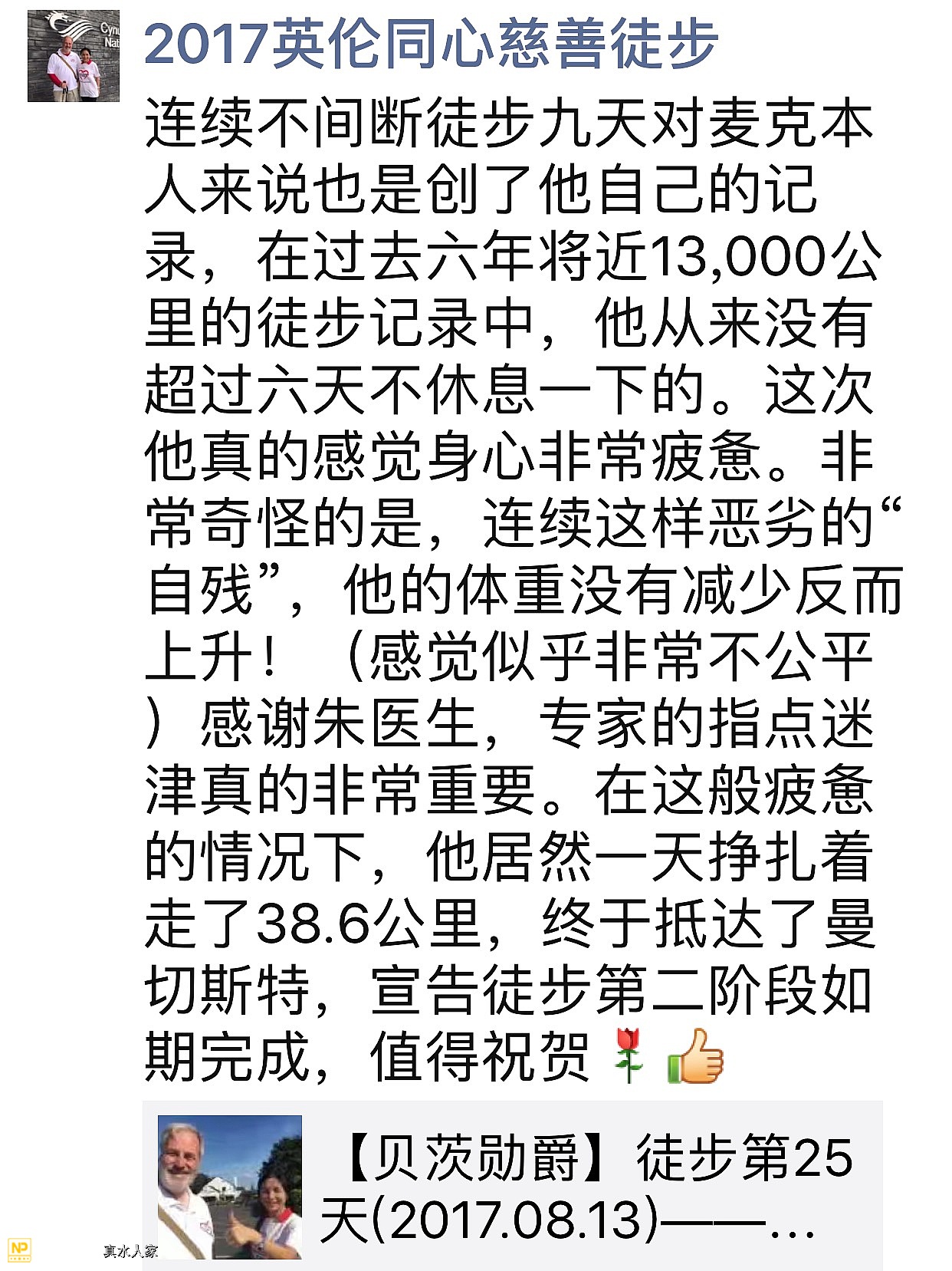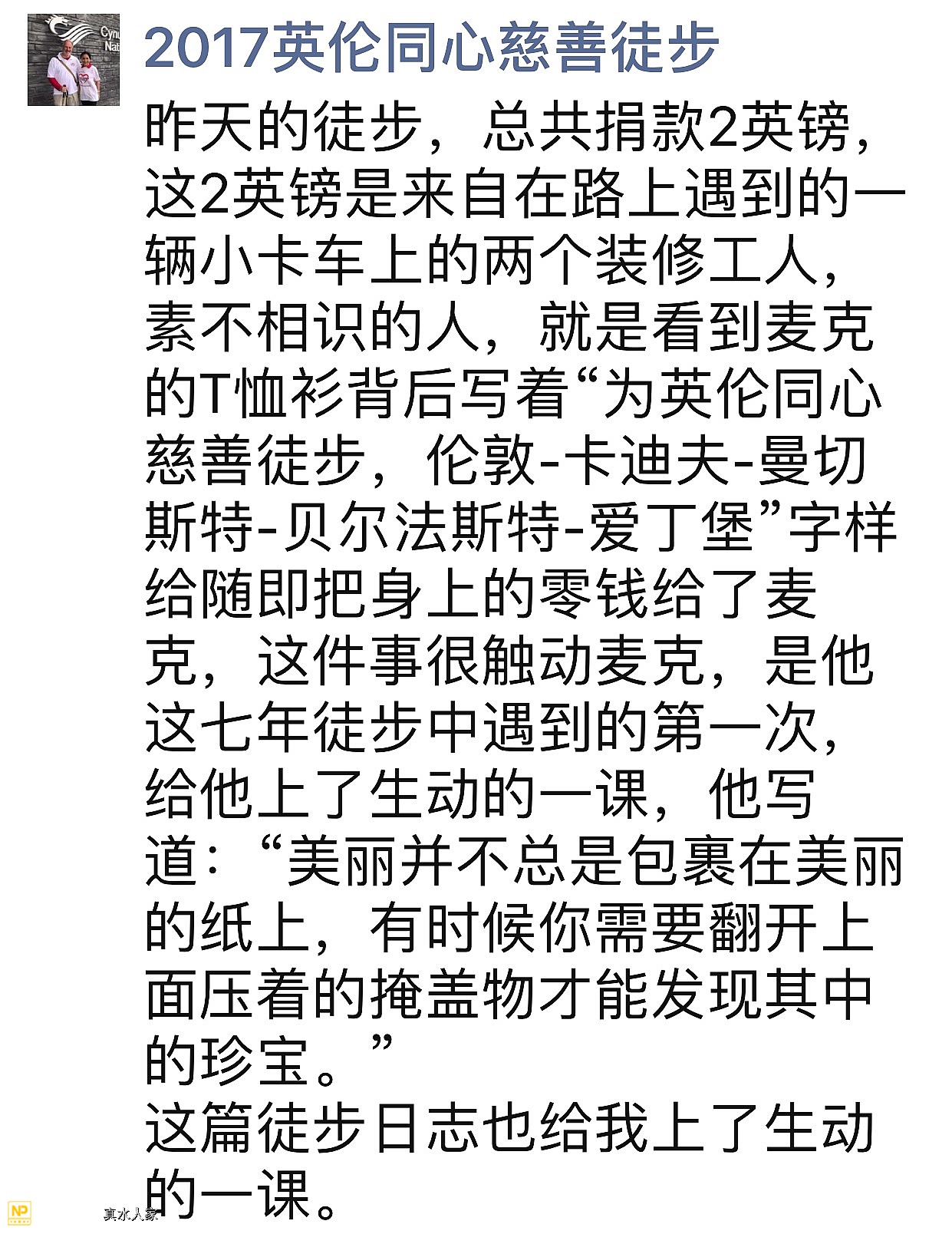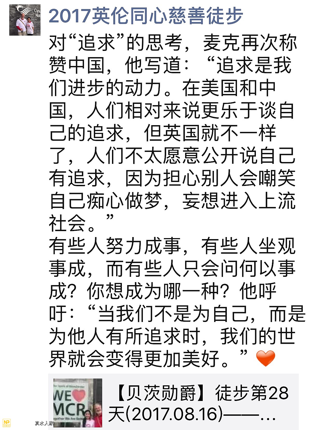来自2017英伦同心慈善徒步的感动