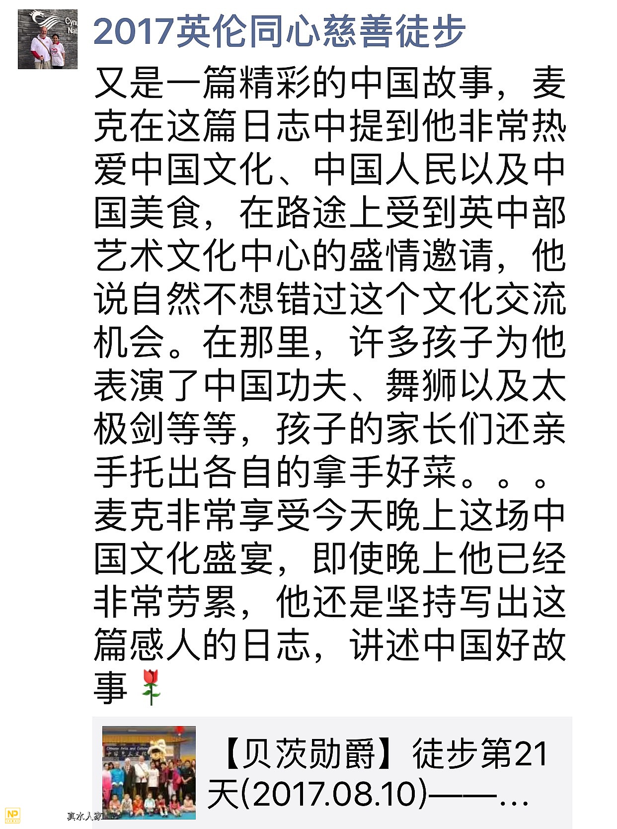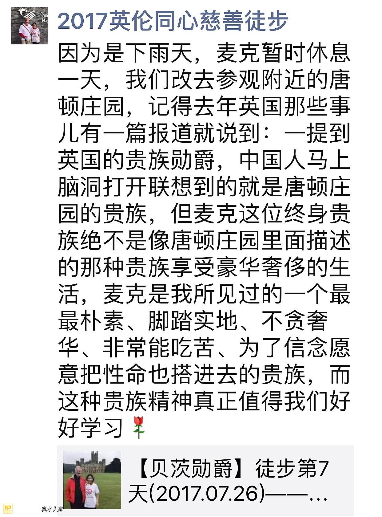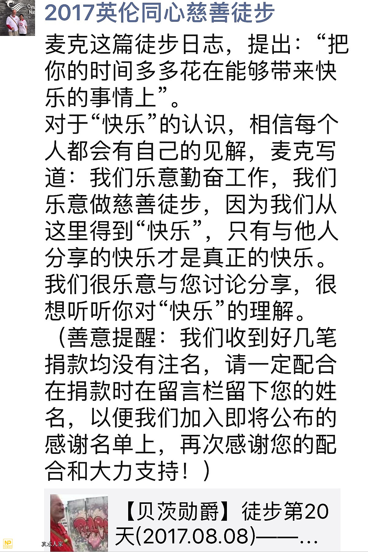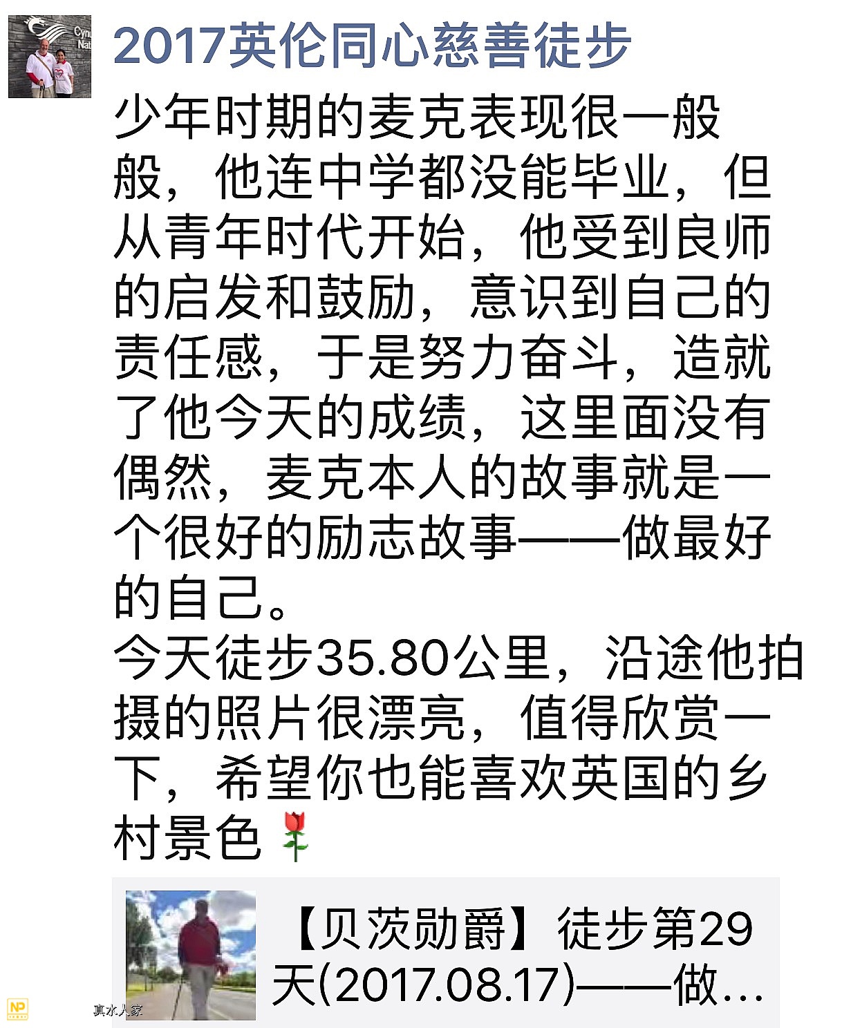 来自2017英伦同心慈善徒步的感动