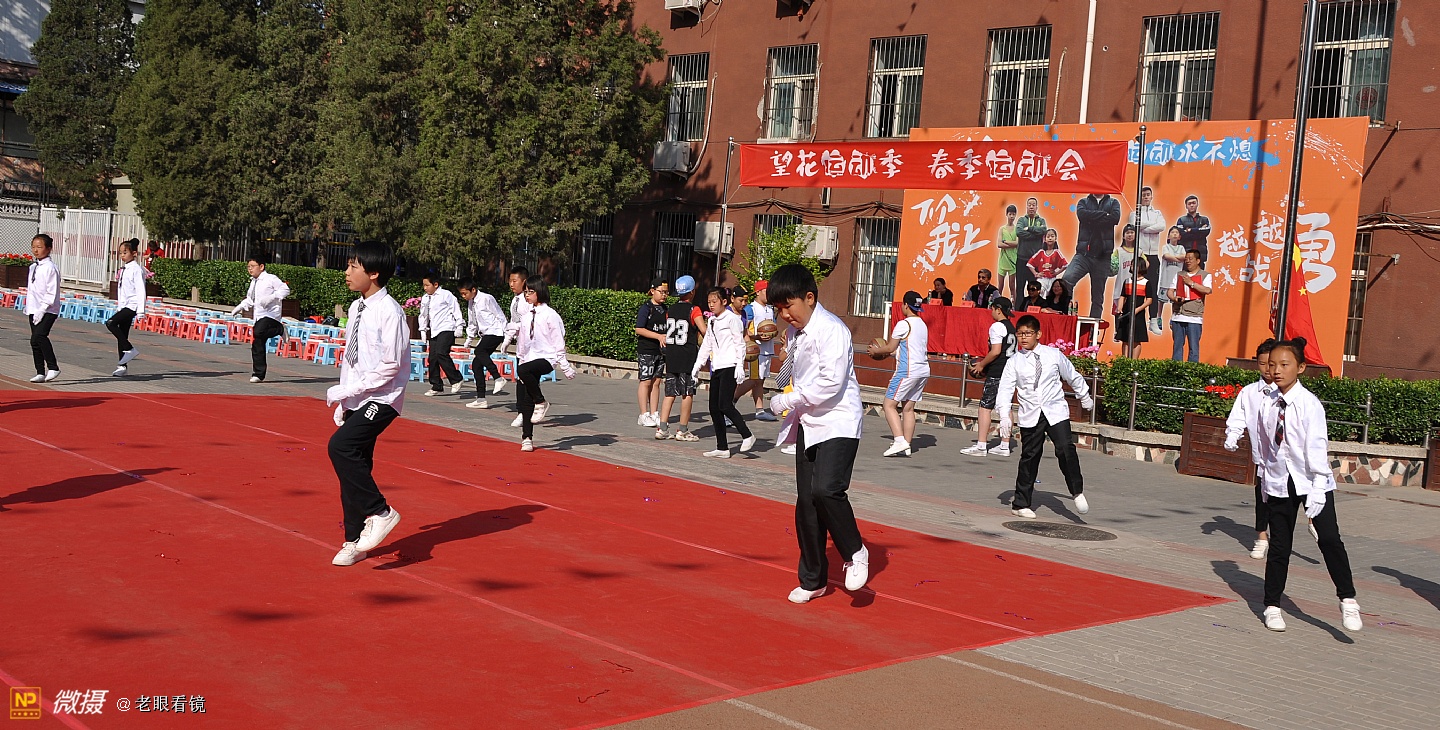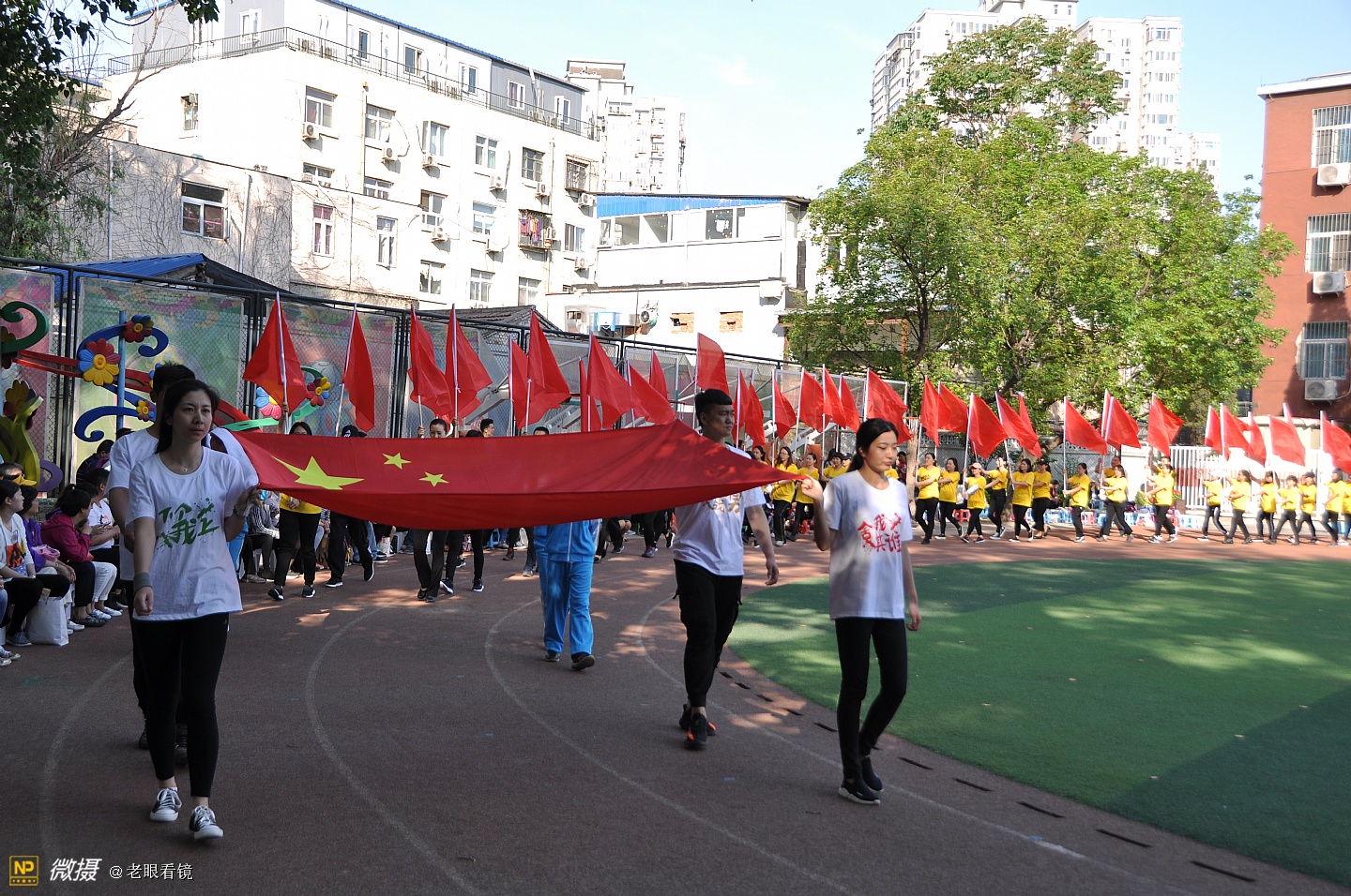 以国旗为先导的入场式,拉开了春季运动会的序幕。