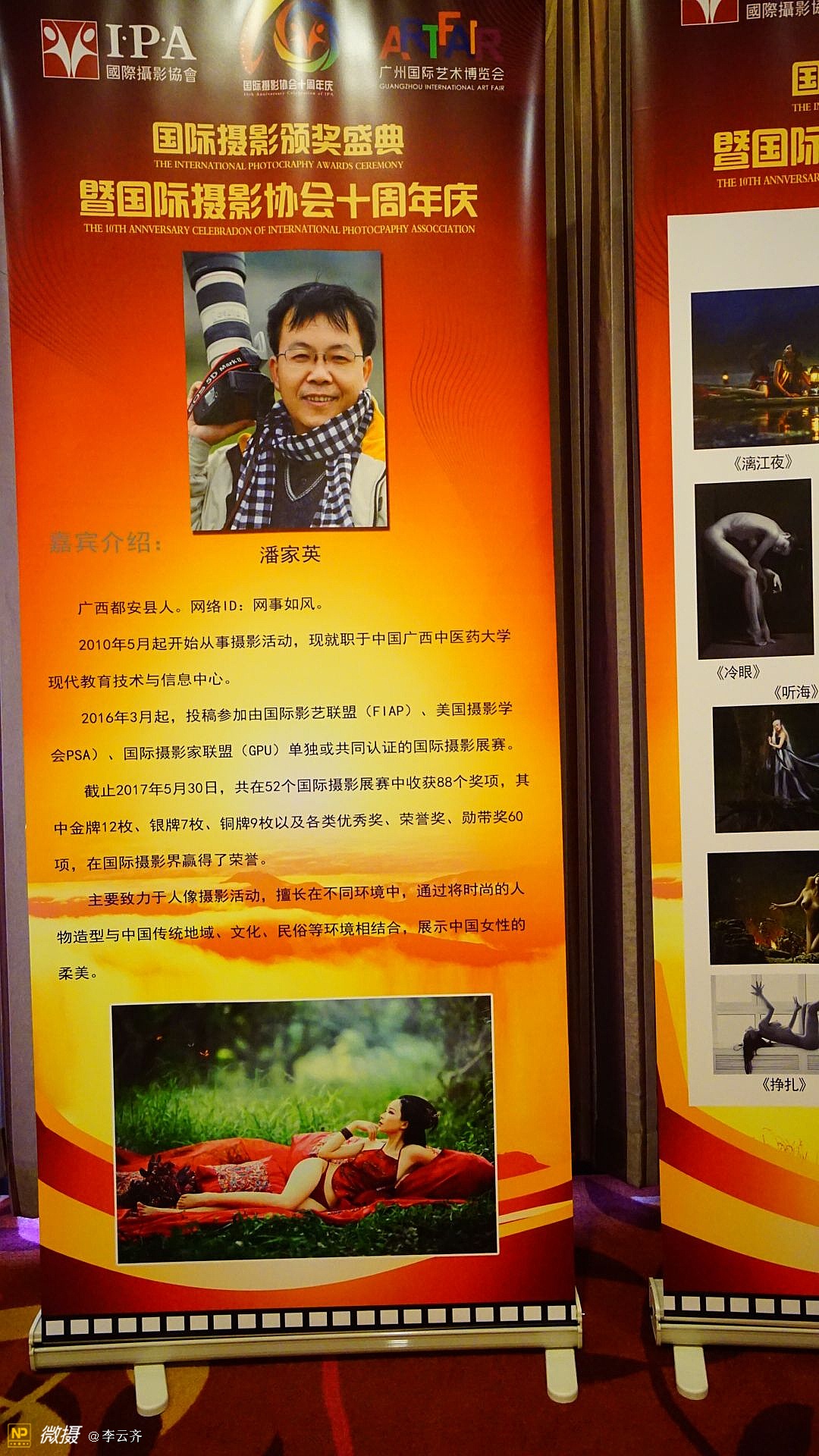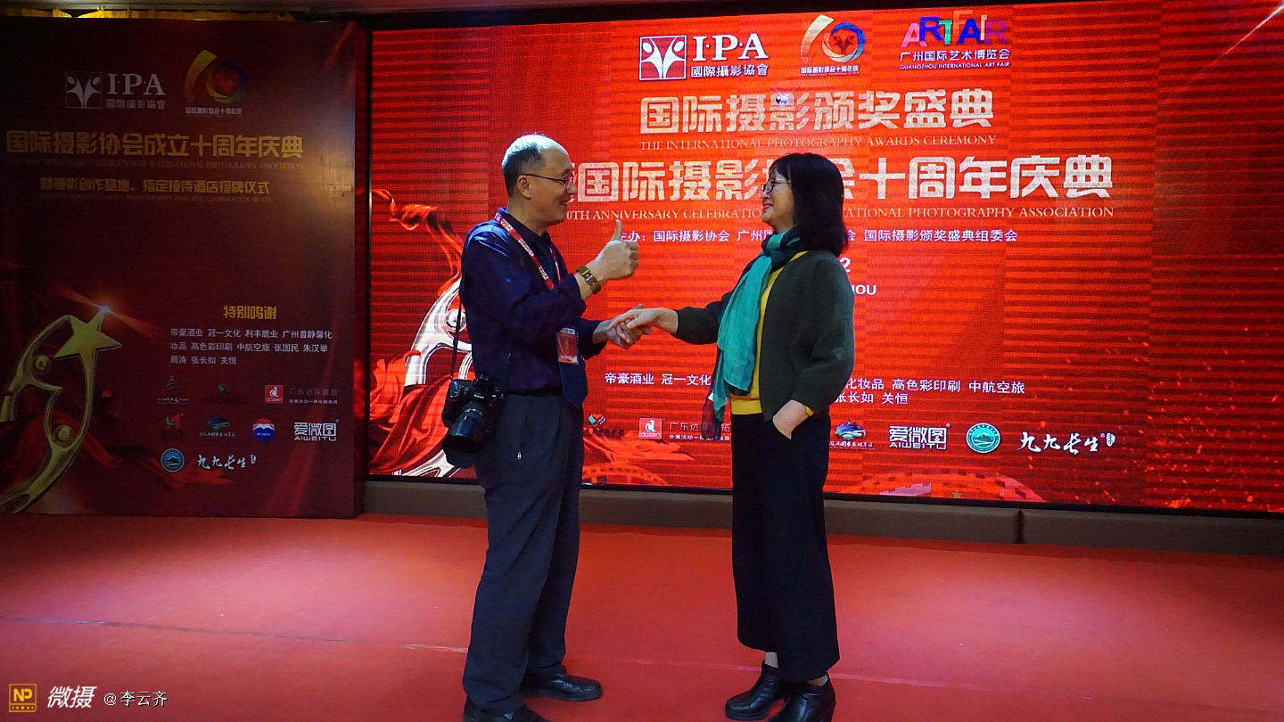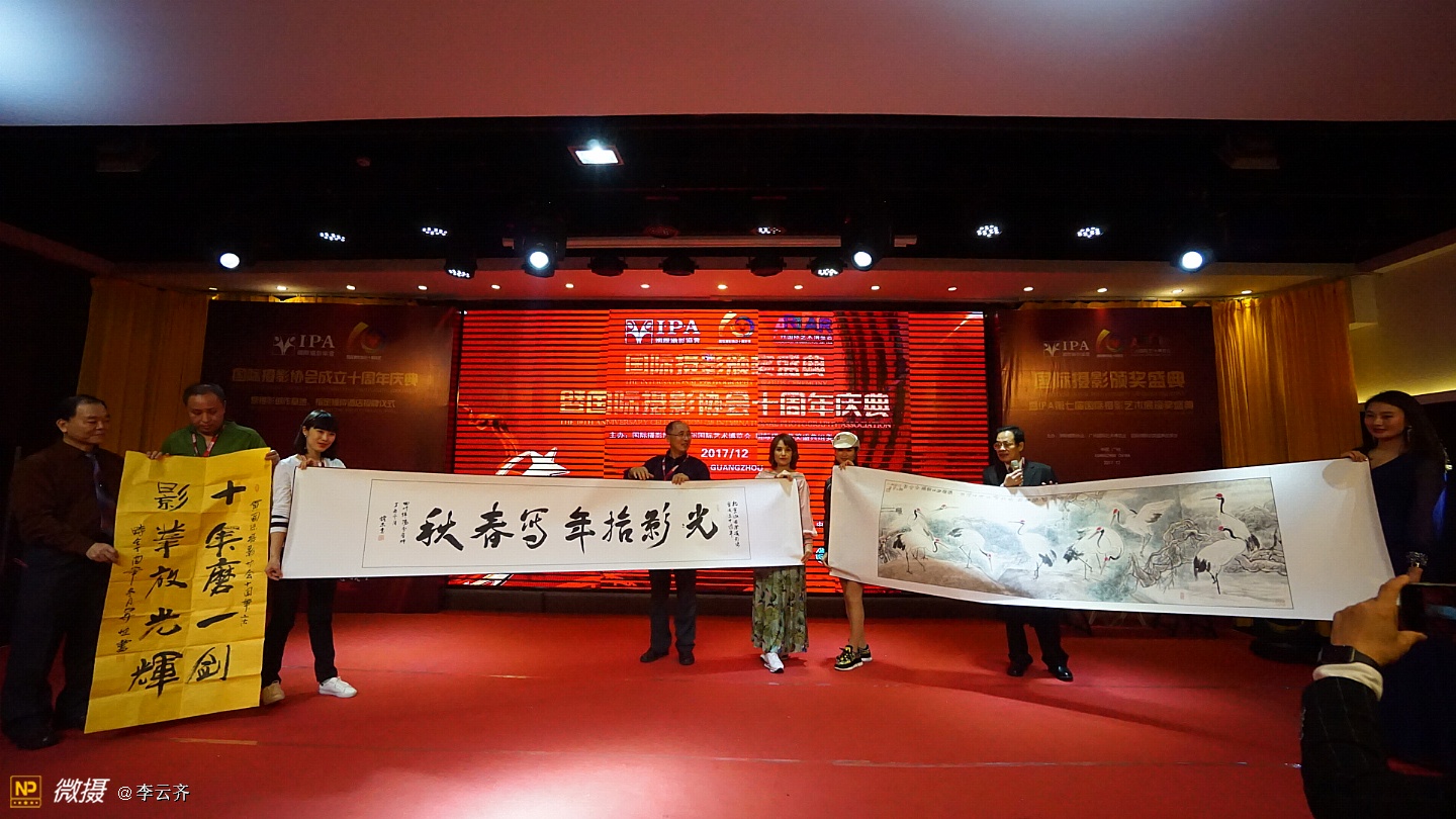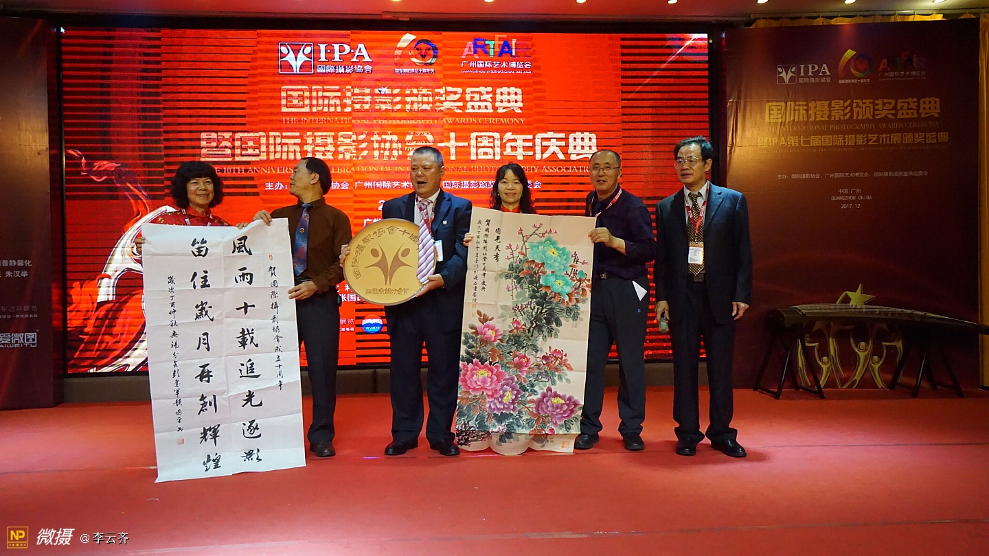 《国际摄影颁奖盛典暨国际摄影协会十周年庆典》在一片欢呼声中落下帷幕! 今夜无眠,因为我们是国际摄影协会大家庭的成员,因为我们许多摄影者在这里获得了荣誉证书和称号,因为我们都能在这里得到发展和鼓励鼓舞! 没有想到,这次盛典庆典组织的如此精彩和完美;没有想到,这次大会从筹划到落幕如此惊喜和感动;没有想到我们远道而来的摄影者从到达广州机场和火车站的那一刻起就得到大会工作人员的热情接待和安排,吃的住的行的都让我们放心和享受;没有想到大会晚宴如此丰盛和美味,还有精彩的演出,专业的歌喉,动听的音乐,主持人的完美演绎,礼仪小姐的婀娜多姿,十年历程的回顾,长枪短炮的咔嚓声响,不间断的摄像和拍照,领导和我们的互动和合照,与会者之间的交流和沟通,等等一切都使我们为之感叹和骄傲! 千言万语,只能说,我们的国际摄影协会是一个能让我们实现梦想的家园,我们尊敬的赵旭新主席是我们公认的最有实力能力和执行力的好领导好哥们好兄弟好园长好司令!