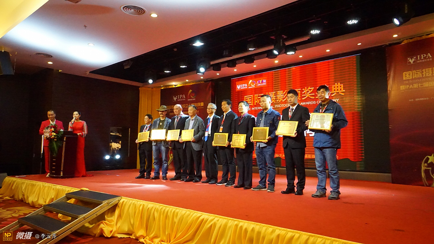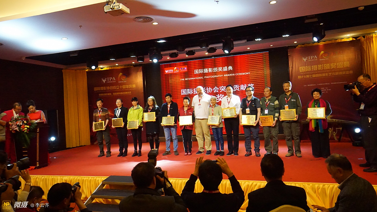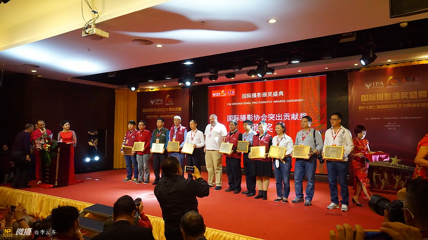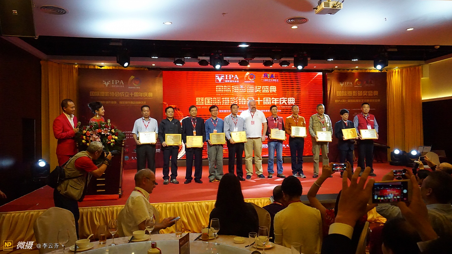 国际摄影颁奖盛典今天在广州隆重举行今天下午,国际摄影颁奖盛典在广州天水国际大酒店隆重举行。这次国际摄影颁奖盛典嘉宾云集,摄影名家满堂。国际摄影颁奖盛典今天在广州隆重举行 今天下午,获得联合国发展委员会支持, 由国际摄影颁奖盛典组委会、广州国际艺博会等单位联合主办的国际摄影颁奖盛典在广州天水国际大酒店隆重举行。这次国际摄影颁奖盛典嘉宾云集,摄影名家满堂。出席颁奖盛典的贵宾有:中国艺术摄影学会主席杨元惺、全国公安摄影家协会主席冯凯文将军、中国边防警察报总编王超杰大校,世界华人摄影家学会创始人之一、原解放军画报总编室主任骆飞大校、美国摄影学会(中国)主席邓大端、美国大众摄影交流学会创始人古江以及国际摄影协会主席团成员赵旭新、林伟球、杨春连、郭柏林、陈伟标、apie(俄罗斯)、dawei(英国),广州艺博会艺术总监彭文斌。还有来自比利时、丹麦、印度的摄影组织负责人及知名摄影师,中国大陆各省部分摄影组织负责人,台湾、香港、澳门摄影组织负责人,IPA各地分会主席,俱乐部主任,40多家旅游景区负责人,国际摄影模特大赛佳丽等共500人出席了盛会。颁奖盛典的同时还举办了庆祝国际摄影协会成立十周年等活动。在当天下午的国际摄影颁奖盛典中,颁发的奖项有:“国际摄影终身成就奖”、“年度全球华人杰出摄影师成就奖”、“国际摄影突出贡献奖”、“第七届国际摄影艺术展作品奖”、 “摄影师最喜爱的摄影创作景区”以及“最具影响力的摄影机构”等荣誉奖项。晚上还举行了国际摄影协会成立十周年庆典晚会,晚会内容丰富,有颁发突出贡献奖、开拓纪念奖、优秀会员奖、文艺表演和礼品抽奖等活动,晚会气氛欢快热烈。成立于2008年的国际摄影协会,十年来致力于提高中国摄影界在国际的地位而进行不懈的努力和探索。一方面把国际上摄影界主流的理念、技术、艺术大师以及作品引入中国,开阔国内摄影师的视野,对促进中国的摄影发展起到了重要作用。另一方面着力帮助和推送摄影师及协会会员到国际摄影展影赛中摘金夺银,成绩斐然。国际摄影协会紧跟时代脉搏,架起了东西方摄影文化交流的桥梁和平台。当天上午,活动主办方还组织了出席颁奖盛典的近三百多名摄影师在广州市区进行了一场摄影创作活动。