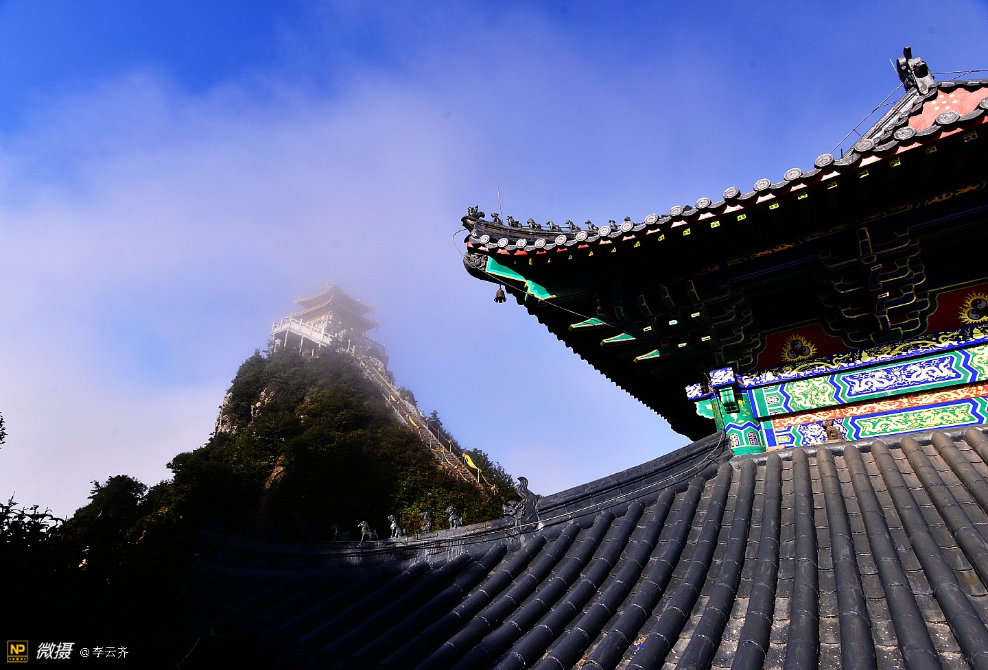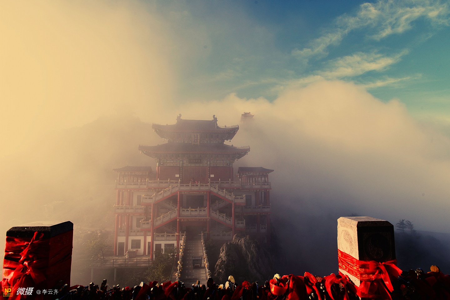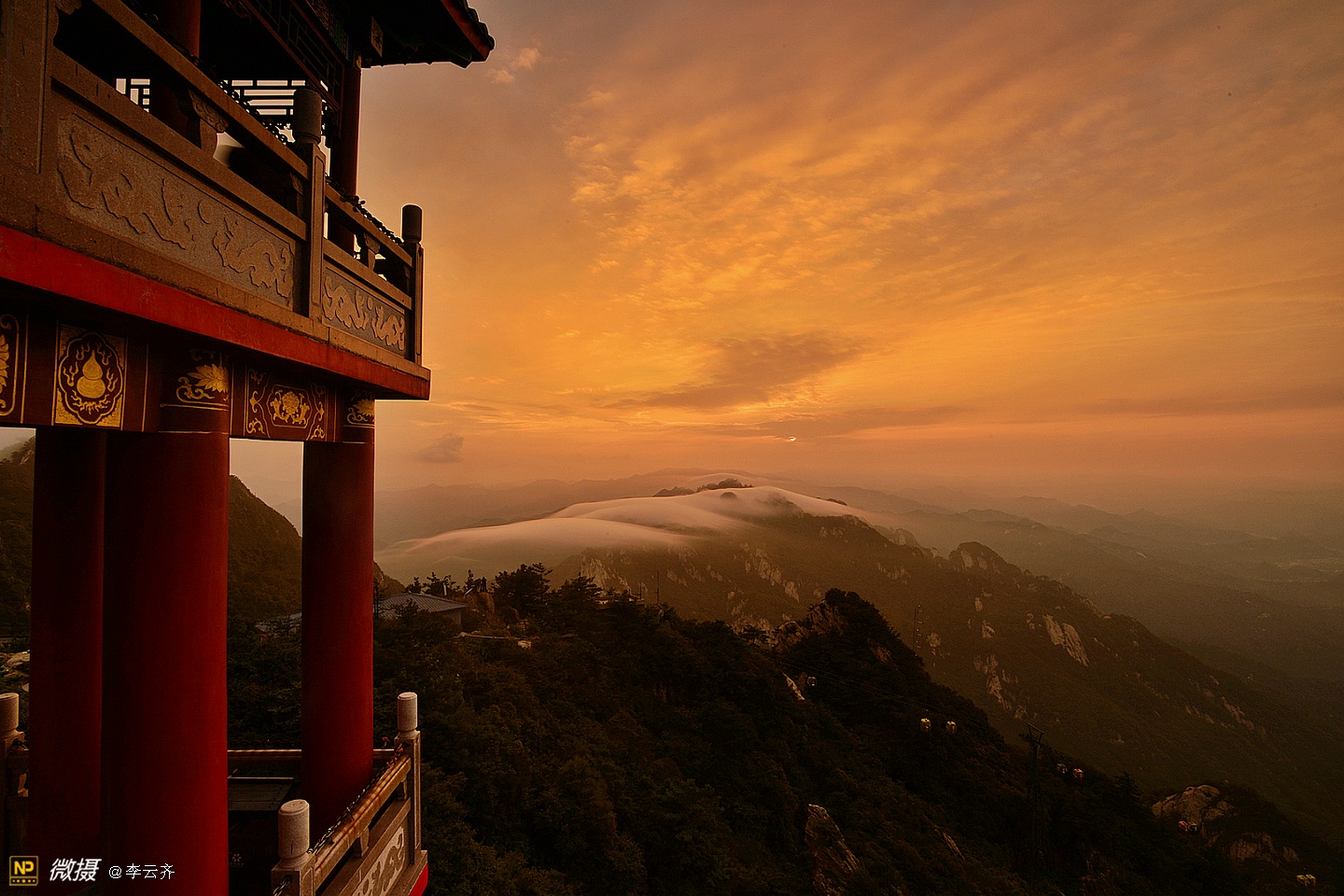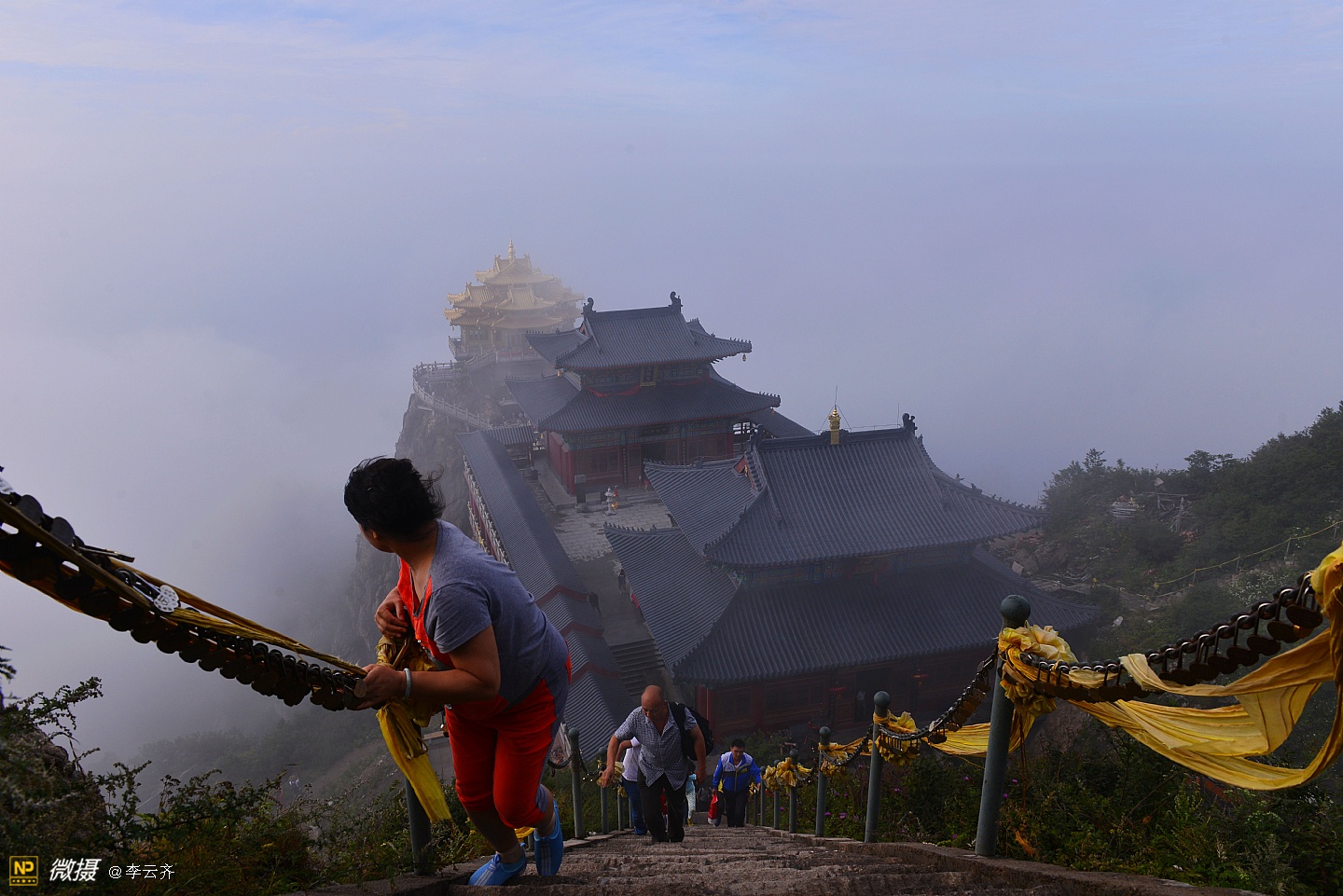 老君山是道教,老子的著作是道德经,他的理念源远流长,玉皇顶是老君山的最高建筑,也寓意着老子的道德经的地位,高高在上,高不可攀,能登上山顶的人也如人生向上的不断攀爬,绵延八百里伏牛山,登高之后,必见霞云如海,心胸自然开阔,道义满怀。