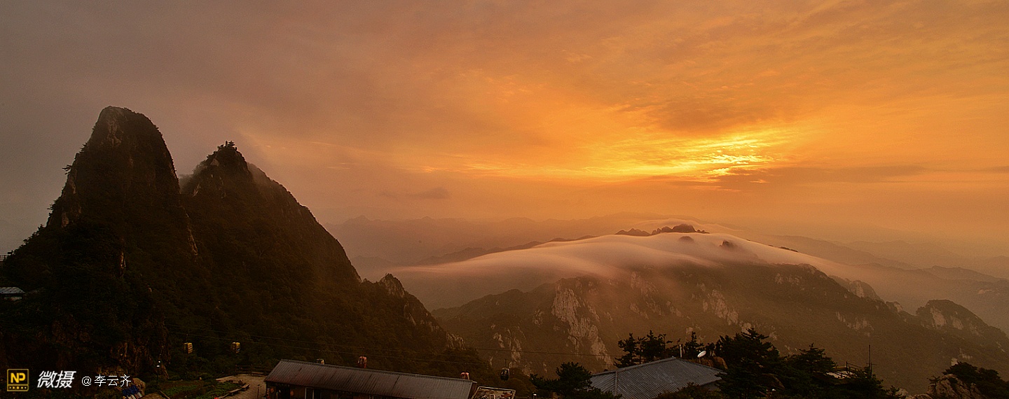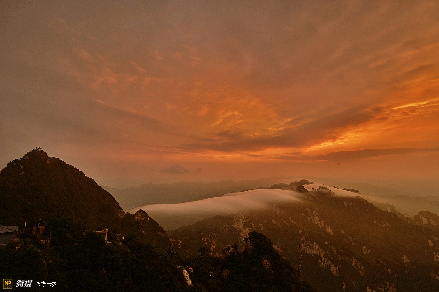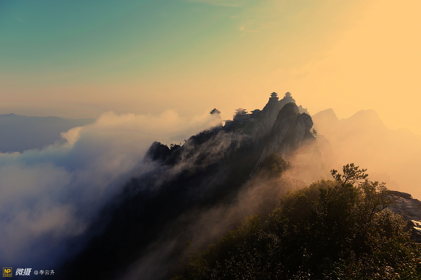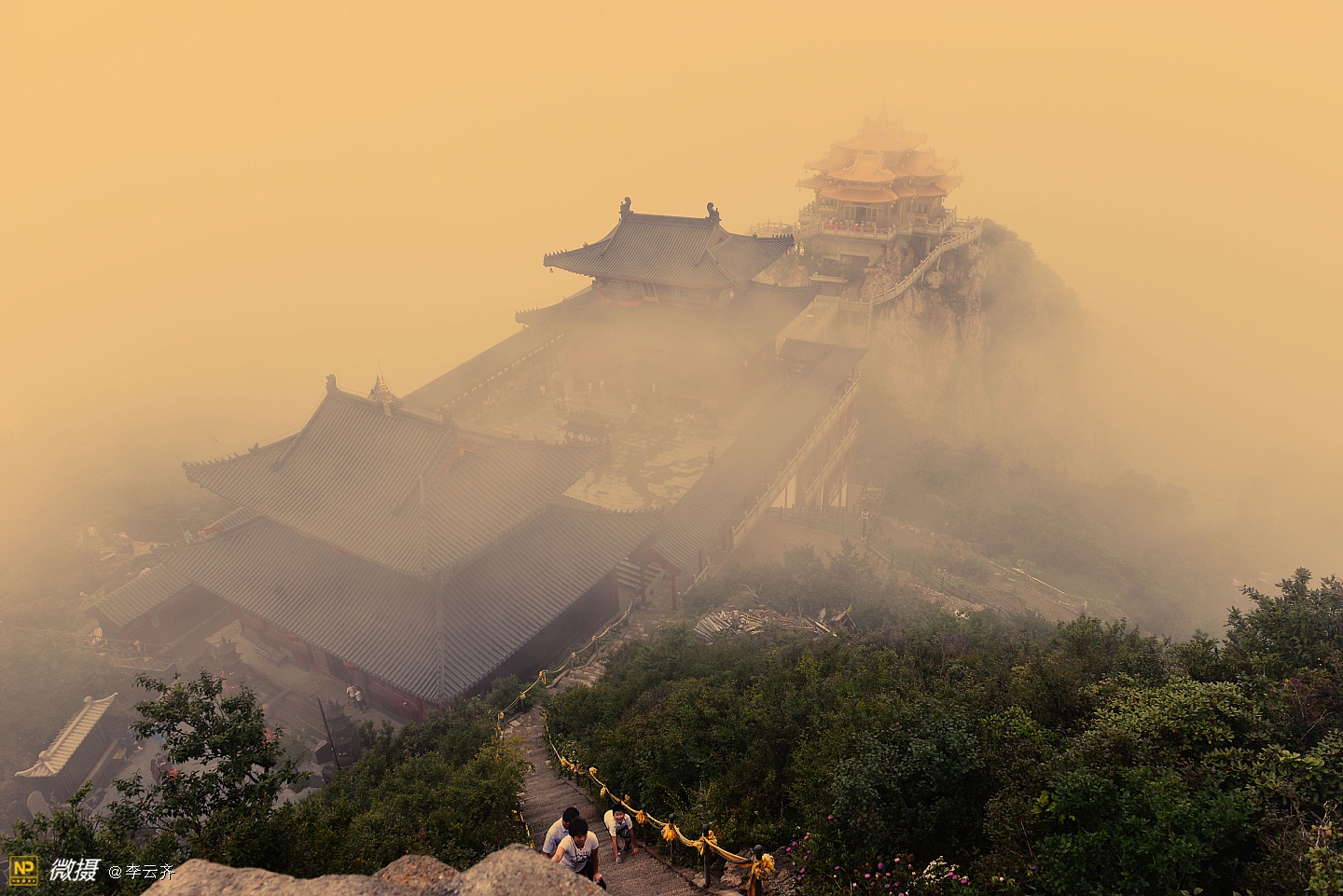 老君山是道教,老子的著作是道德经,他的理念源远流长,玉皇顶是老君山的最高建筑,也寓意着老子的道德经的地位,高高在上,高不可攀,能登上山顶的人也如人生向上的不断攀爬,绵延八百里伏牛山,登高之后,必见霞云如海,心胸自然开阔,道义满怀。