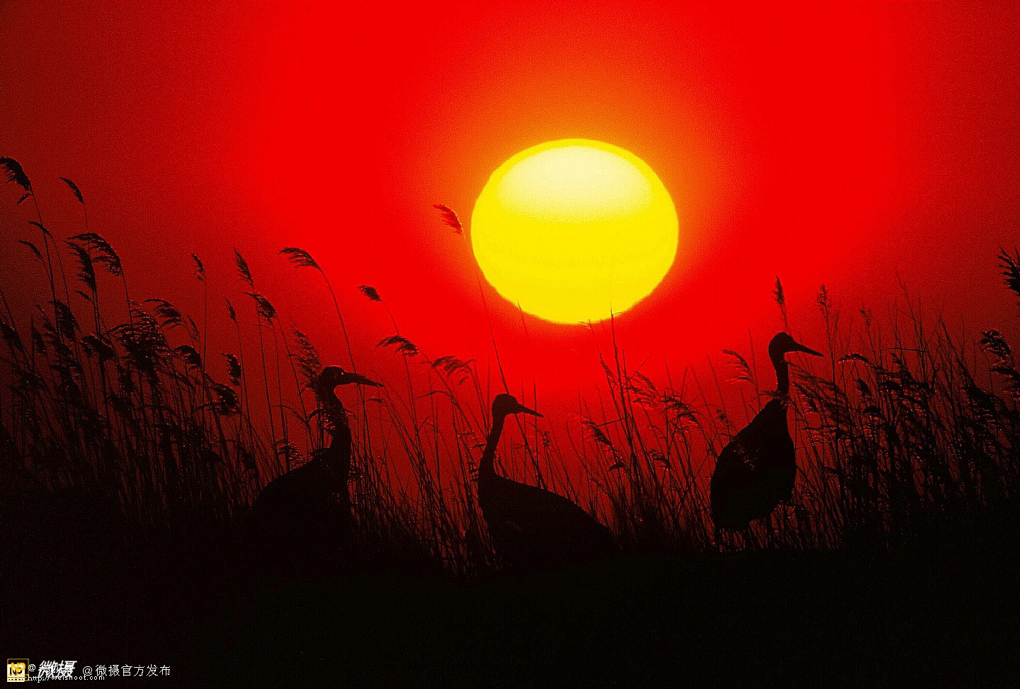 多彩中国国际摄影大赛生态与动物类优秀奖获奖作品:《仙鹤朝阳》作者:大地狂舞
