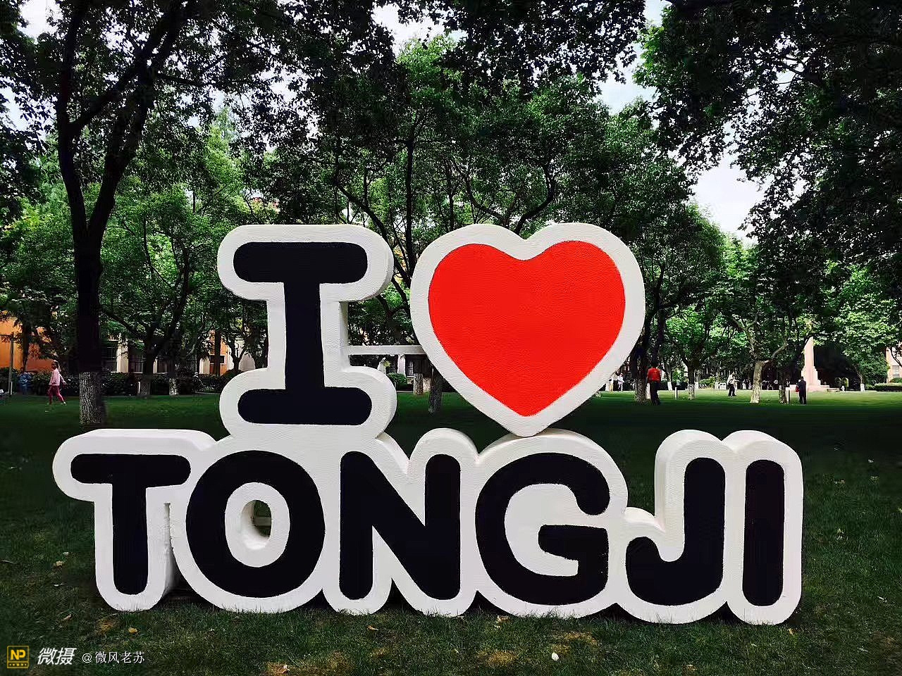 微信传来万里之外的母校校园里竖立的I love Tongji,表达了每一个同济学子的心声。