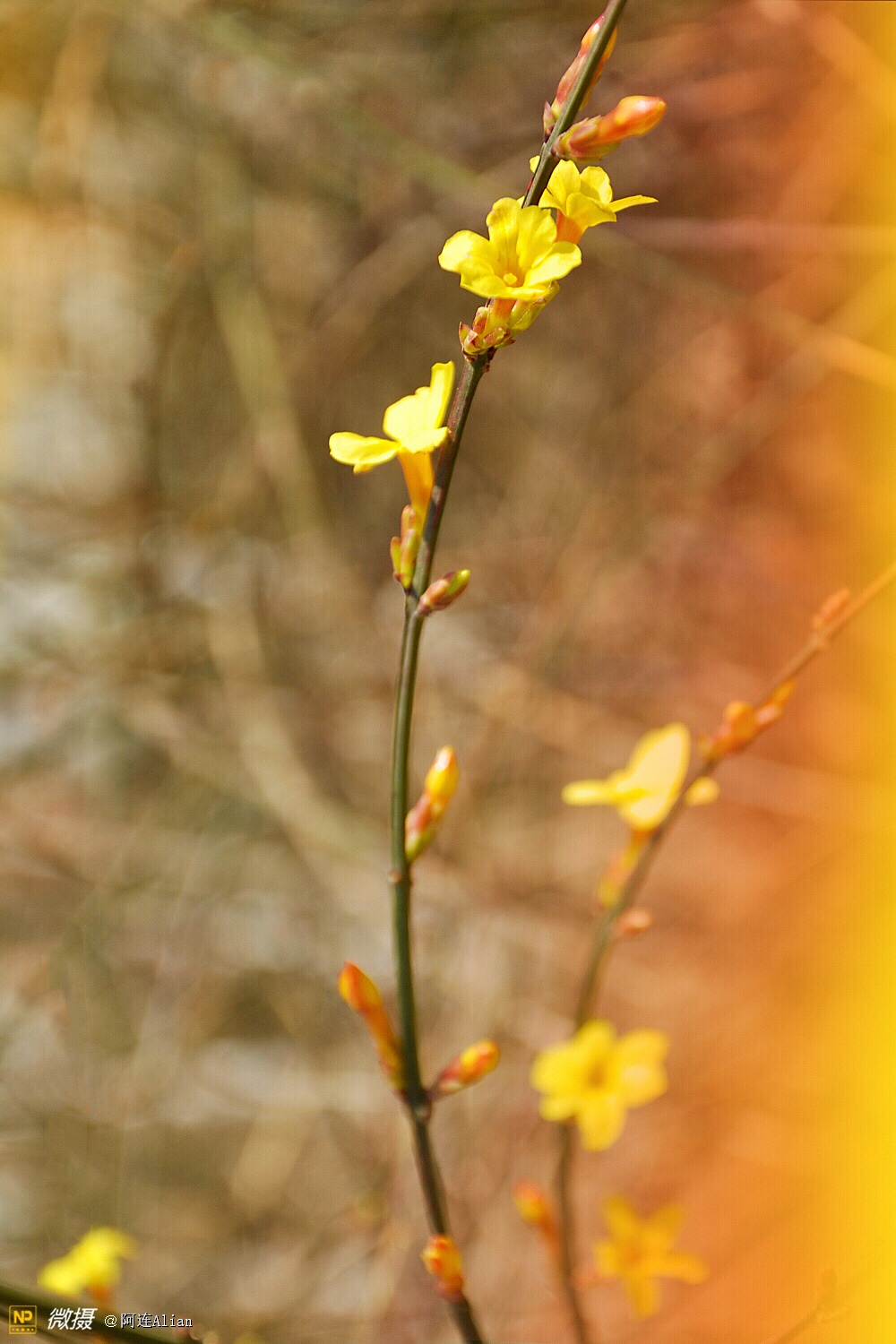 虽然迎春花是一种很常见的花,但因为俏也不争春,只把春来报的诗句,本人对迎春花有着别样的好感。