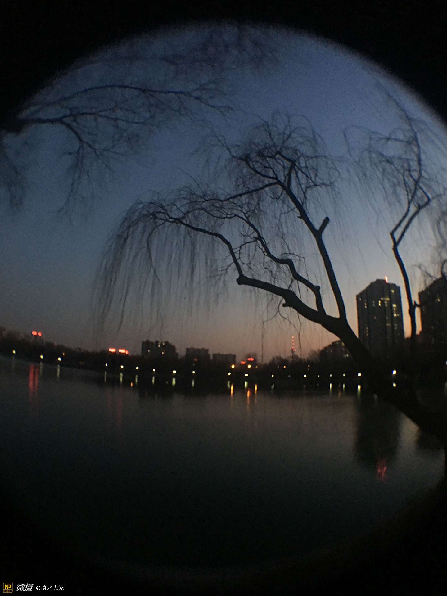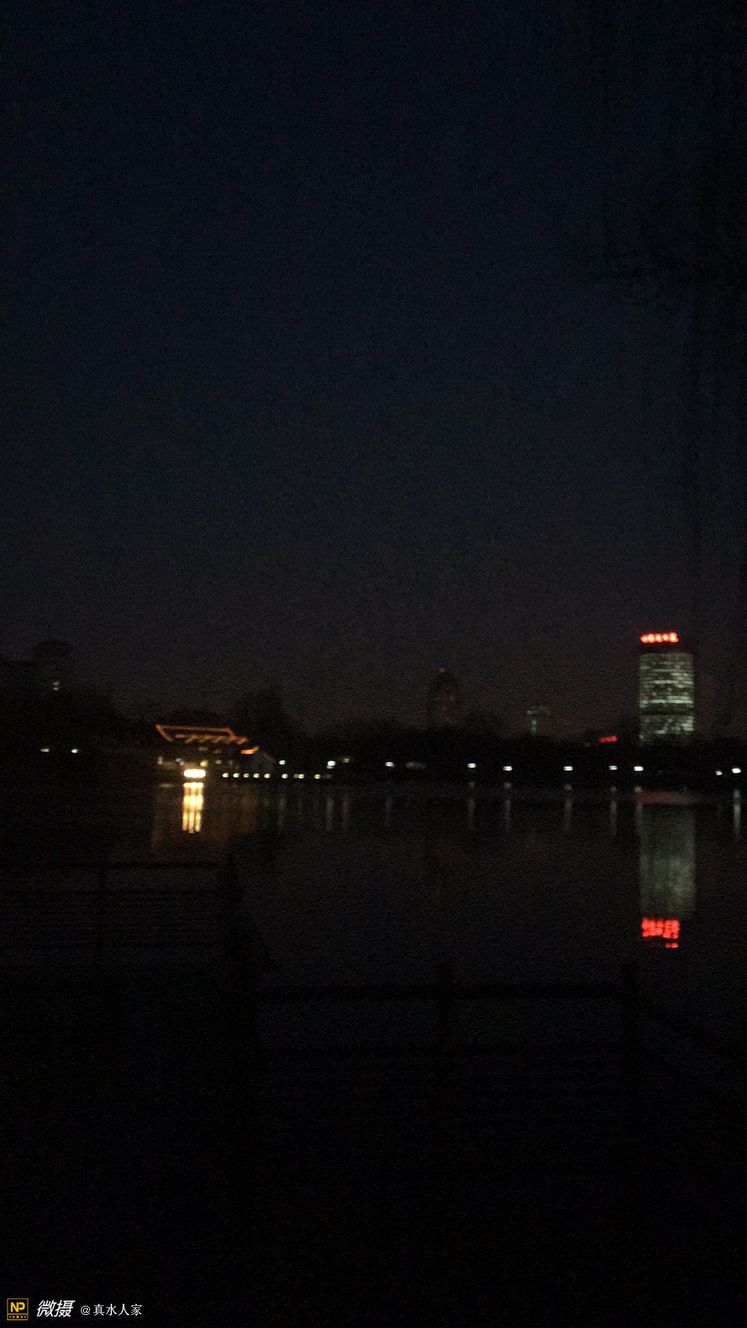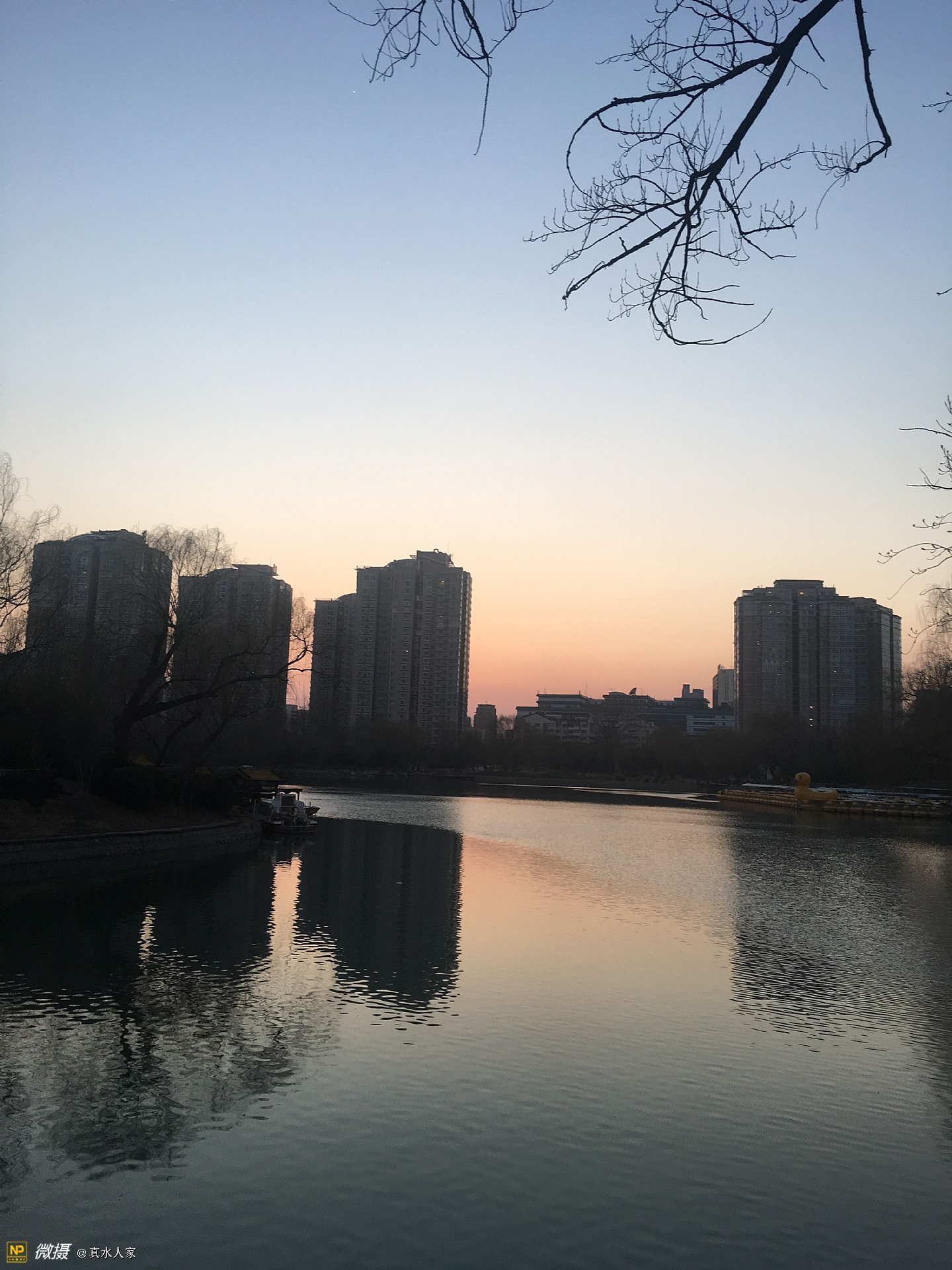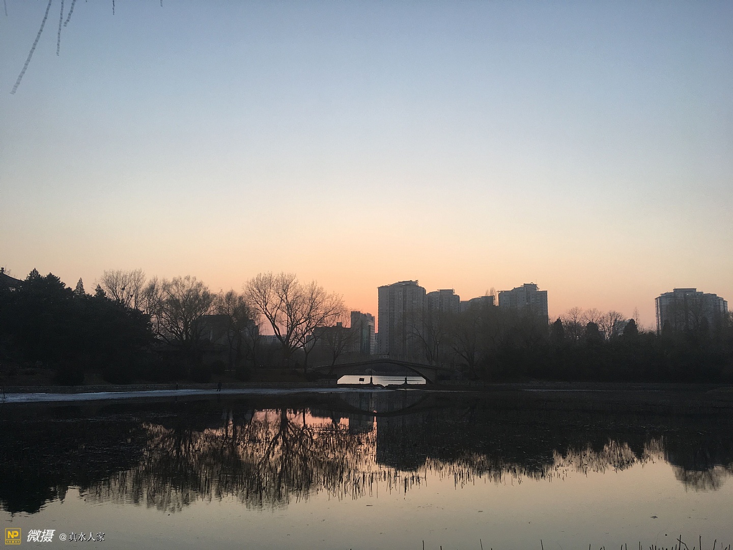 天边的晚霞尚存一抹红晕,路灯悄悄地睁开了眼睛。远远望去,点点灯光倒映在水面,似闪烁的星星。河岸边的树木不时地抖动着枝条,仿佛在与河流窃窃私语——静谧的傍晚。