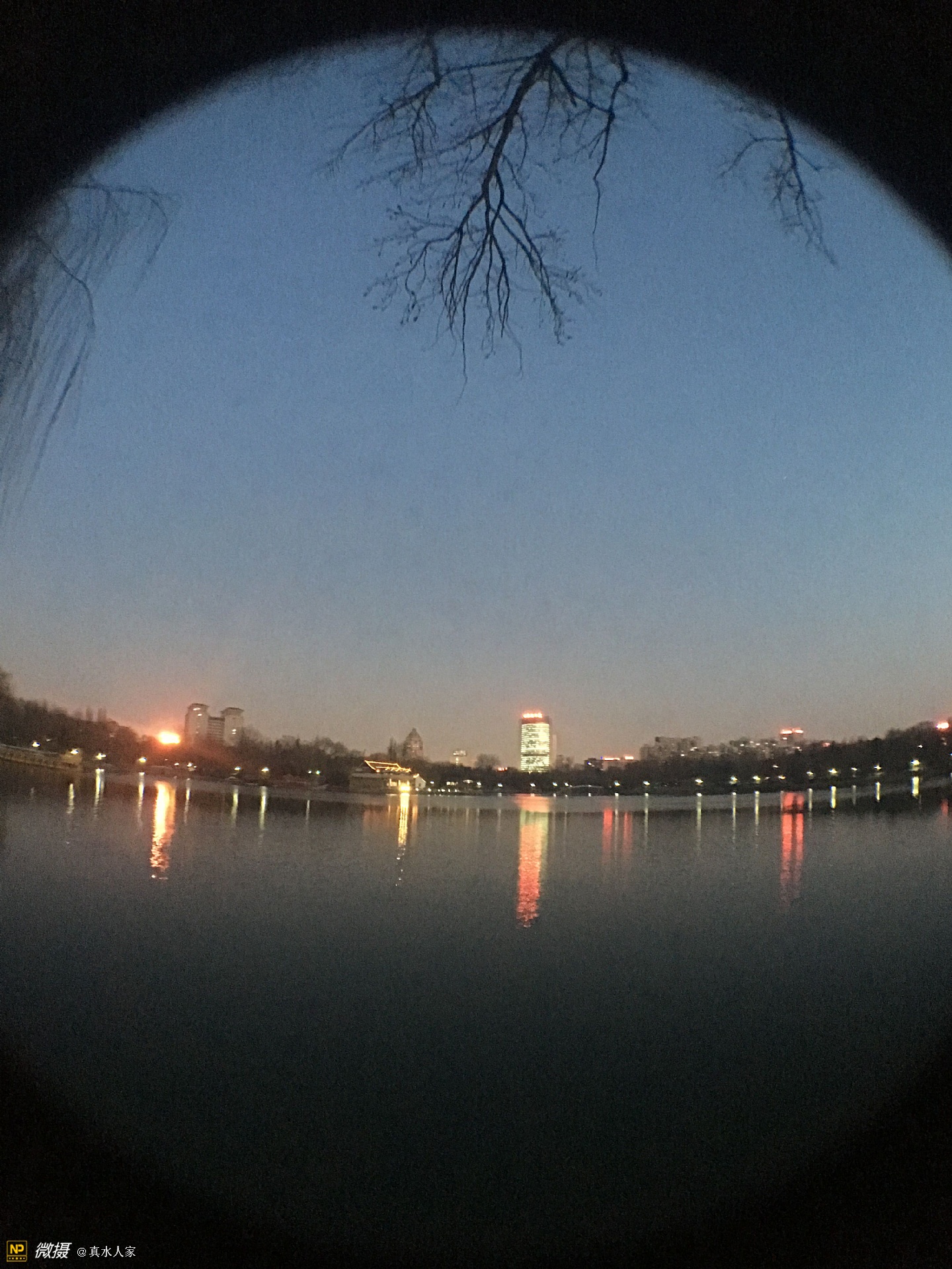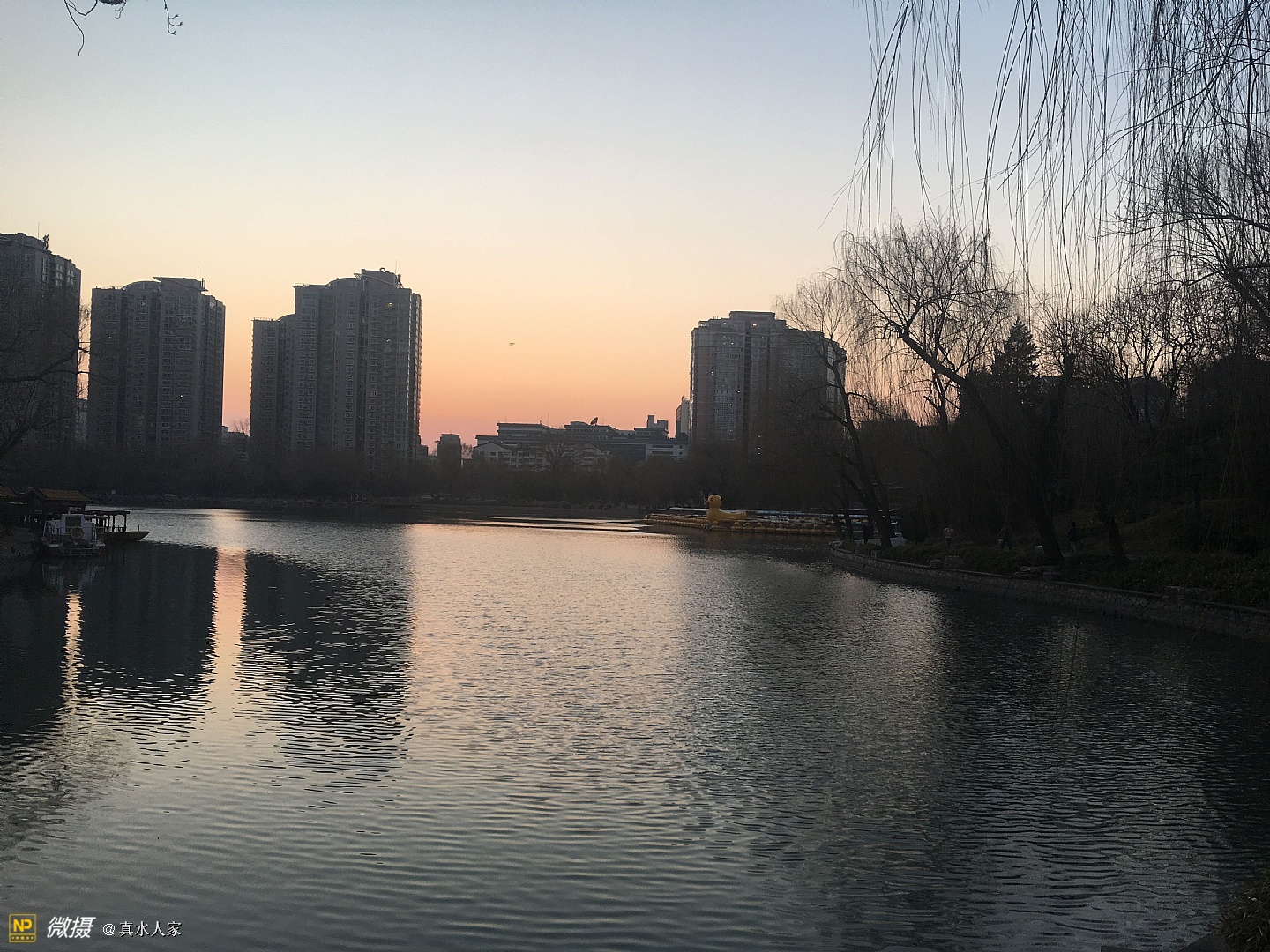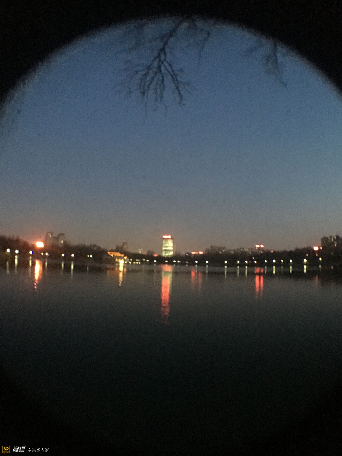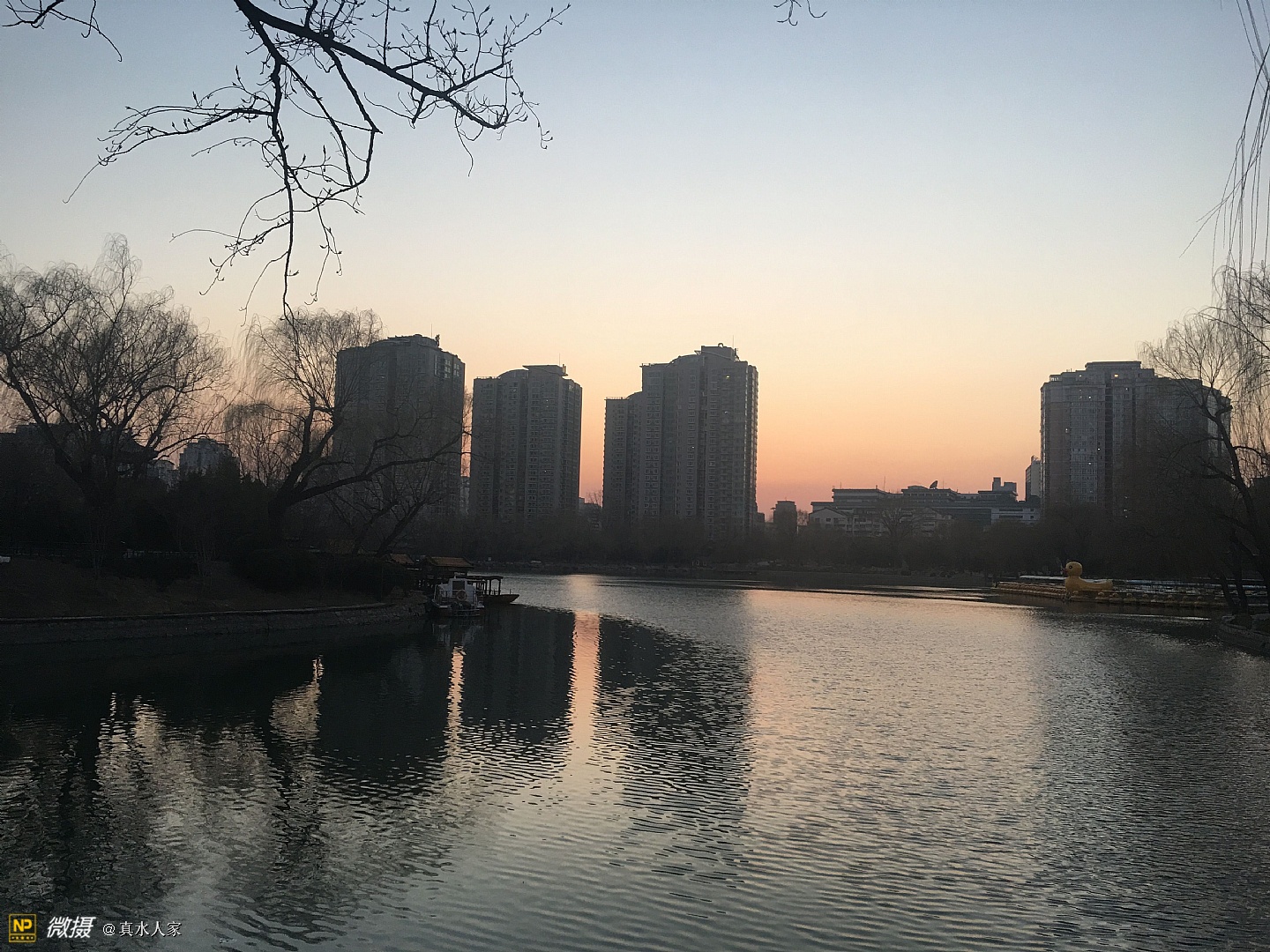 天边的晚霞尚存一抹红晕,路灯悄悄地睁开了眼睛。远远望去,点点灯光倒映在水面,似闪烁的星星。河岸边的树木不时地抖动着枝条,仿佛在与河流窃窃私语——静谧的傍晚。
