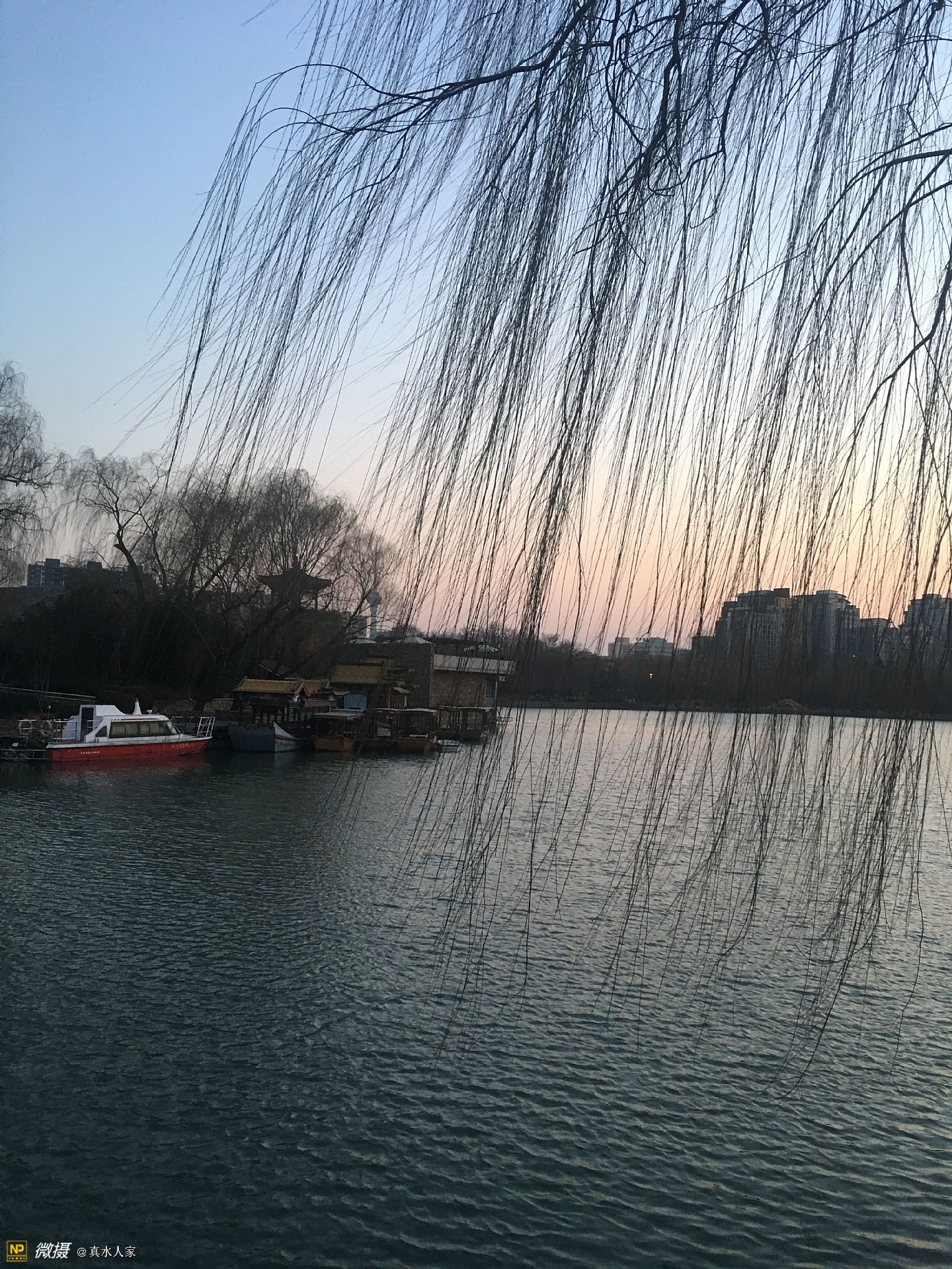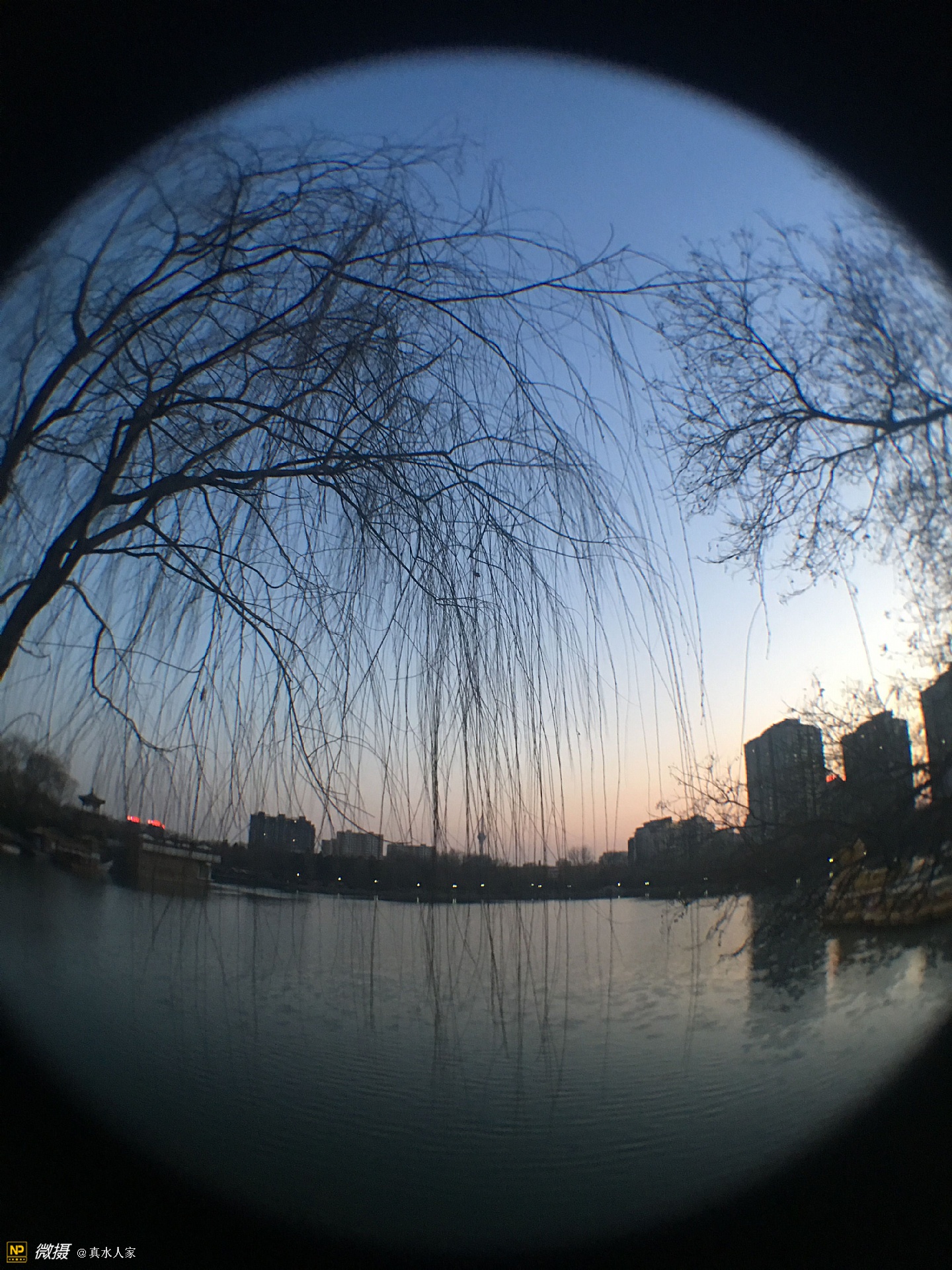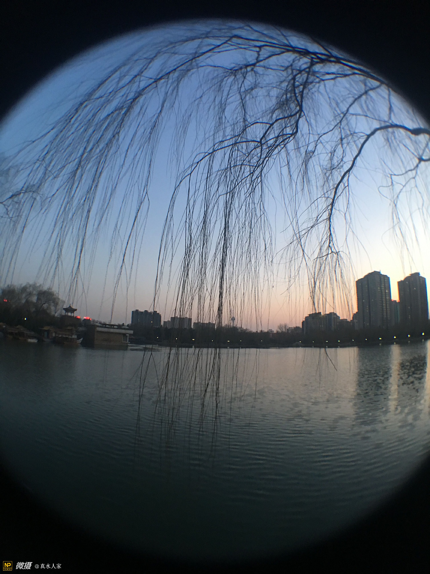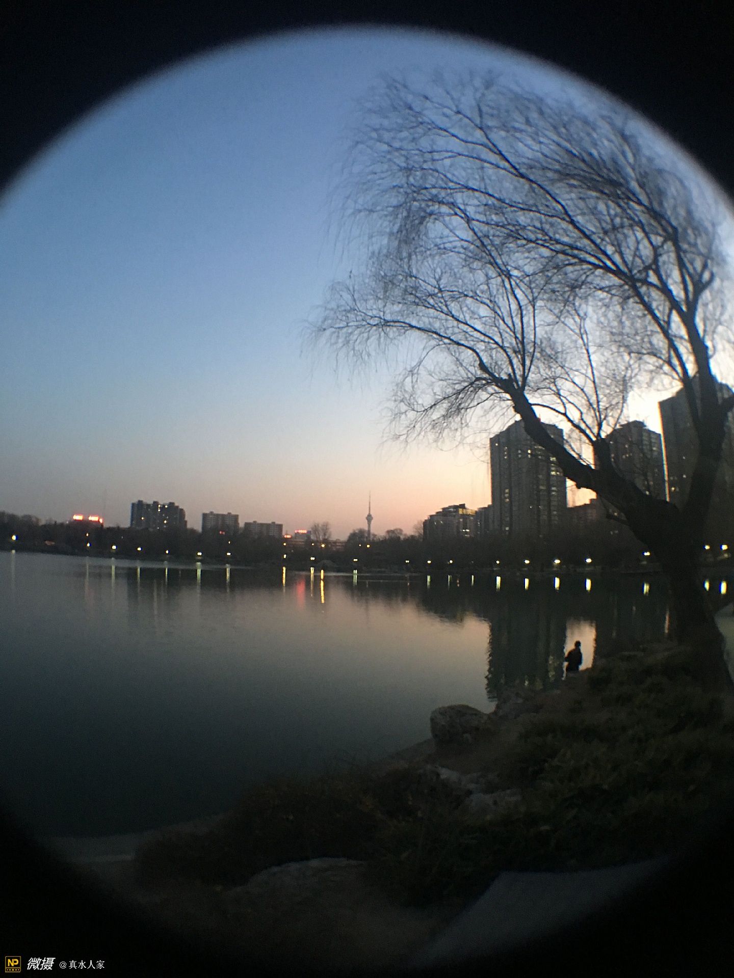 天边的晚霞尚存一抹红晕,路灯悄悄地睁开了眼睛。远远望去,点点灯光倒映在水面,似闪烁的星星。河岸边的树木不时地抖动着枝条,仿佛在与河流窃窃私语——静谧的傍晚。