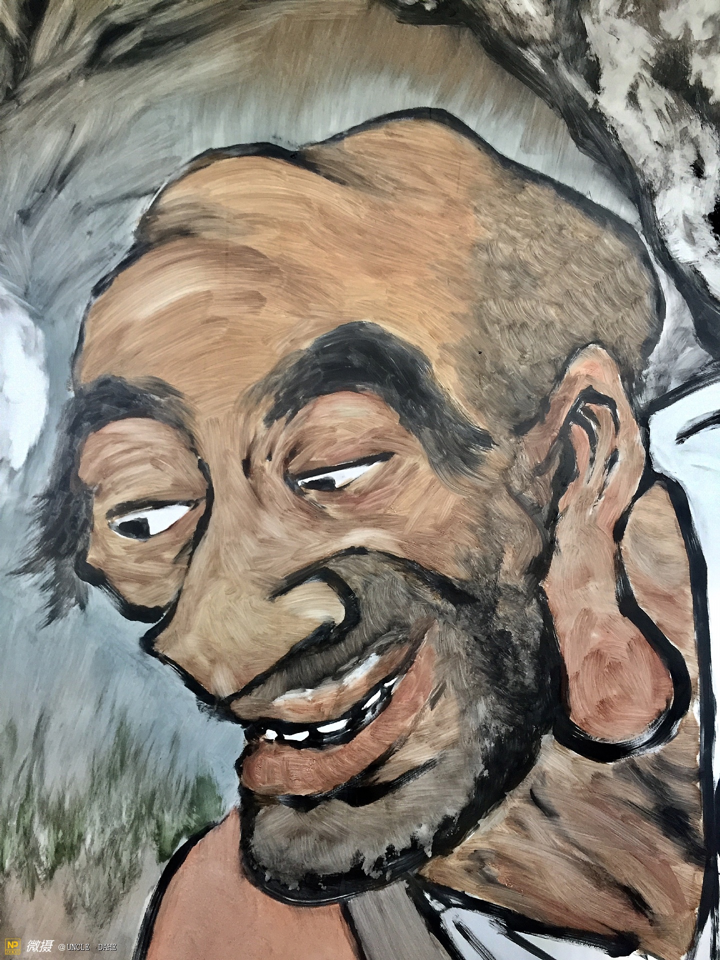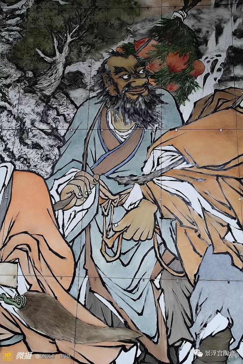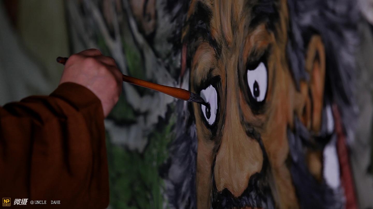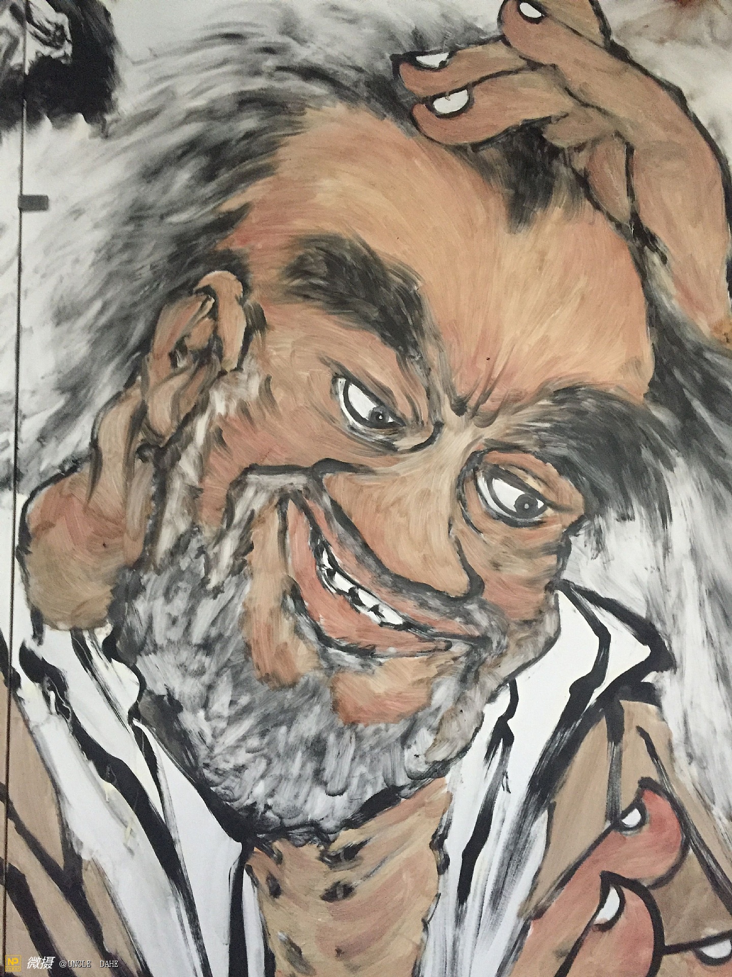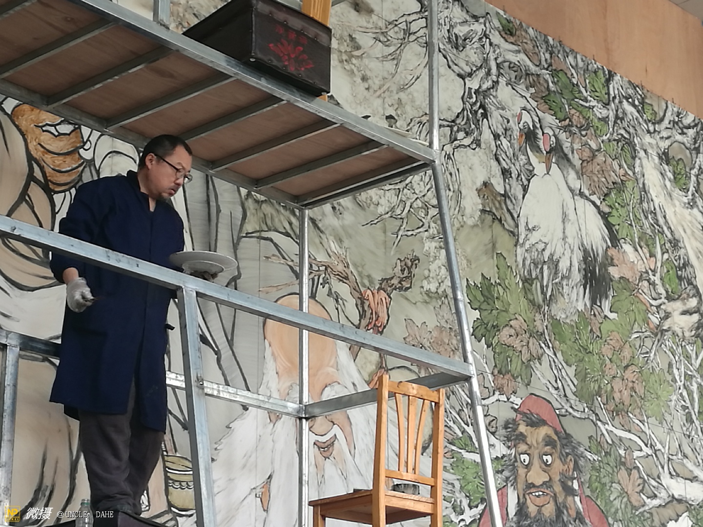 痛快淋漓的挥洒,常使觉圣停不下来,一个人物有5米高,画头不见脚,画脚看不到头,比例非常难掌握,一只鞋足有半米长。