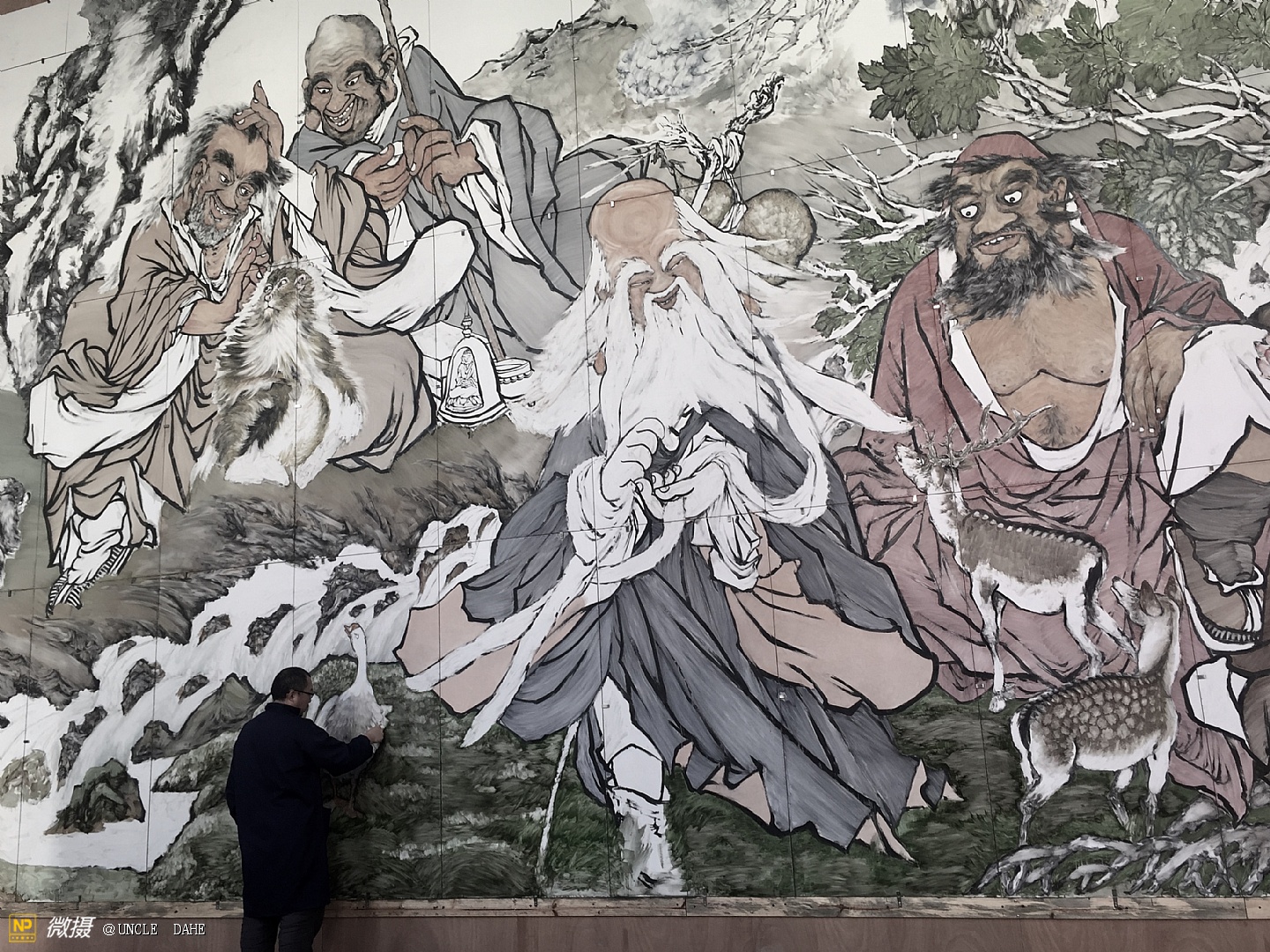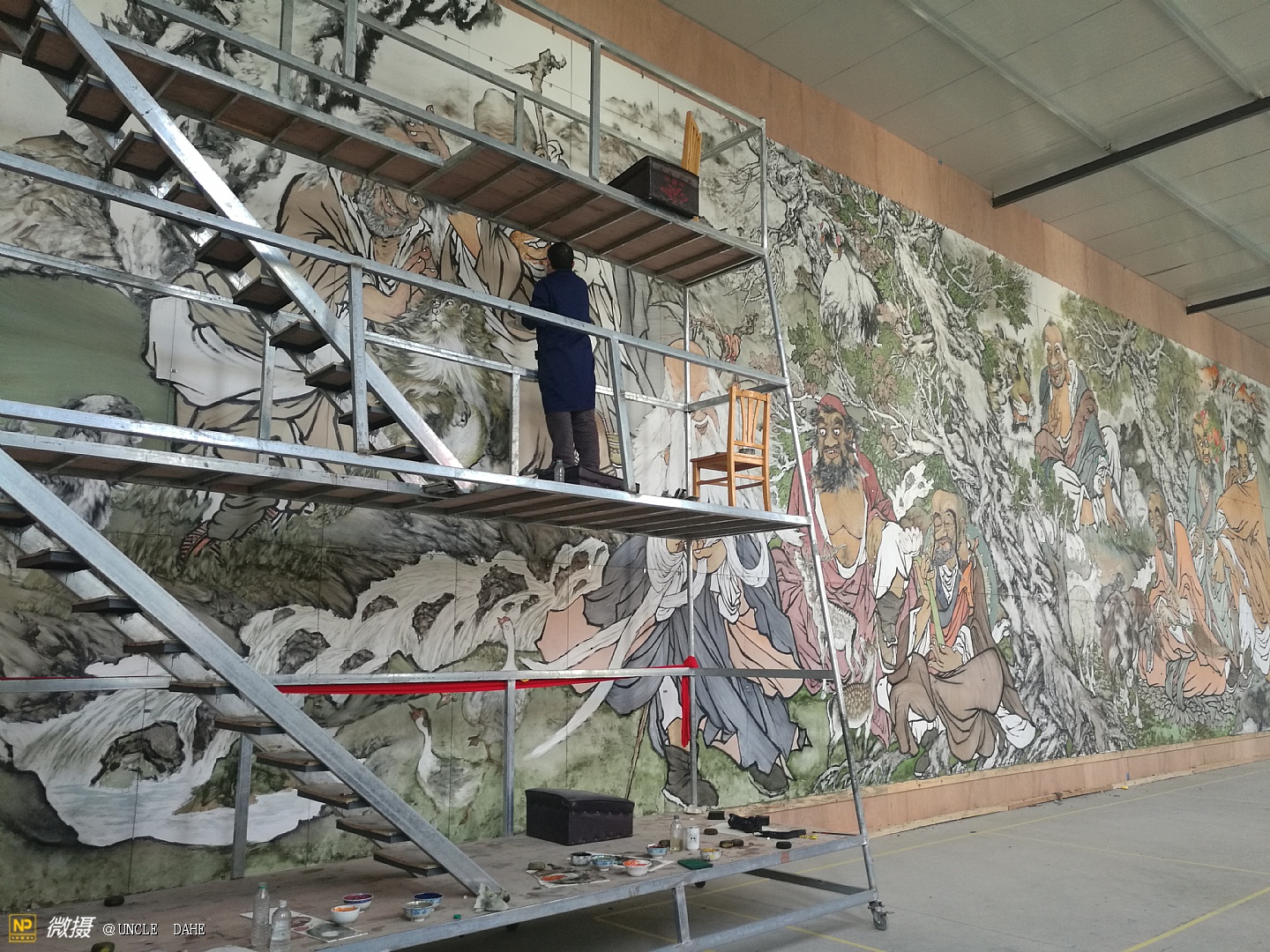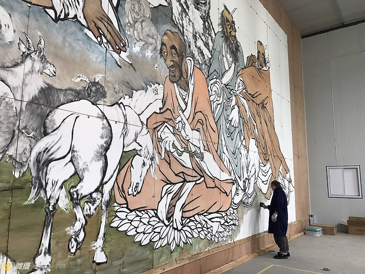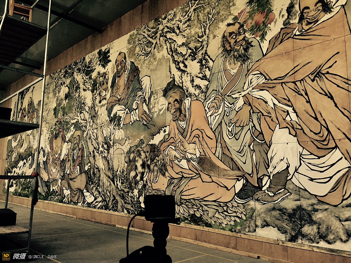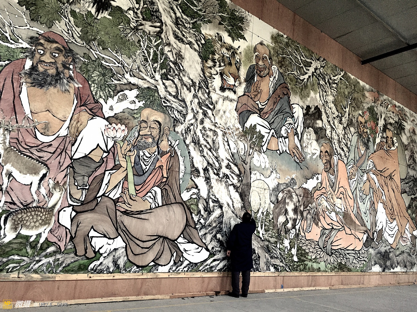 十八罗汉,每个罗汉都近5米高,是目前觉圣画的最大尺寸的人物
