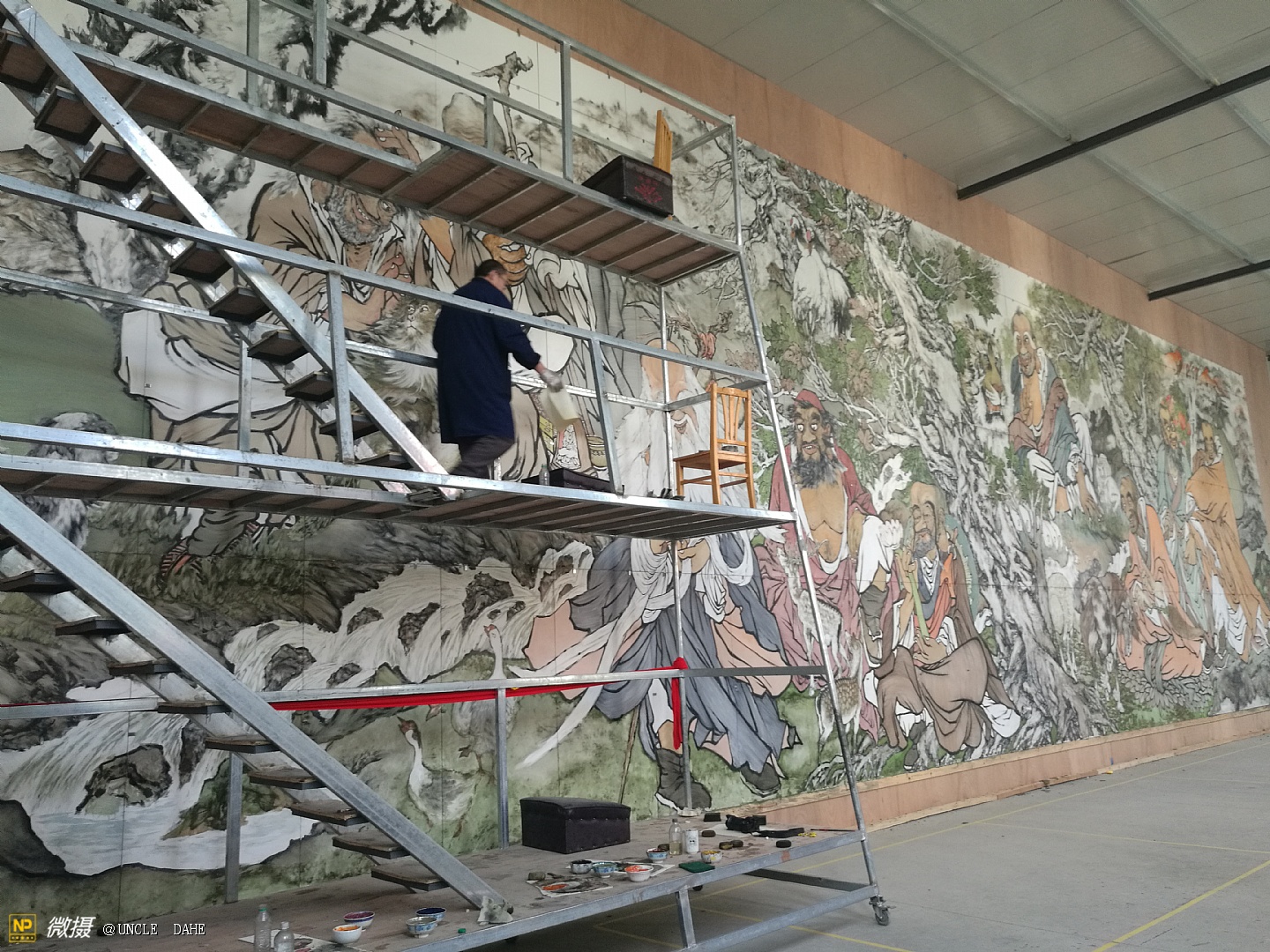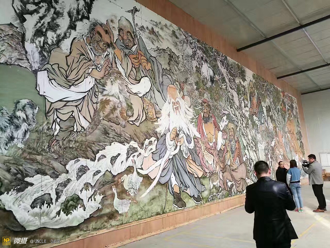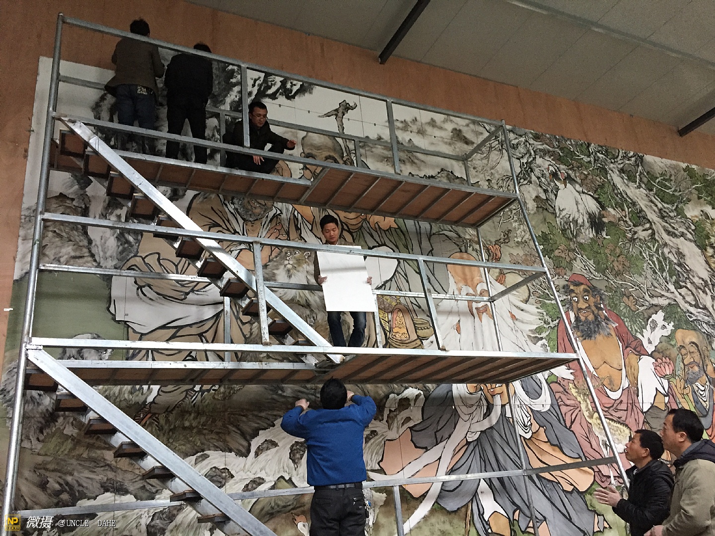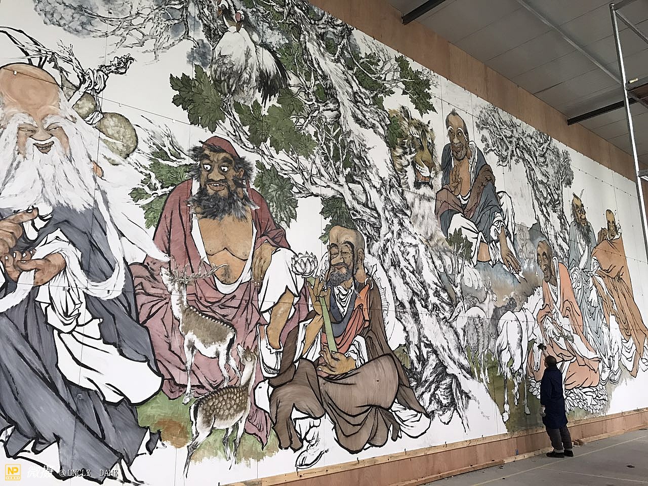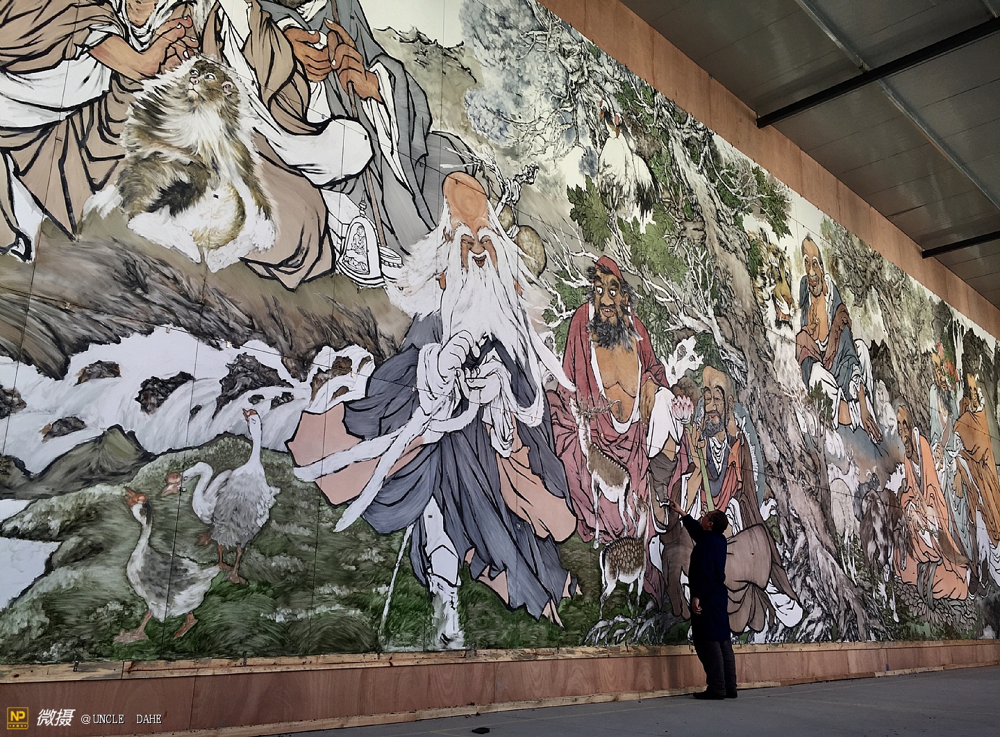 十八罗汉,每个罗汉都近5米高,是目前觉圣画的最大尺寸的人物