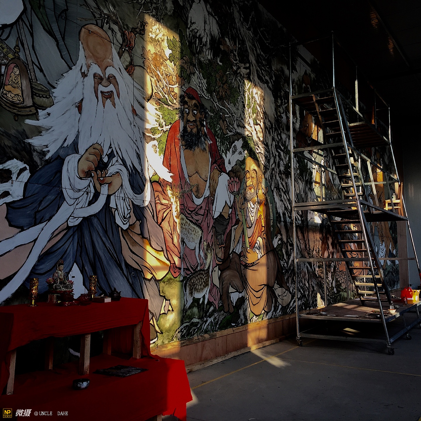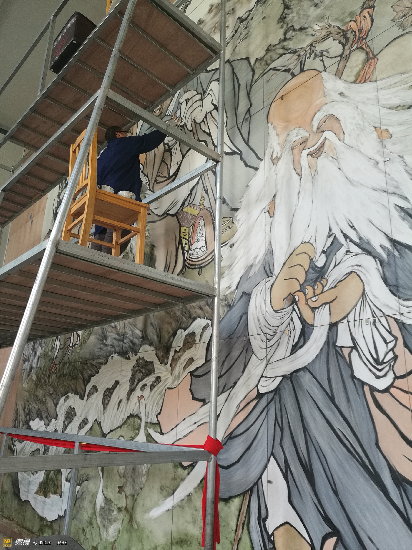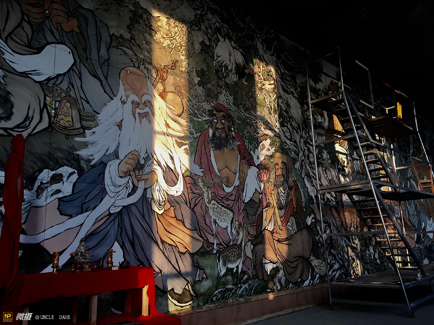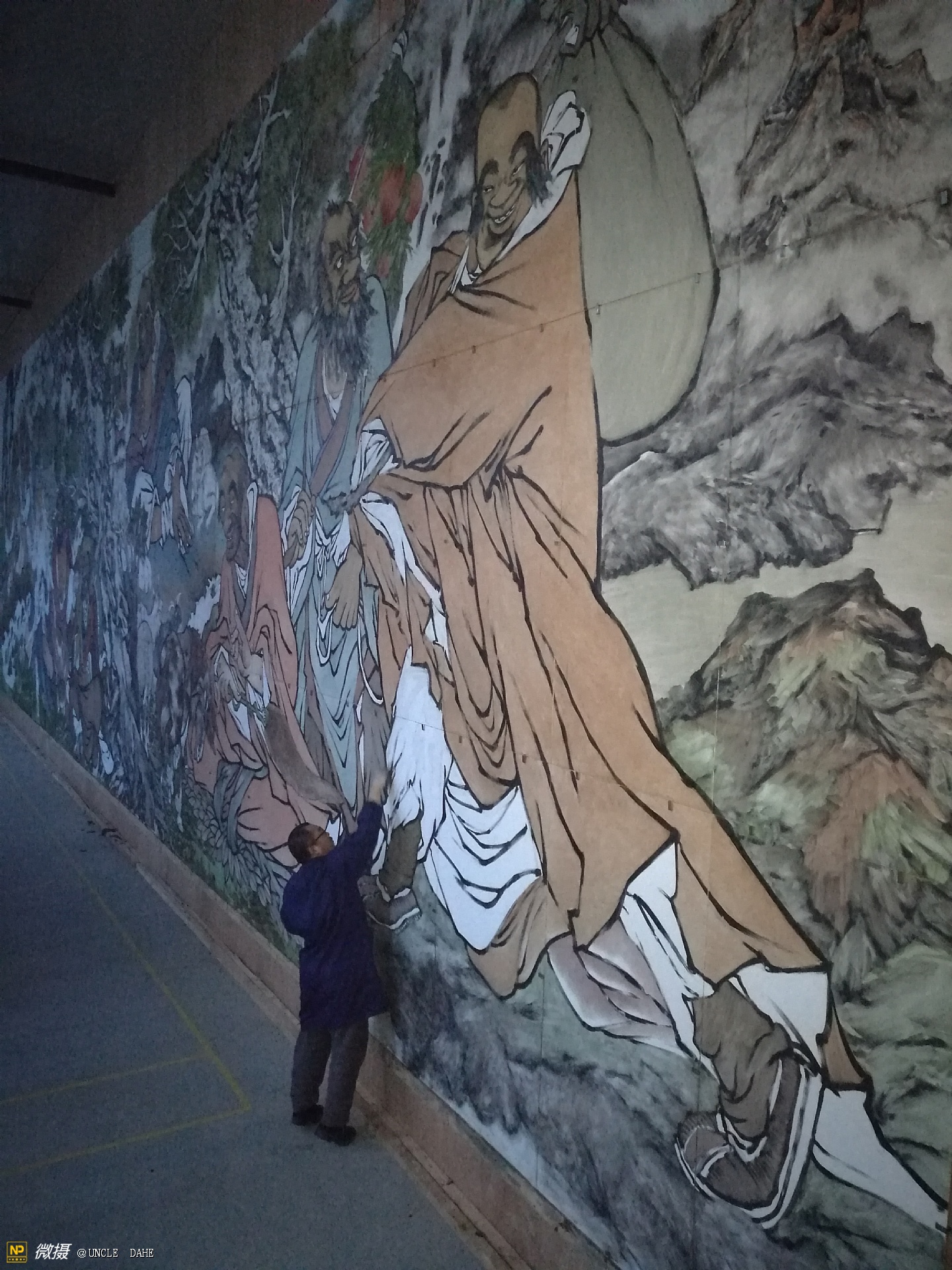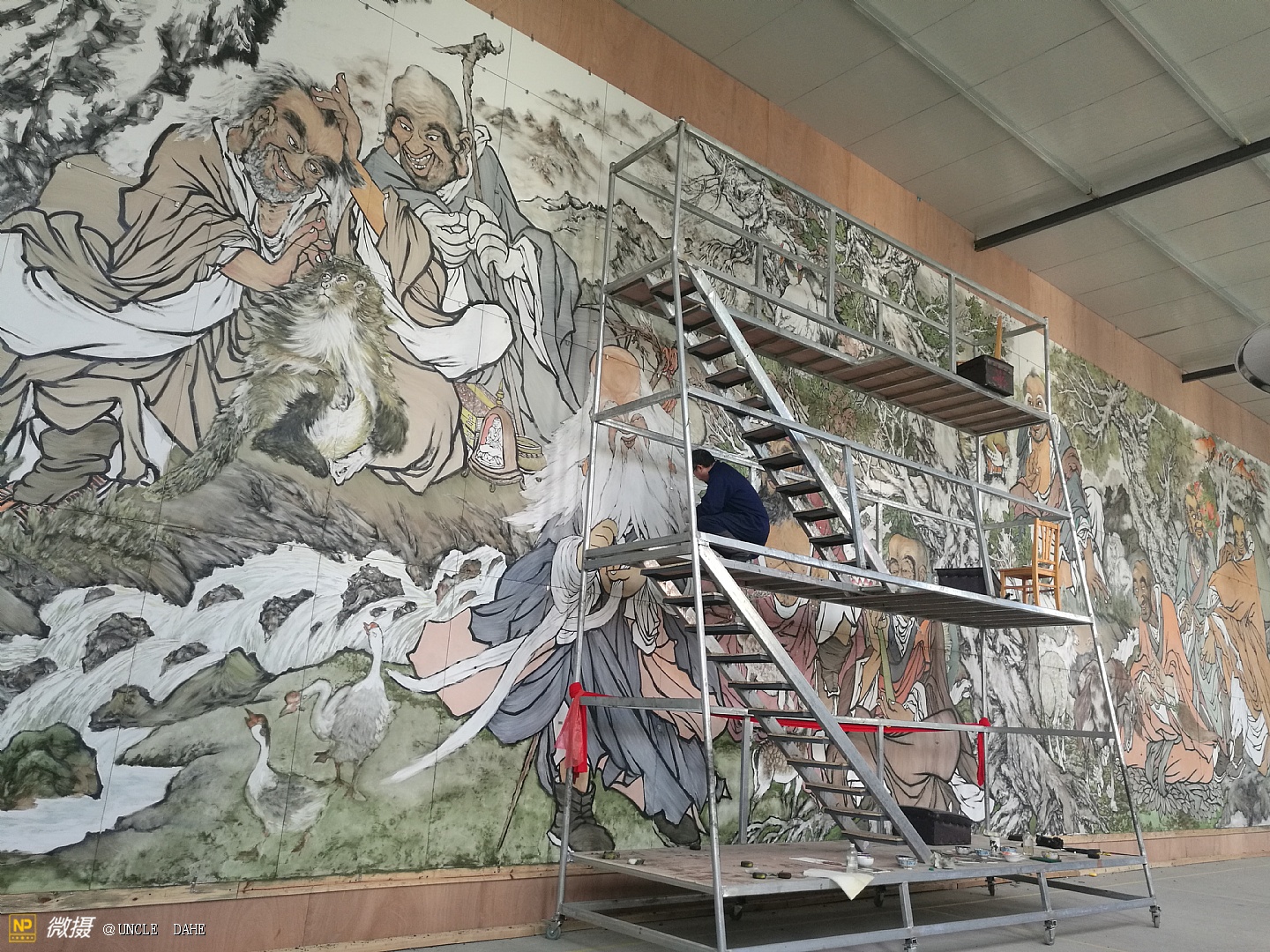 十八罗汉,每个罗汉都近5米高,是目前觉圣画的最大尺寸的人物