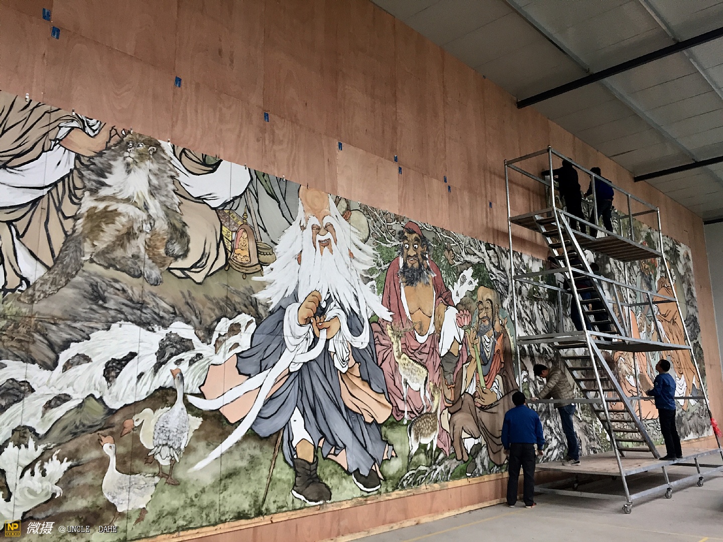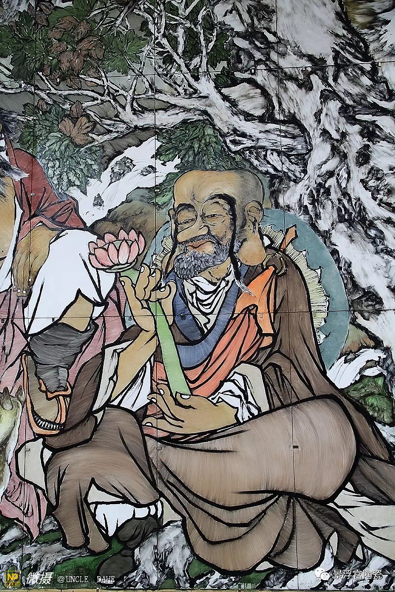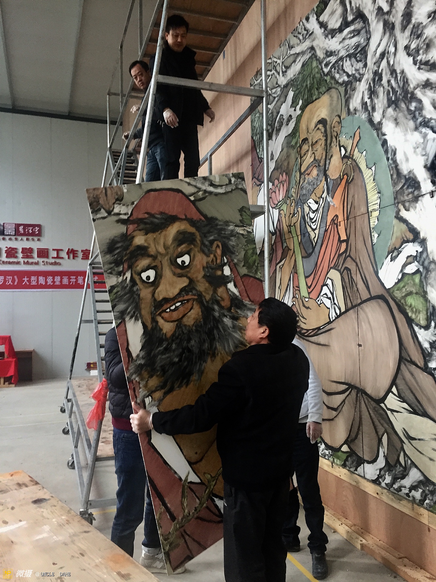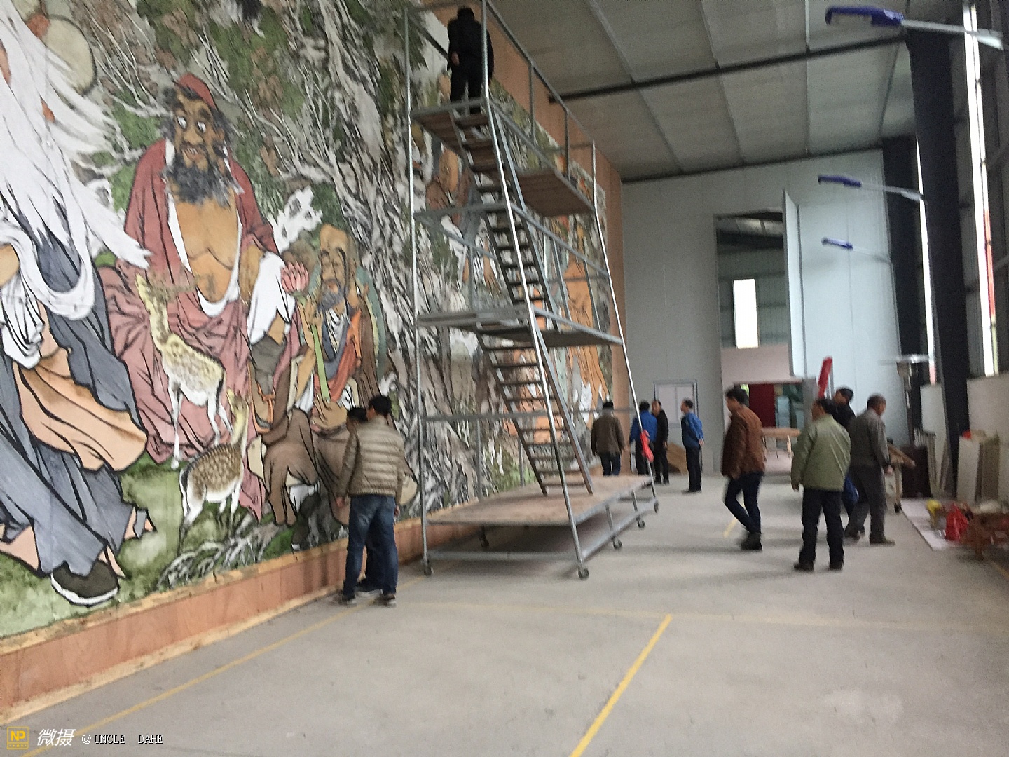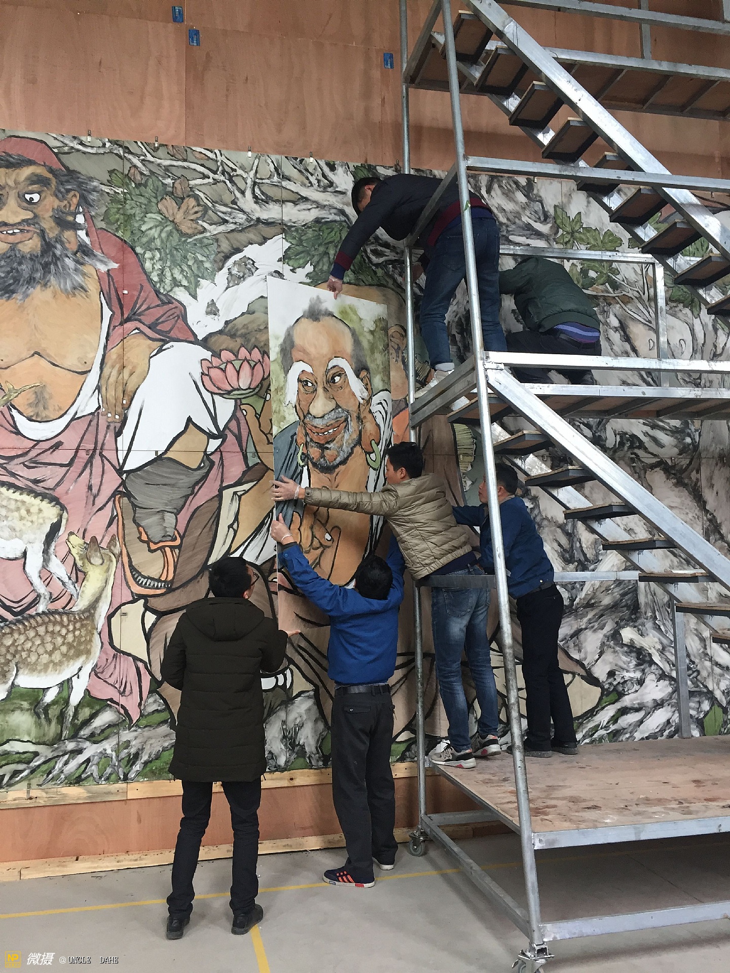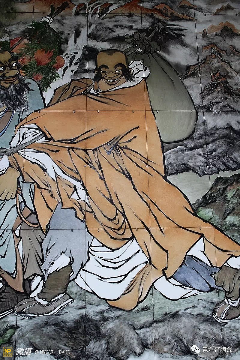十八罗汉,每个罗汉都近5米高,是目前觉圣画的最大尺寸的人物