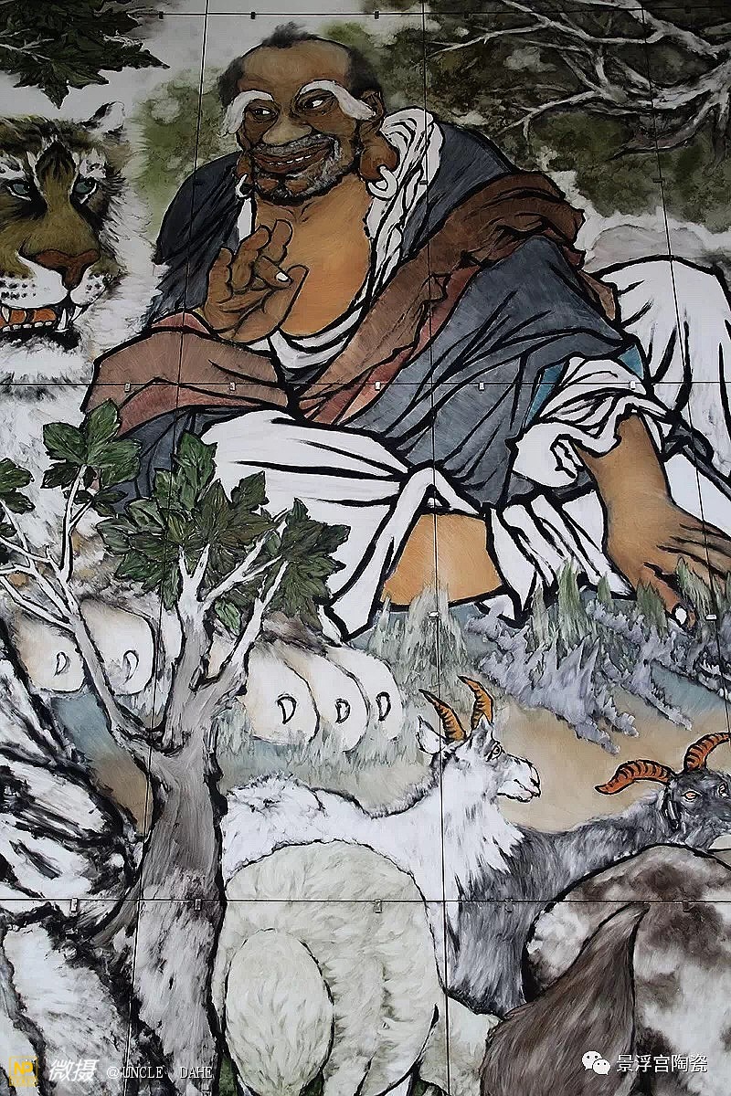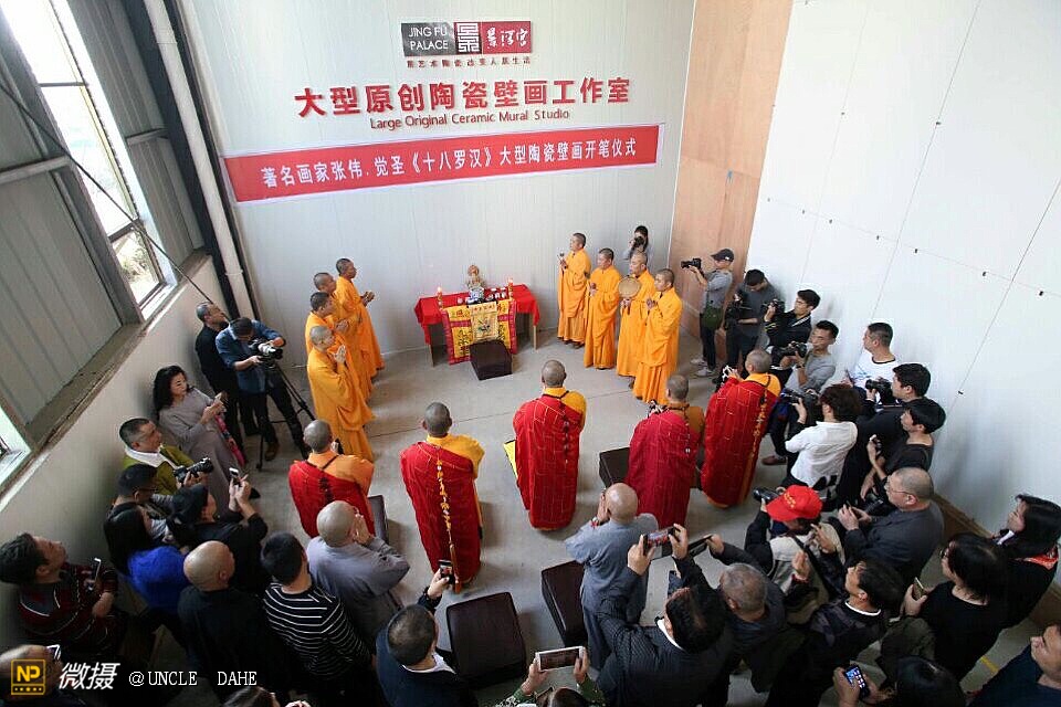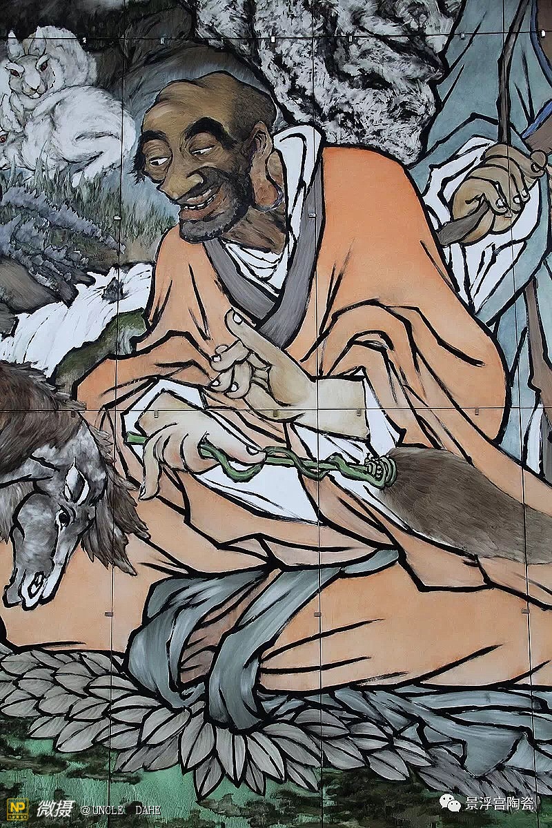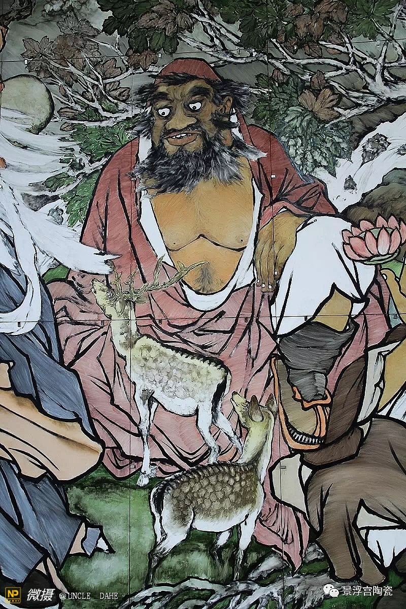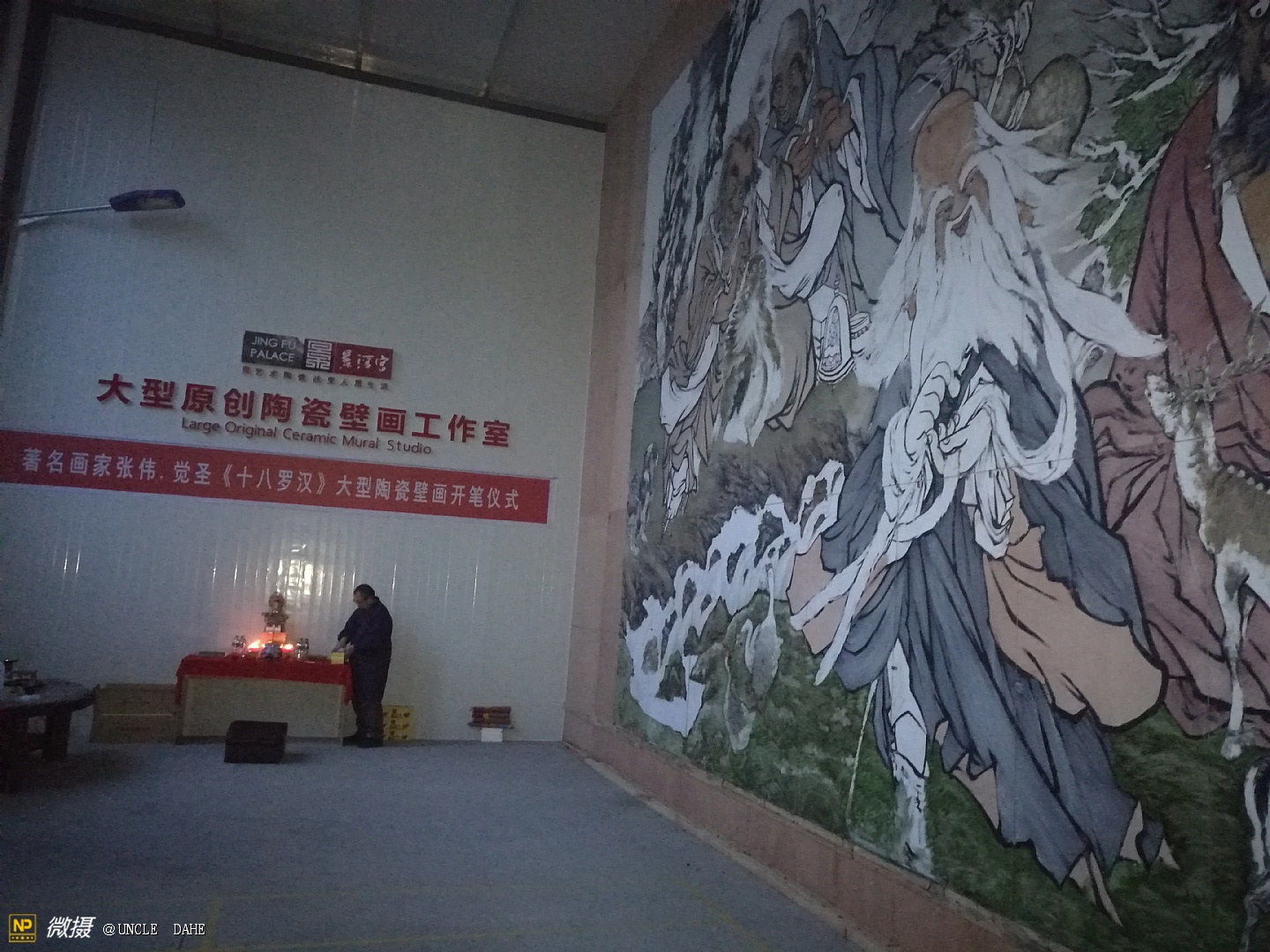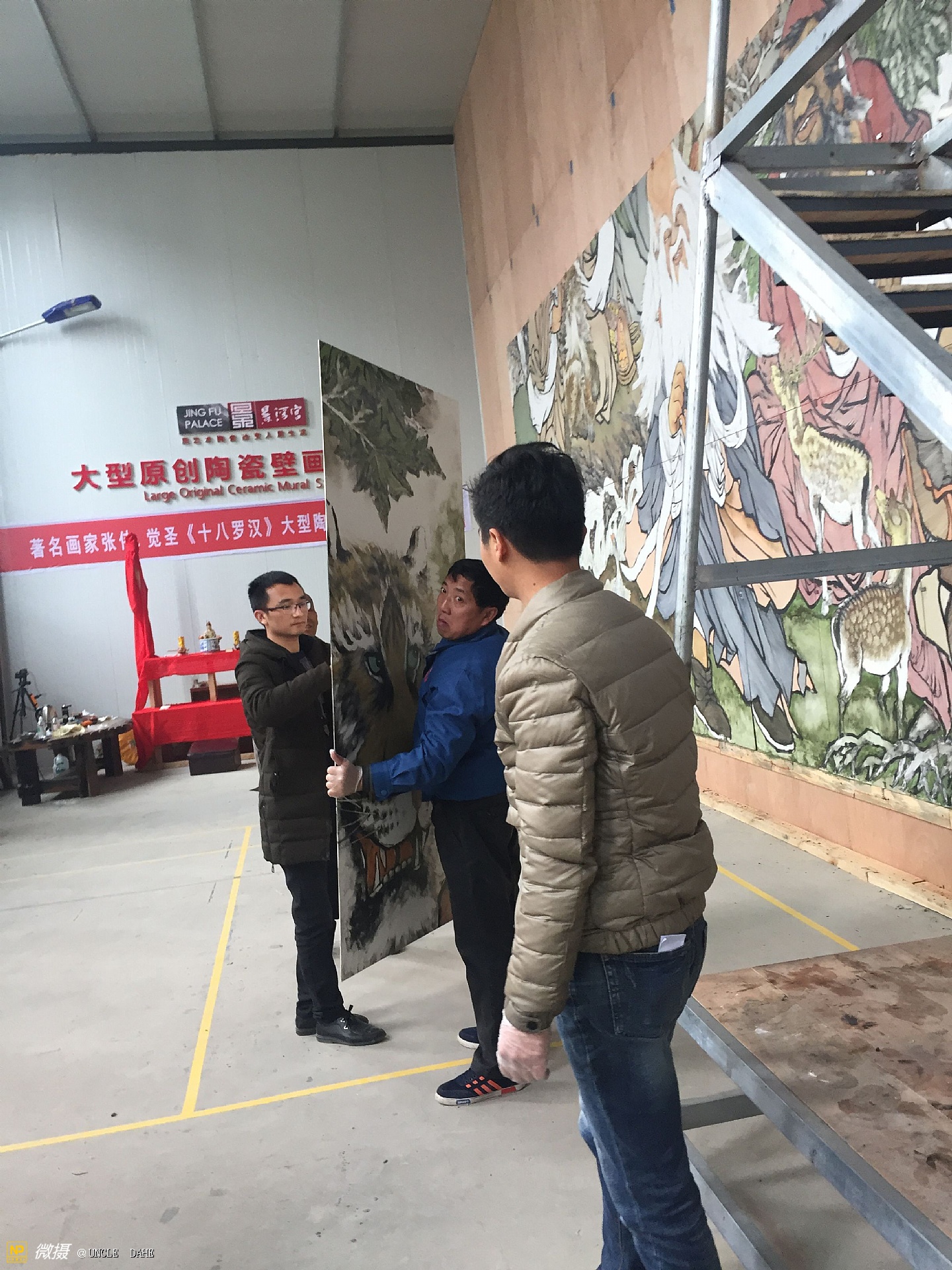 十八罗汉,每个罗汉都近5米高,是目前觉圣画的最大尺寸的人物