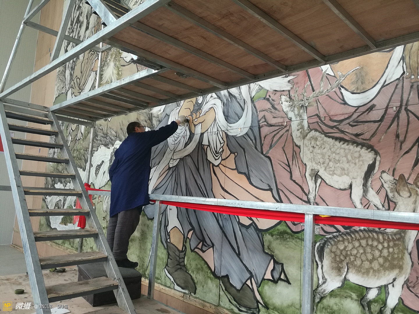 高近七米,宽,每面墙二十二米,这个体量之大,对觉圣是个极大的挑战,人物造型的尺度,对觉圣来说也是个极限了。