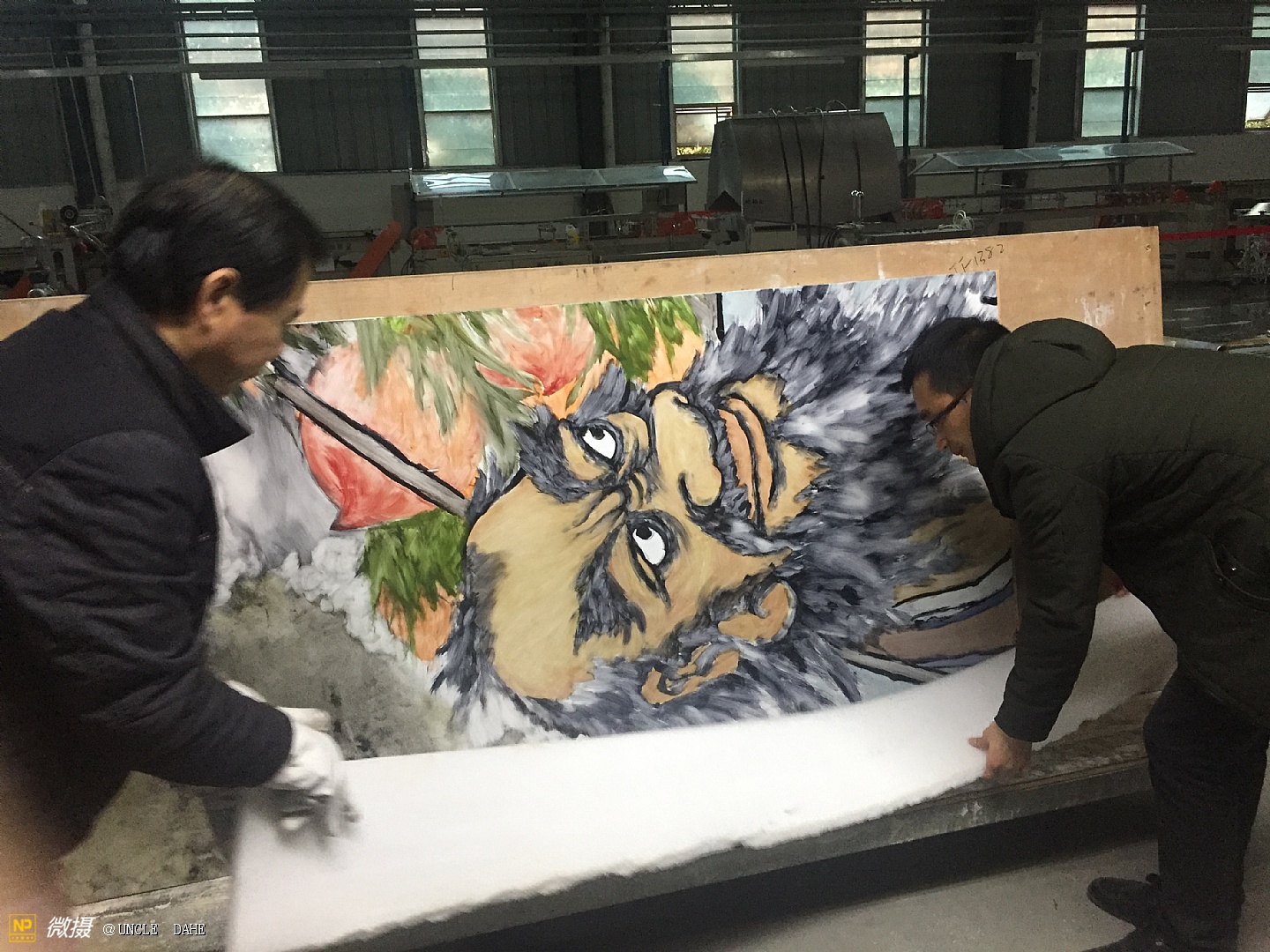 由132块大瓷板和44块小瓷拚制而成,也是目前世界上最好,最先进,最平整,最贵的瓷材料,完成后他们将申请世界吉尼斯纪录
