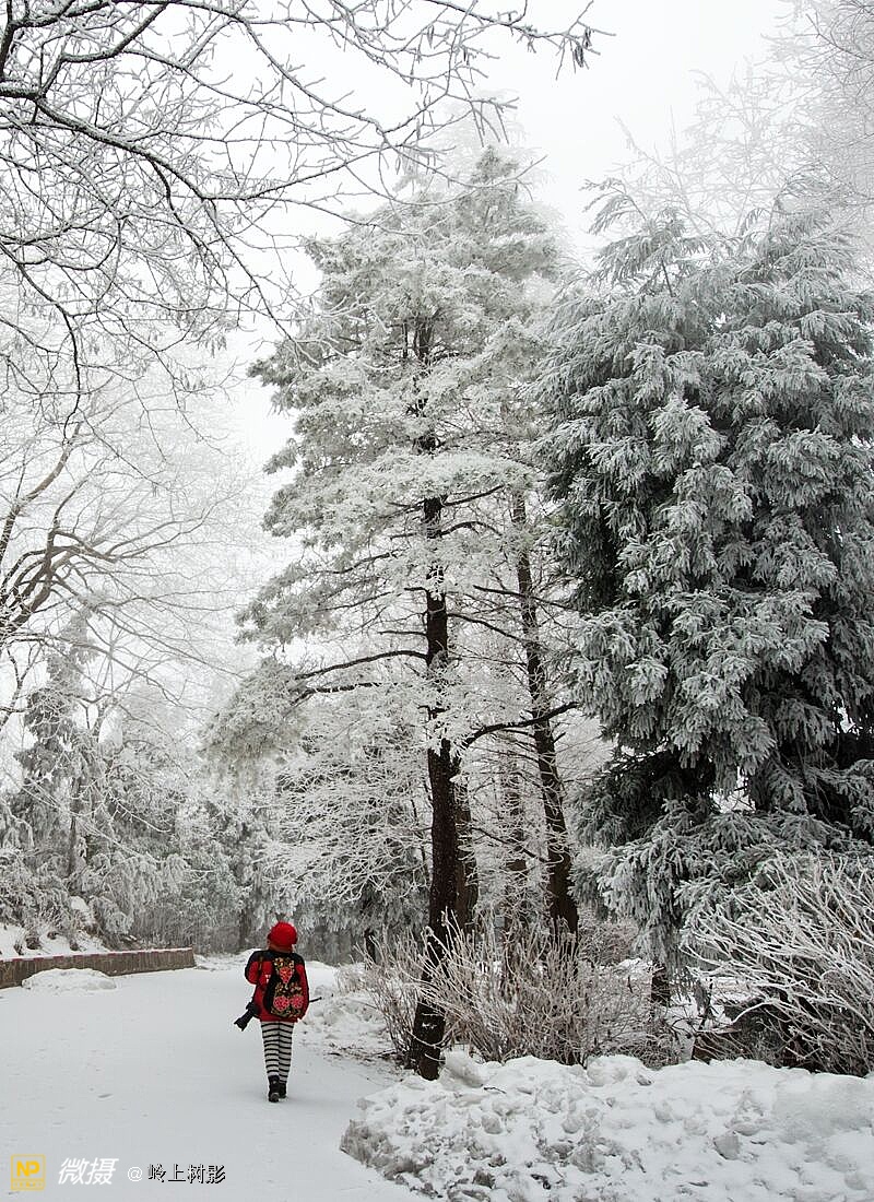 鸡公山是国家级自然保护区,区内森林茂密、生物资源丰富,有“青分豫楚、襟扼三江”之美誉,“佛光、云海、雾淞、雨淞、霞光、异国花草、奇峰怪石、瀑布流泉”被称为八大自然景观,山上有清末民初不同国别和风格的建筑群,有“万国建筑博物馆”之美称,是中国历史上第一个公共租界。为拍这场雪,下雪前从郑州驾车一路匆匆赶到鸡公山,没想到老天厚爱,用满山的雾凇冰花迎接了我们!只知道雾凇柔弱娇嫩,刹那芳华,更没想到,鸡公山的雾凇,却是一整天都挂在树梢!打听后才知道,进入冬季,遇雾天山上多样化的物种就被包裹成了千姿百态的雾凇……