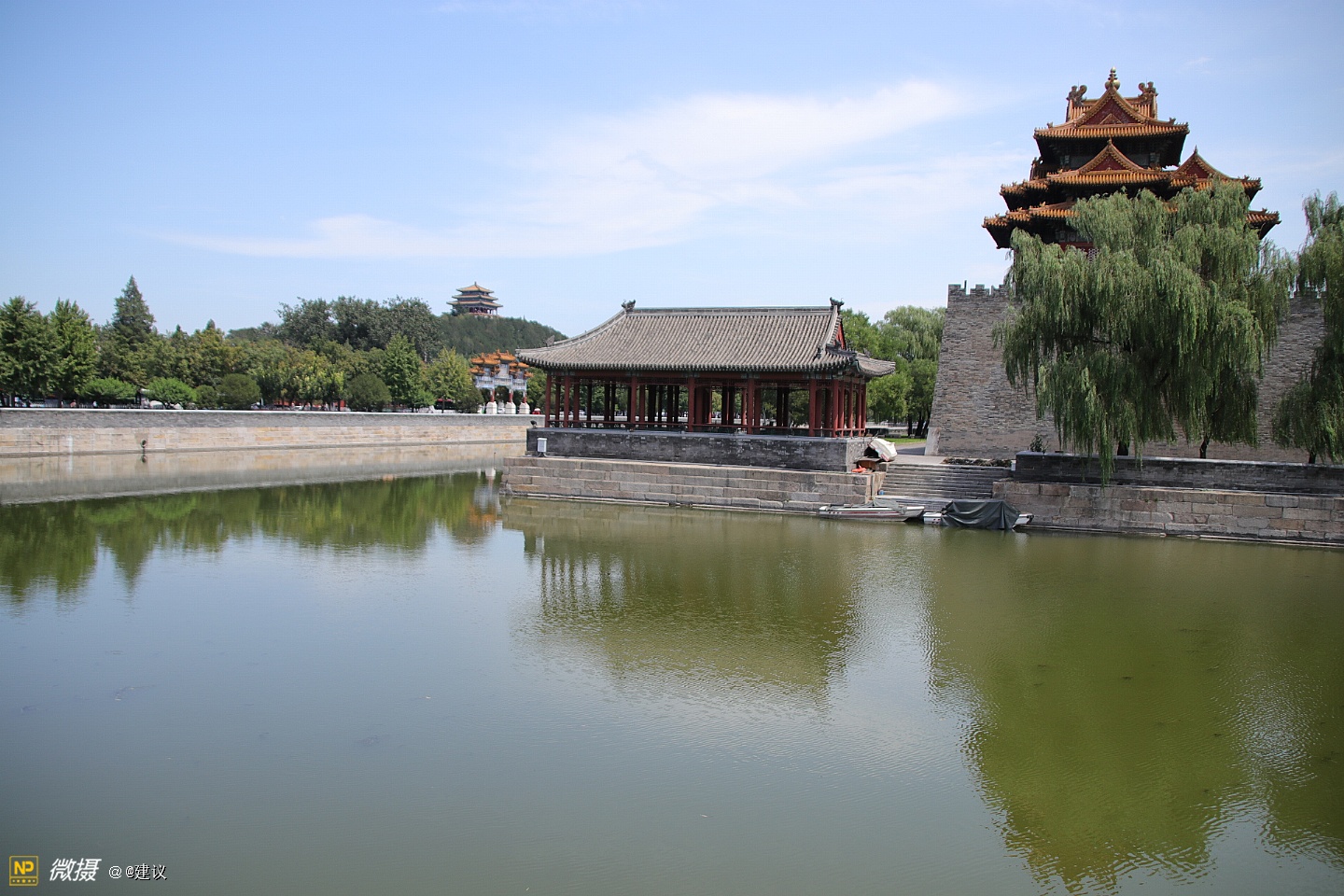 紫禁城角楼位于北京市。是一座四面凸字形平面组合的多角建筑,屋顶有三层,上层是纵横搭交的歇山顶,由两坡流水的悬山顶与四面坡的庑殿组合而成,因这种屋顶上有九条主要屋脊,所以称做九脊殿。中层采用勾连搭的做法,用四面抱厦的歇山顶环拱中心的屋顶,犹如众星拱月。下层檐为一环半坡顶的腰檐,使上两层的5个屋顶形成一个复合式的整体。集精巧的建筑结构和精湛的建筑艺术于一身,由于角楼的各部分比例谐调,檐角秀丽,造型玲珑别致,成为紫禁城的标志,使人惊奇,赞叹与敬仰。