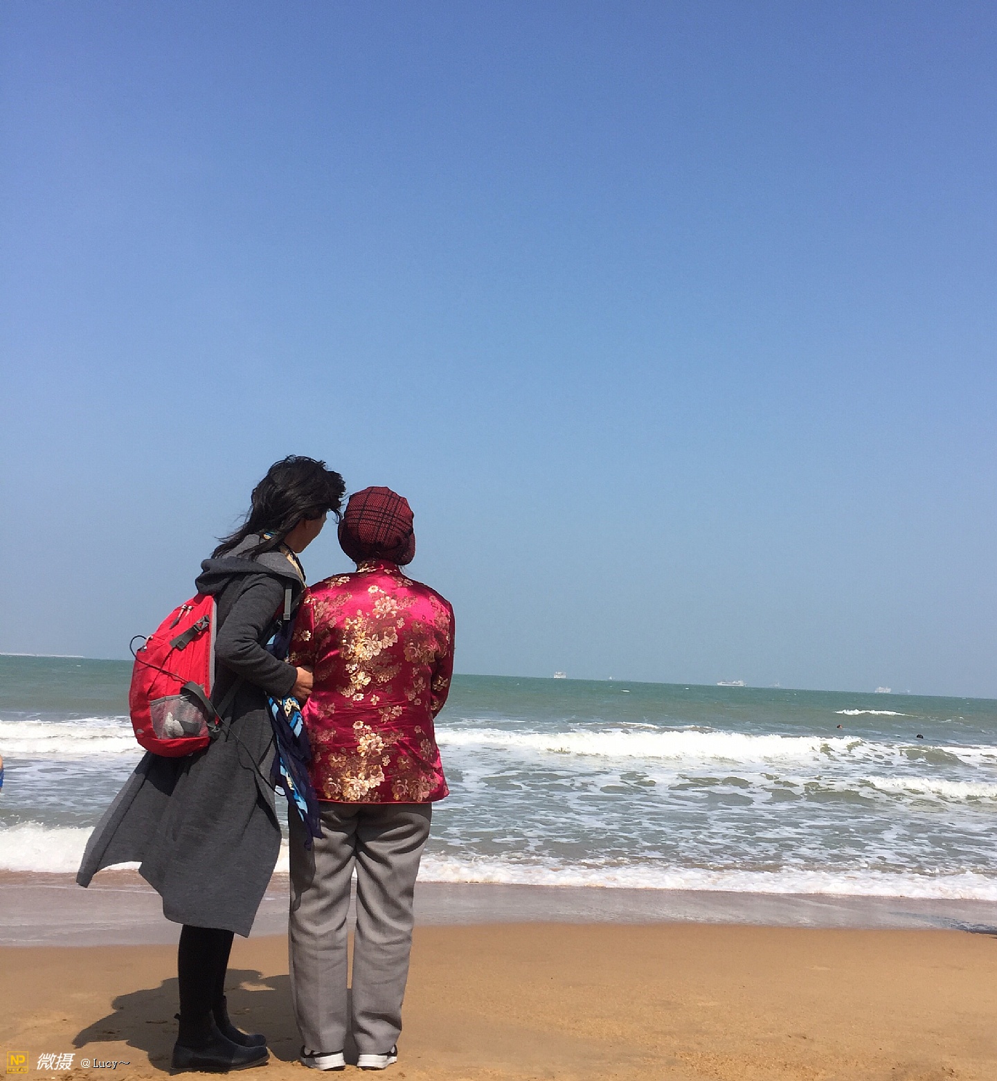 看、大海边来了、比刘家峡库区大吧?和天津看的海不一样吧?