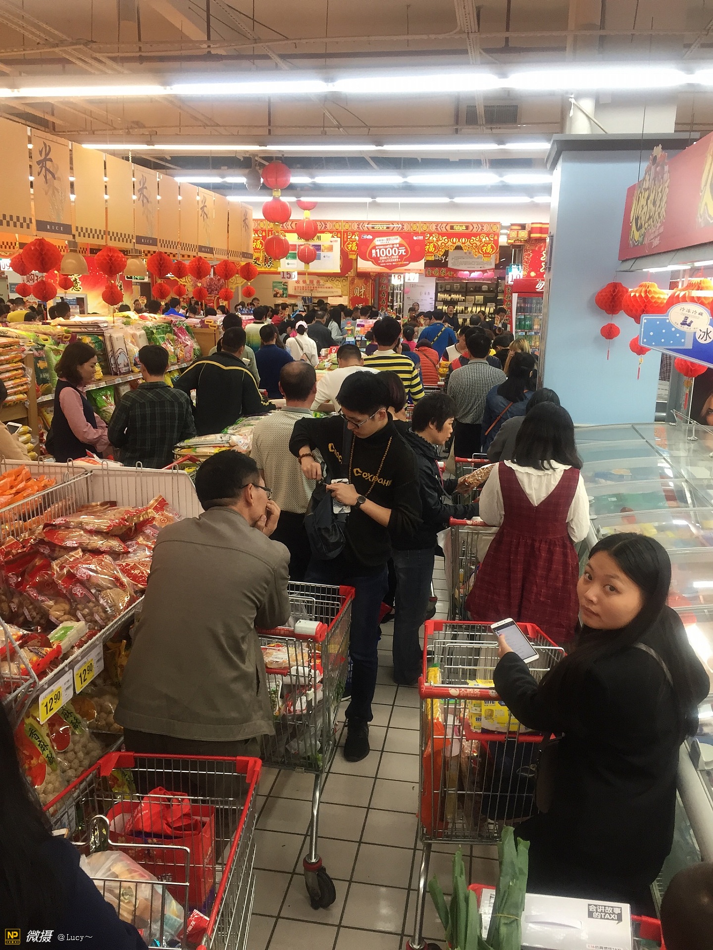 午饭后.我们三去美林区大润发超市购物、结果收银台前“大堵车”、交款足足等了四十分钟!哎…
