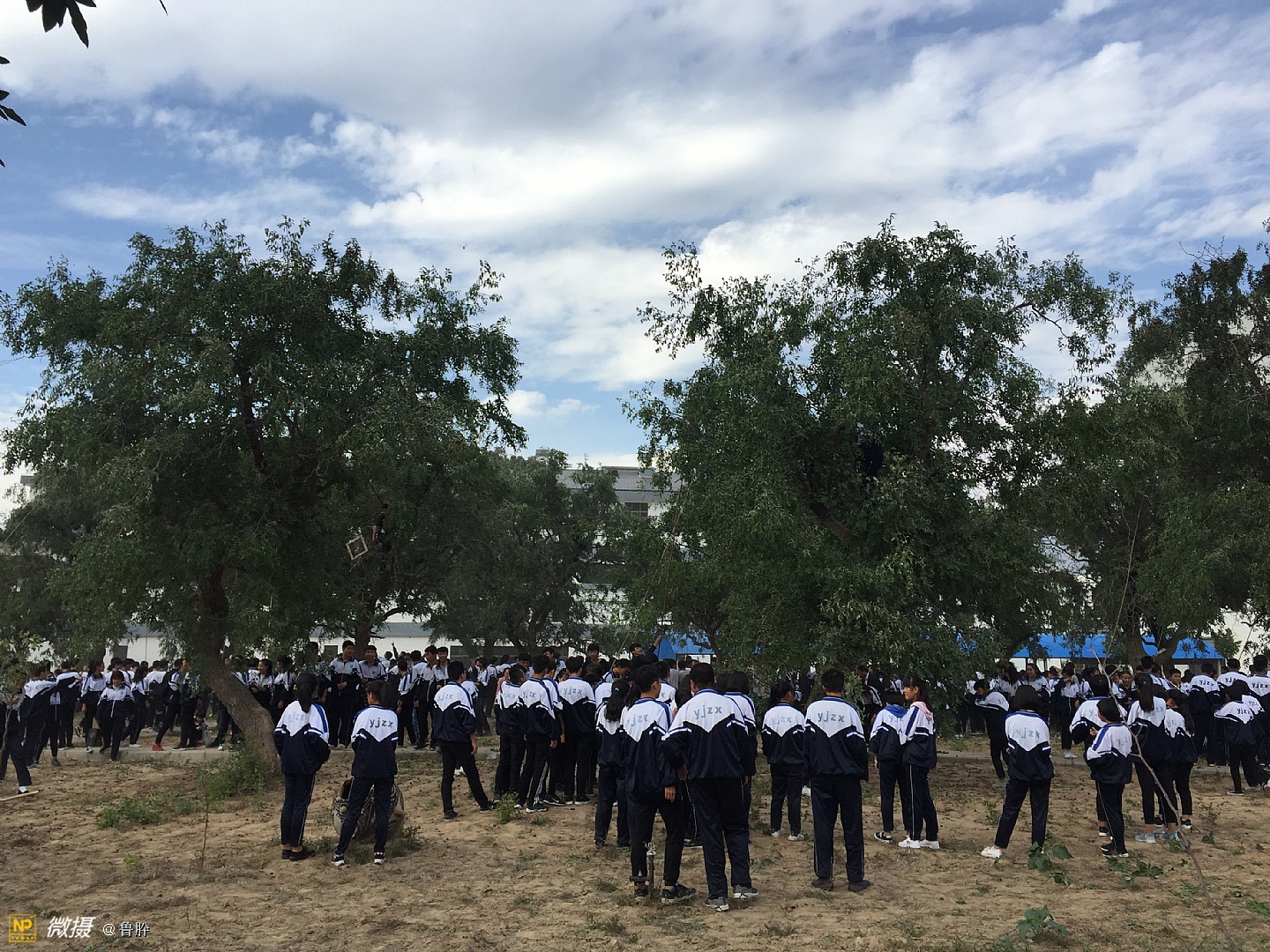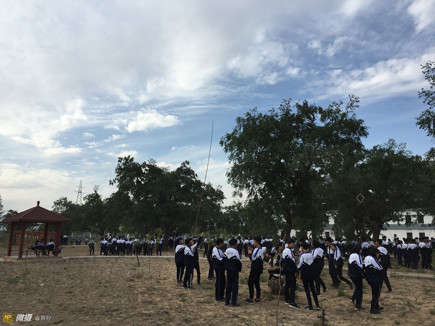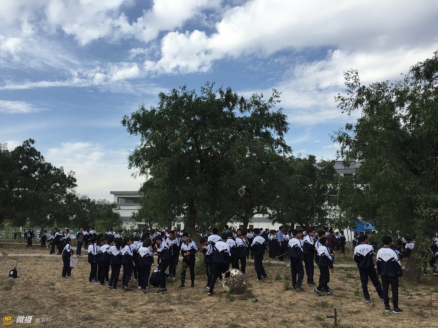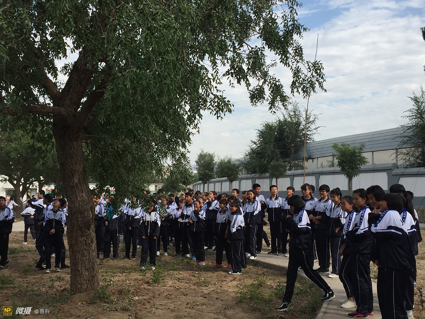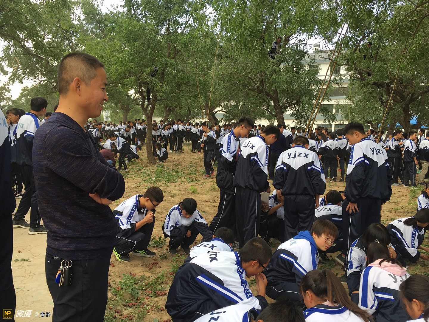 高二年级包级领导亲临现场,准备指挥打枣。亲自拿起竹杆和正教副主任开始了打枣。
