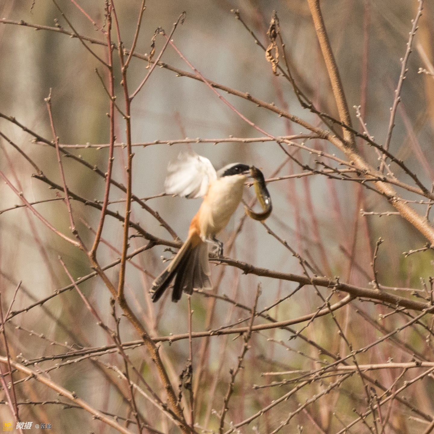 伯劳捕鱼食,第一次看见,惊奇!