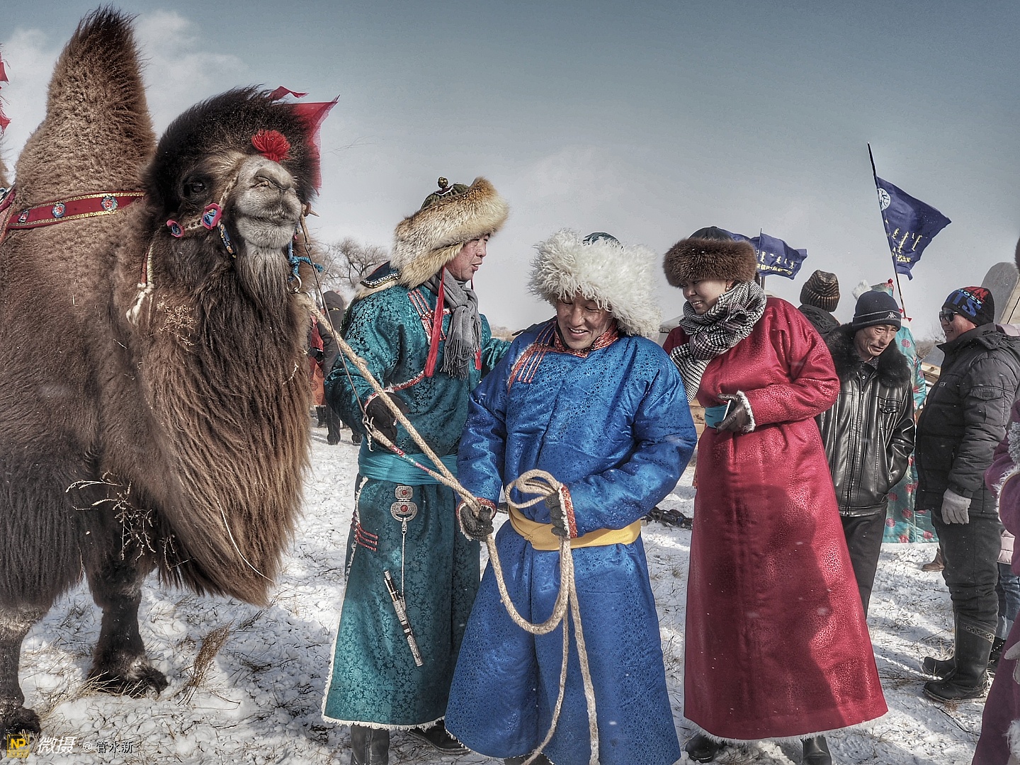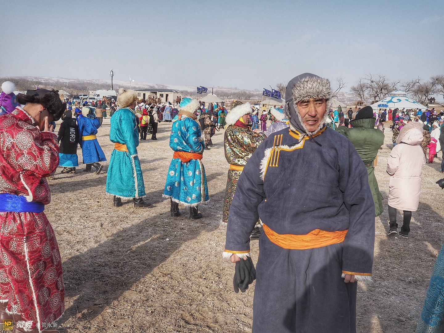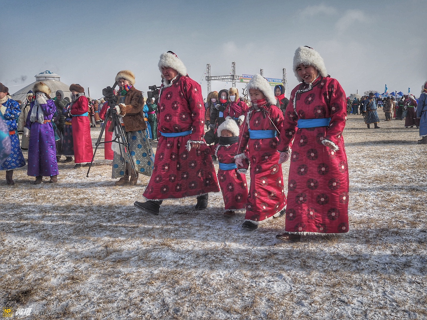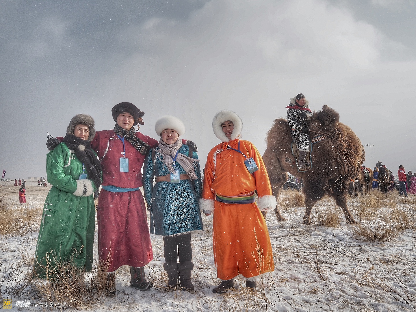 活动现场,浩荡的骆驼大队在冰雪草原上肆意奔腾,健壮的摔跤手在大雪天里赤膊上阵,穿着崭新蒙古袍的牧民正走上展示“T台”。场外则聚集了千余名摄影爱好者,不断定格下盛会的现场瞬间。