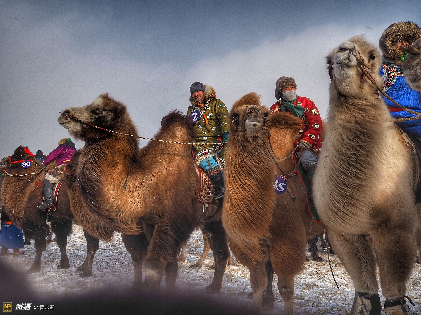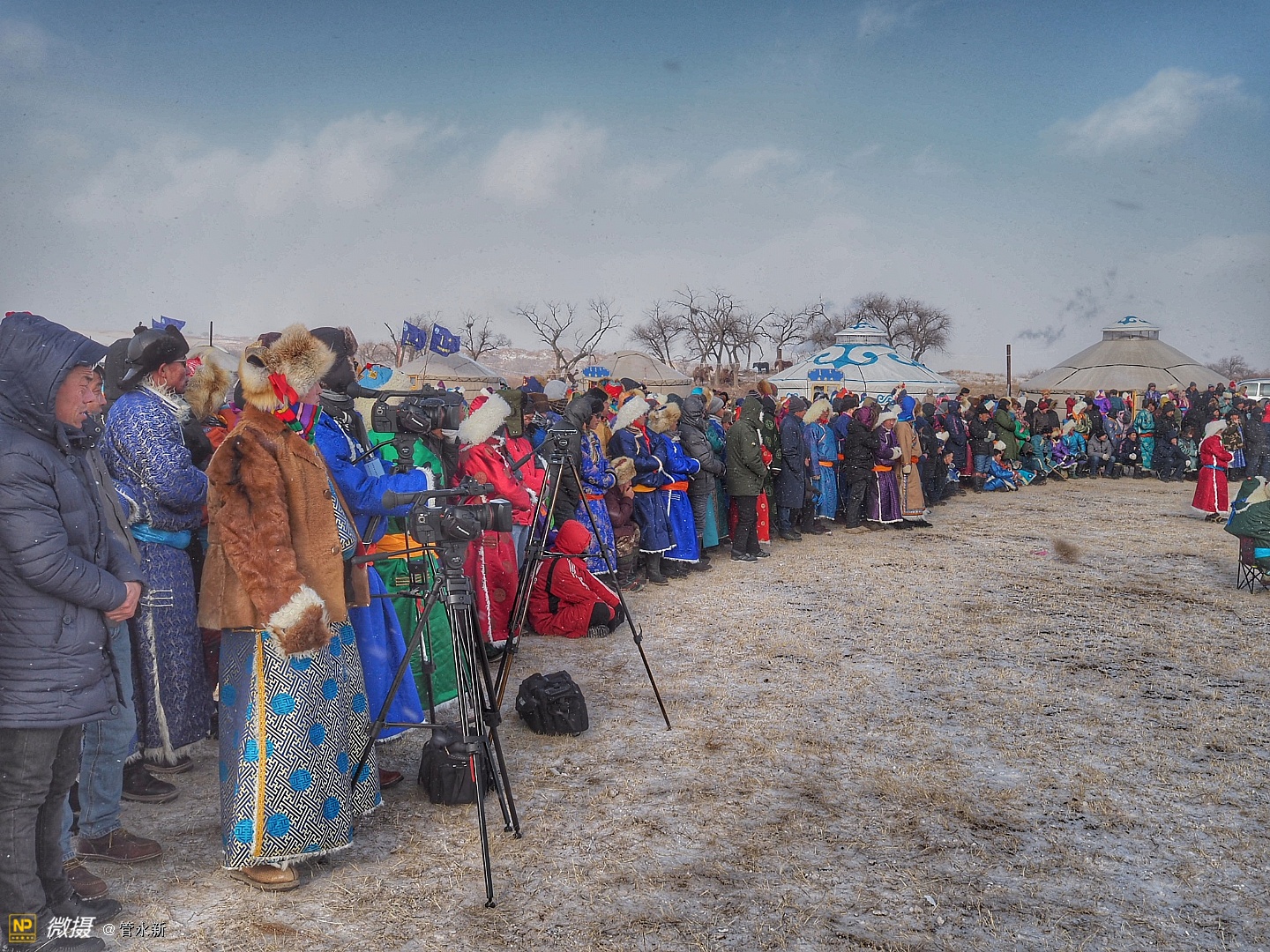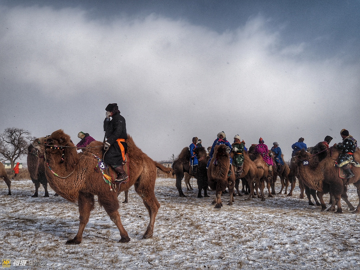 活动现场,浩荡的骆驼大队在冰雪草原上肆意奔腾,健壮的摔跤手在大雪天里赤膊上阵,穿着崭新蒙古袍的牧民正走上展示“T台”。场外则聚集了千余名摄影爱好者,不断定格下盛会的现场瞬间。
