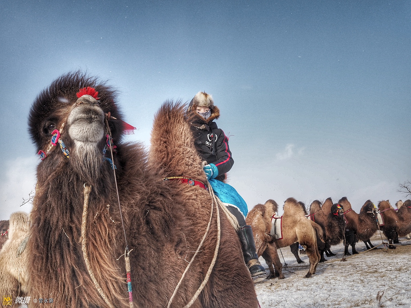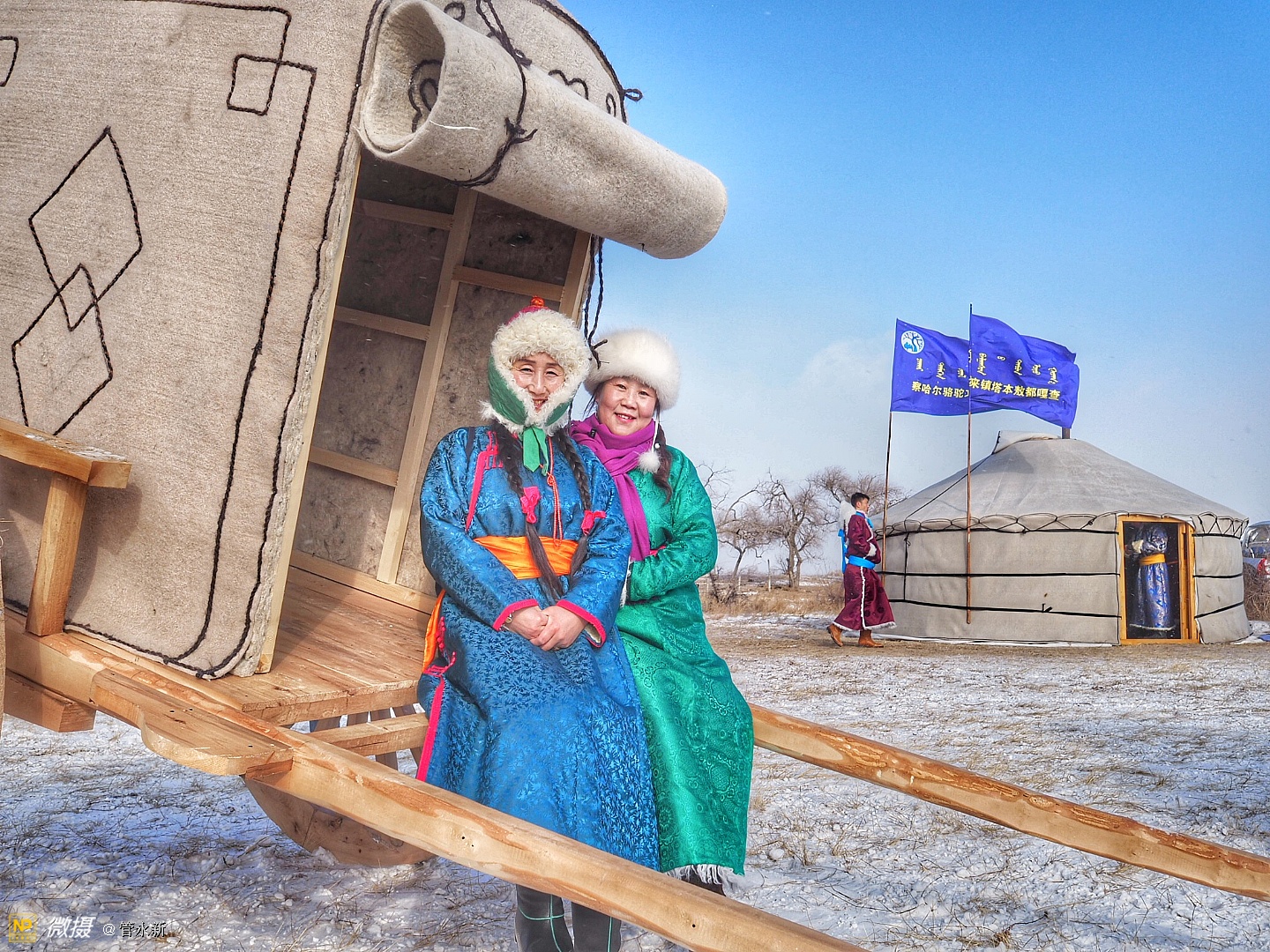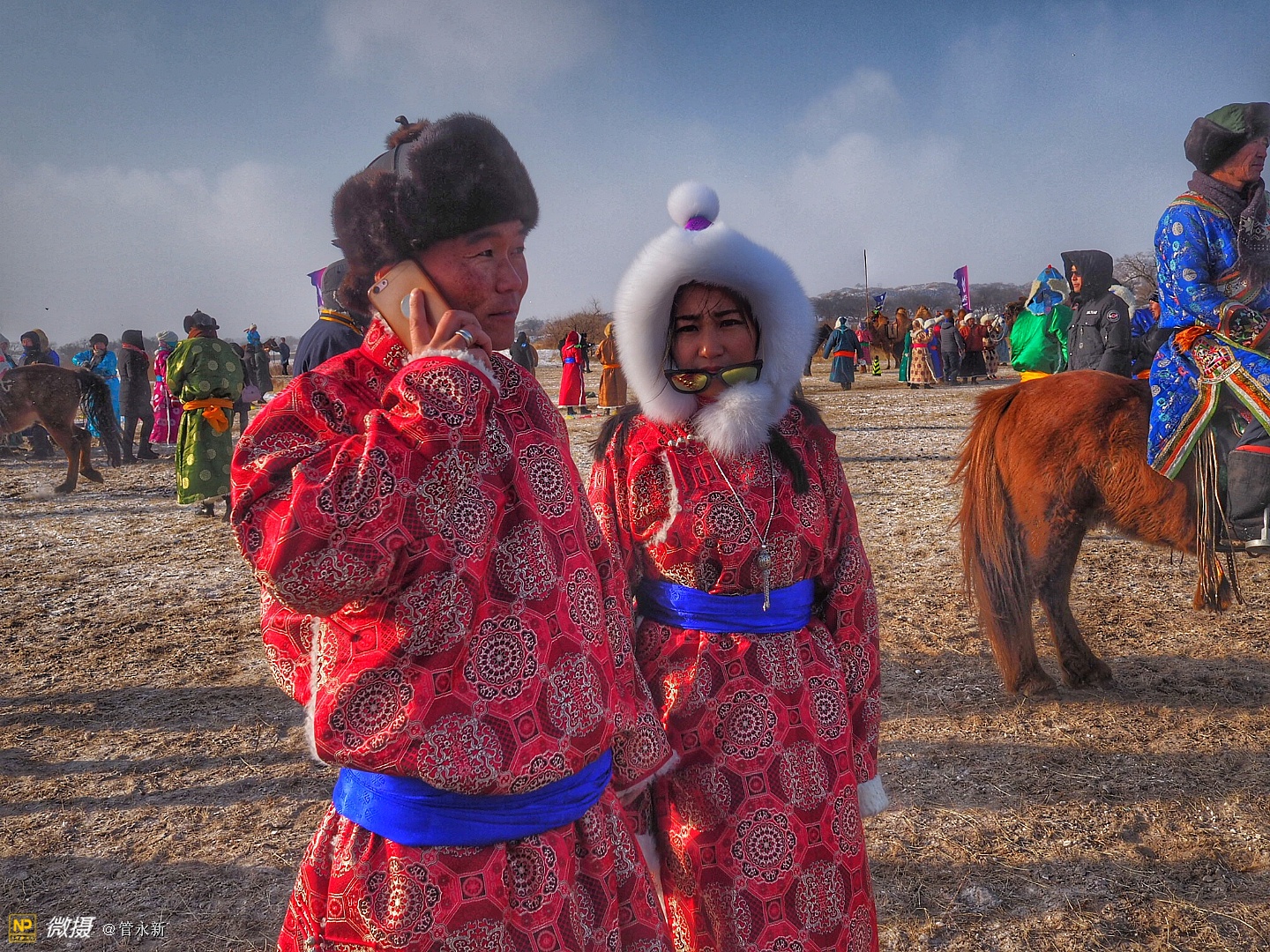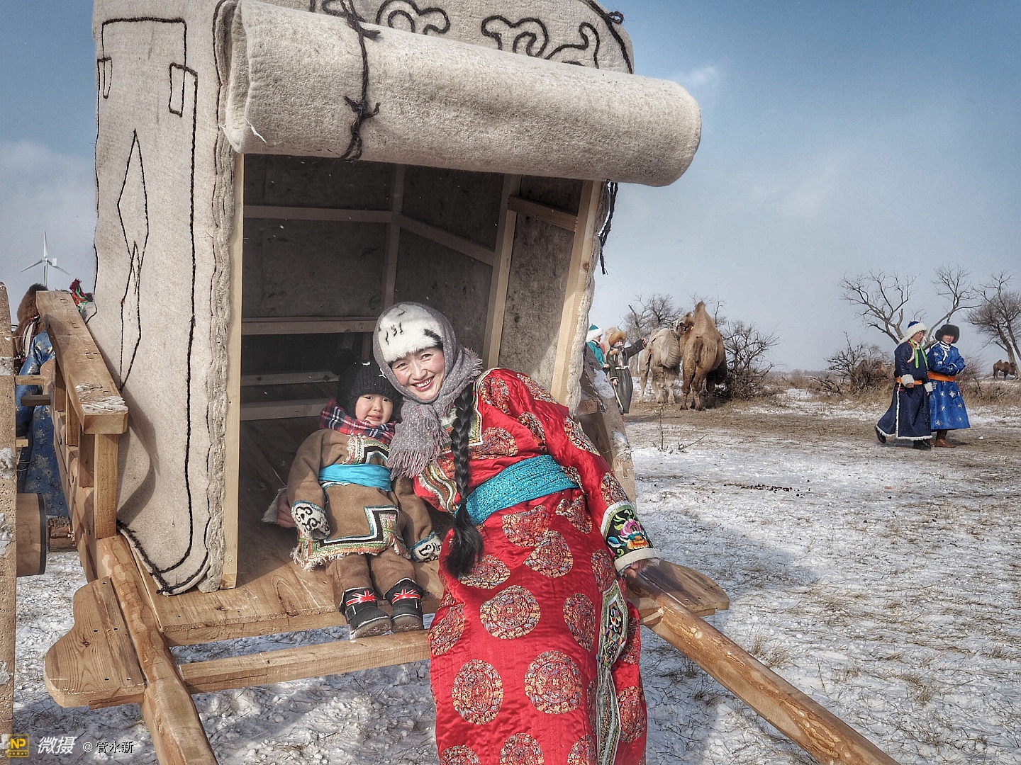 活动现场,浩荡的骆驼大队在冰雪草原上肆意奔腾,健壮的摔跤手在大雪天里赤膊上阵,穿着崭新蒙古袍的牧民正走上展示“T台”。场外则聚集了千余名摄影爱好者,不断定格下盛会的现场瞬间。