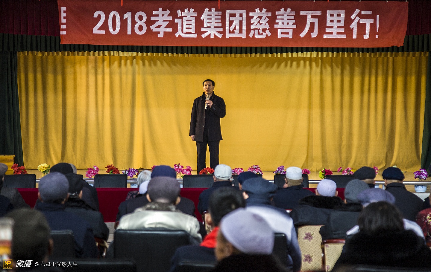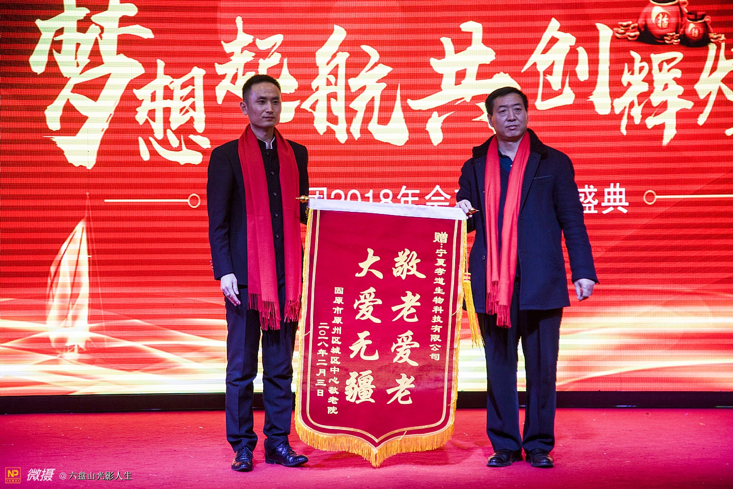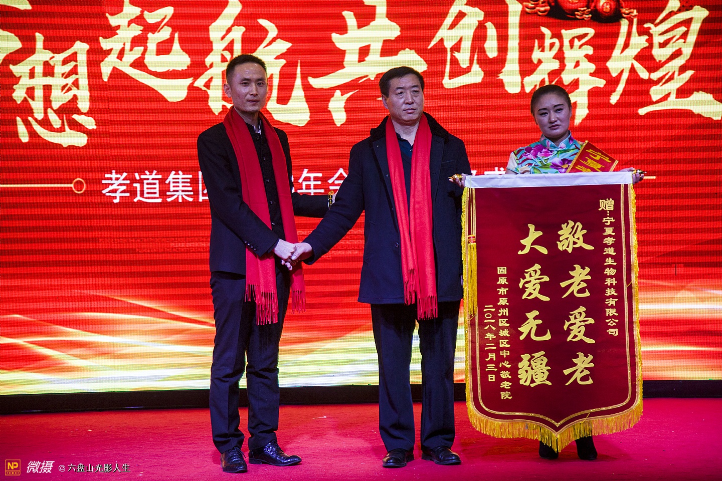 宁夏孝道生物科技公司给敬老院献爱心 日前, 在中华民族传统节日2018年春节即将来临之际,2016年度“感动宁夏十大青年创业人物”、宁夏孝道生物科技集团有限公司董事长郑景夫率领公司部分团队负责人,带着企业“孝悌为本、科技利众”的核心价值观,带着对社会的一份责任和义务,来到原州区城区中心敬老院,为敬老院的100多位老人送去了25袋大米、25袋面粉、10壶清油的节日慰问品。同时,还给老人们演出了由公司员工自编自演的文艺节目,给老人们送去节日的祝福。精彩的演出使老人们笑容满面,不由自主的发出阵阵掌声。宁夏生物科技有限公司成立于2015年,是一家中医研究推广、中医古方挖掘,中药制剂研发为一体的高新技术企业,公司以“孝悌为本,科技利众”为核心价值观,以振兴民族品牌为己任,为入类健康而奋斗。 祁学斌摄影报道