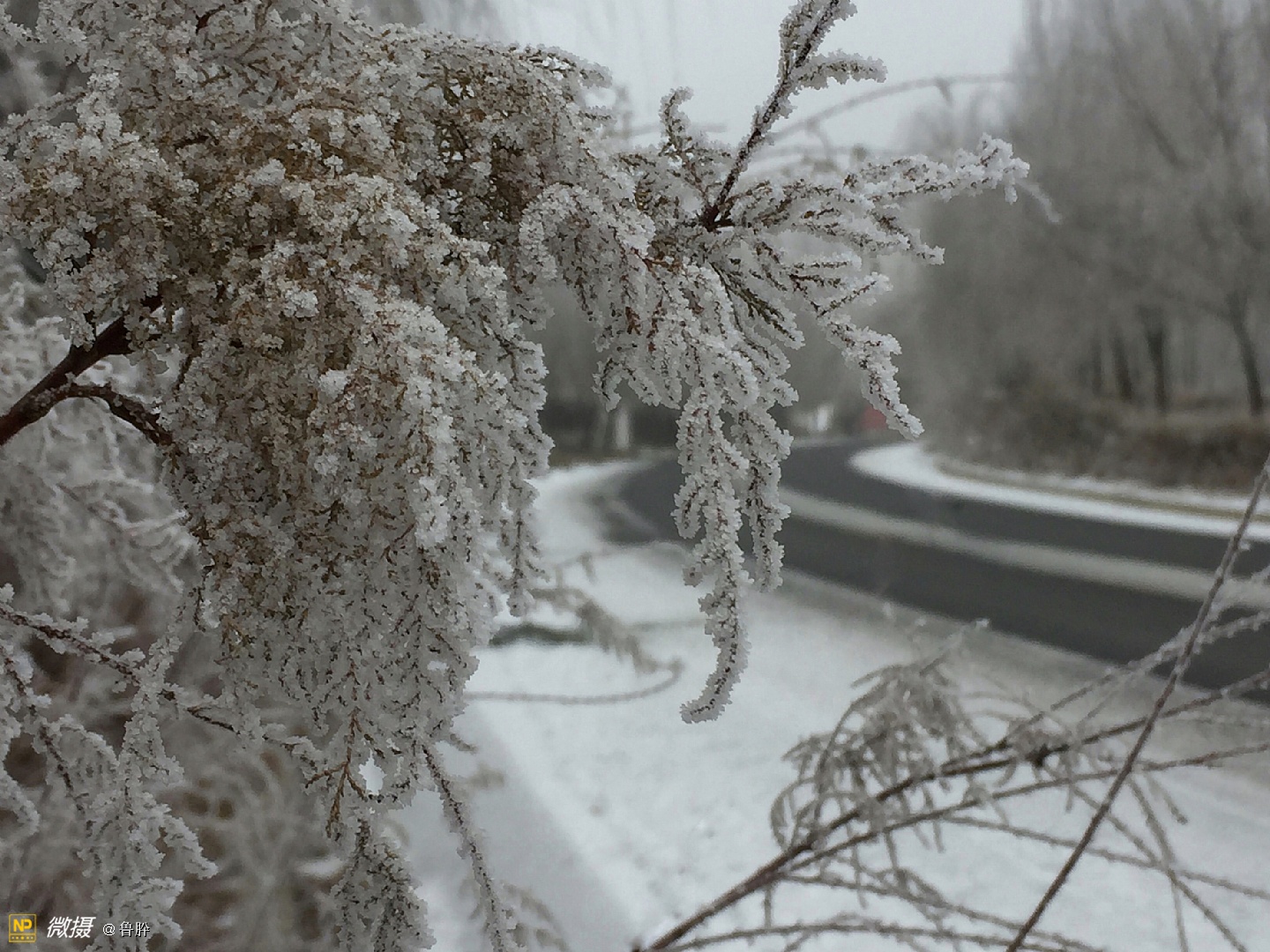 回家途中,偶遇陈井的雪淞美景,甚是兴奋!