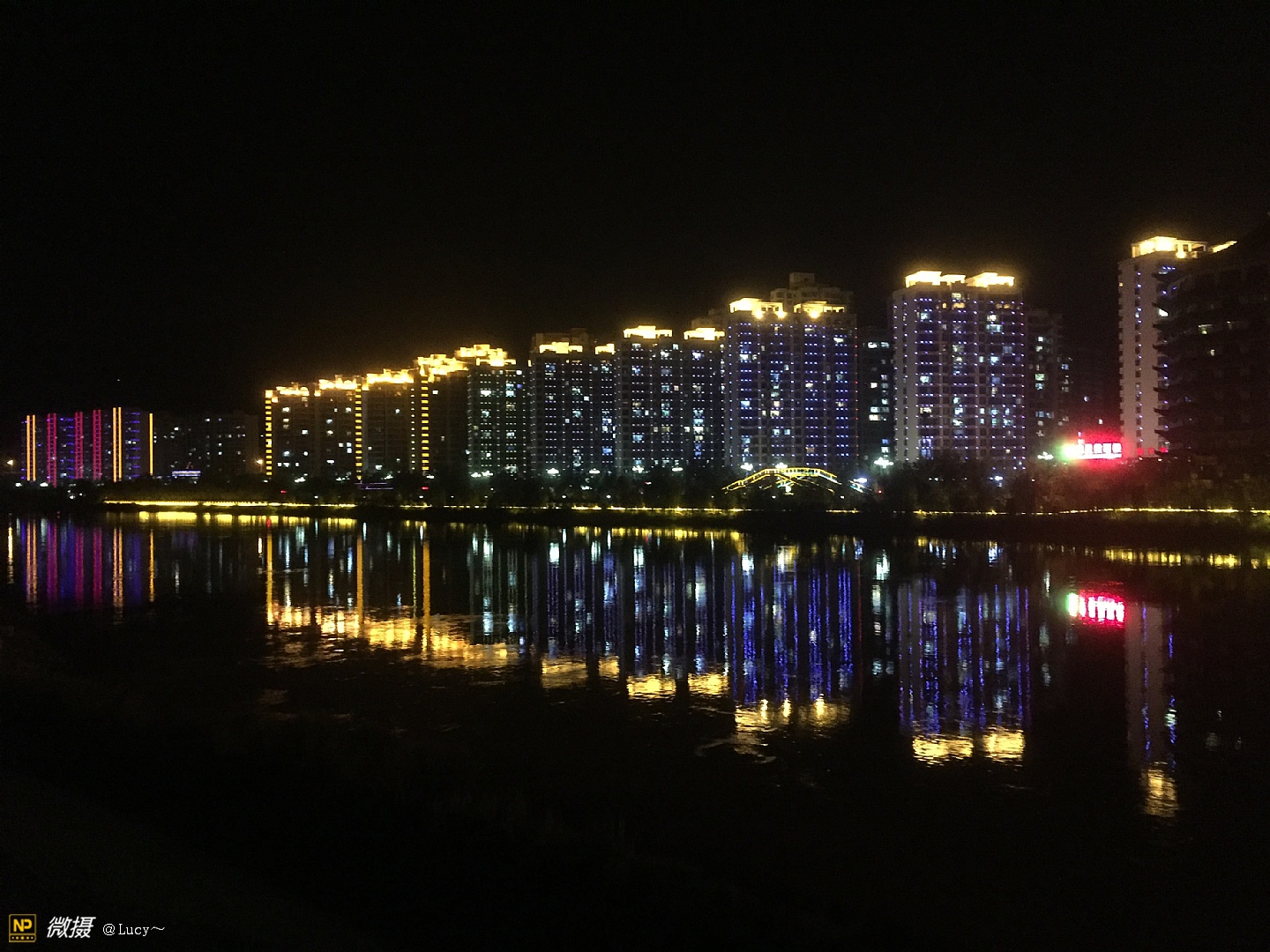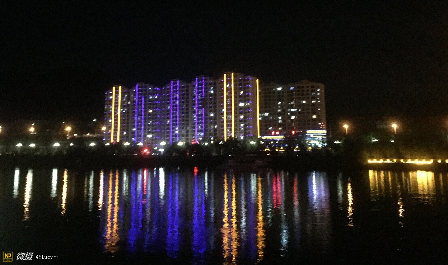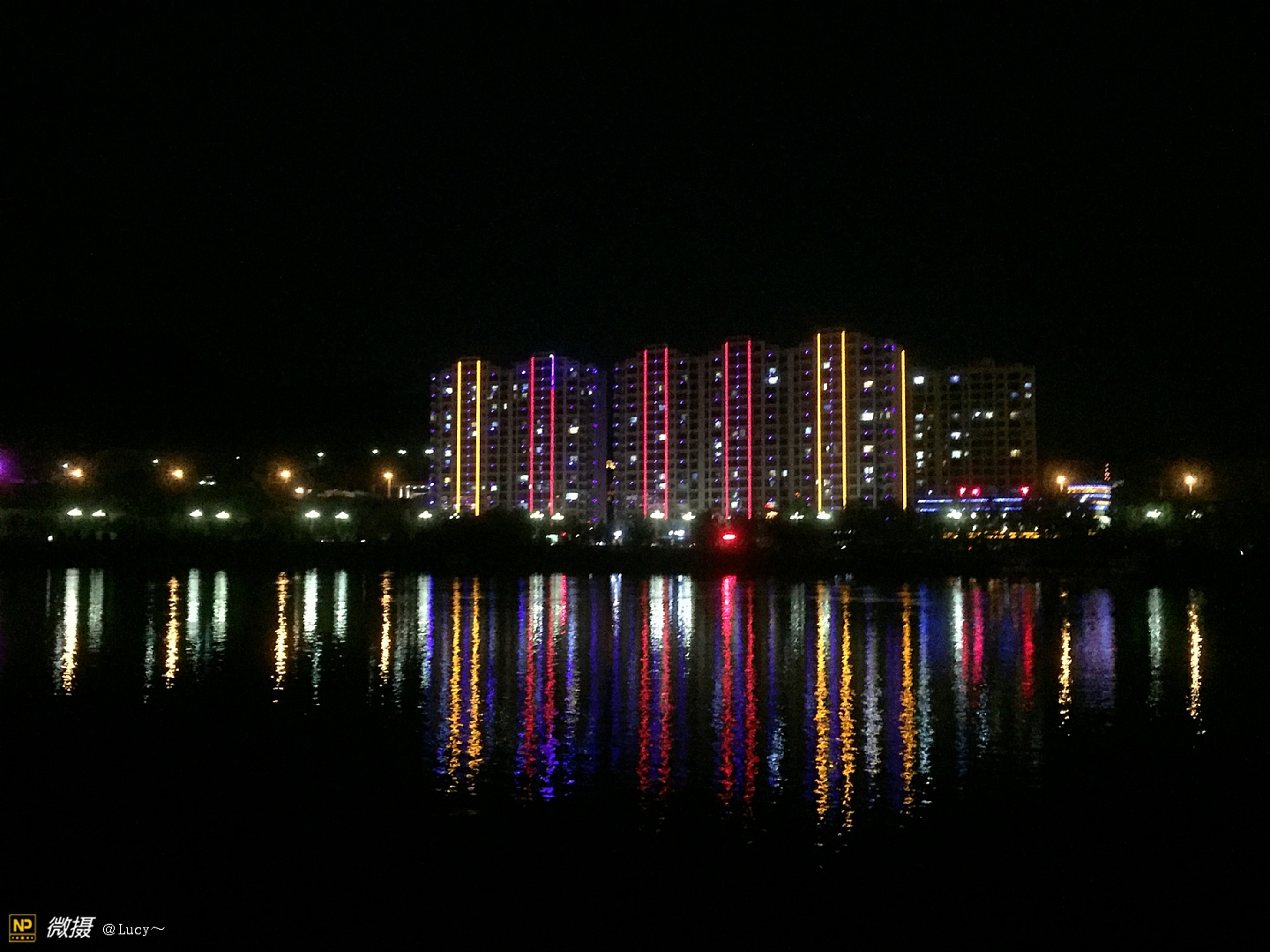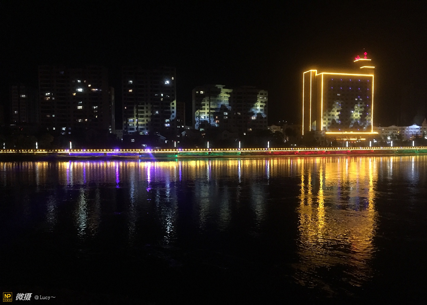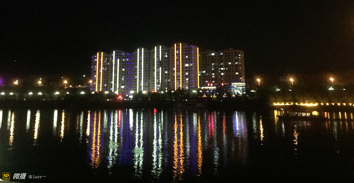 装饰一新的一座座高楼、倒映在河中、坚硬的外形又平添了几分朦胧与柔美!
