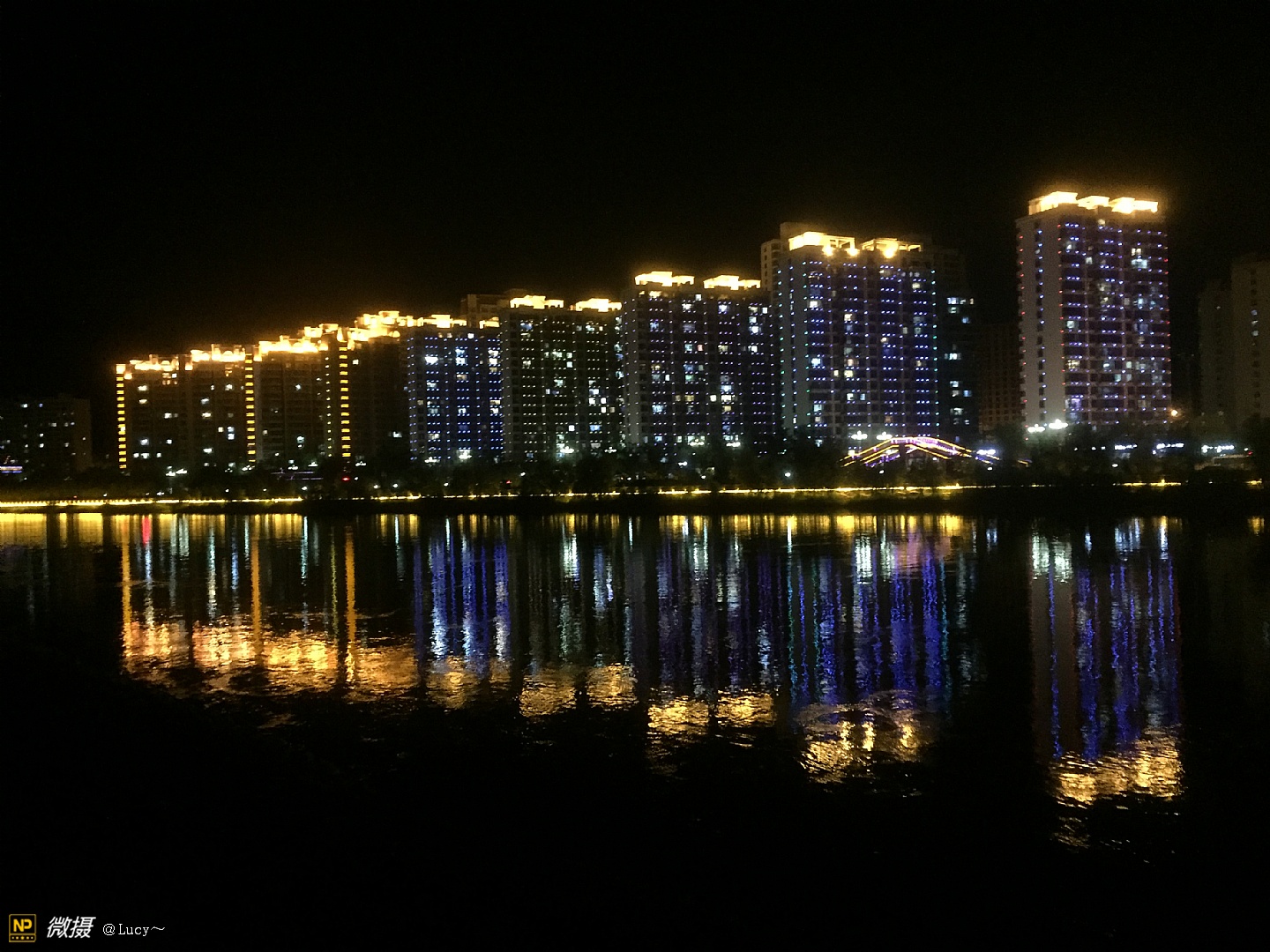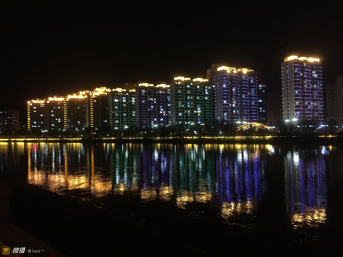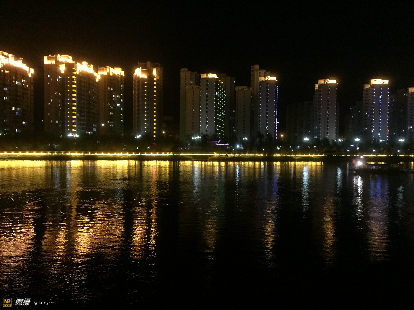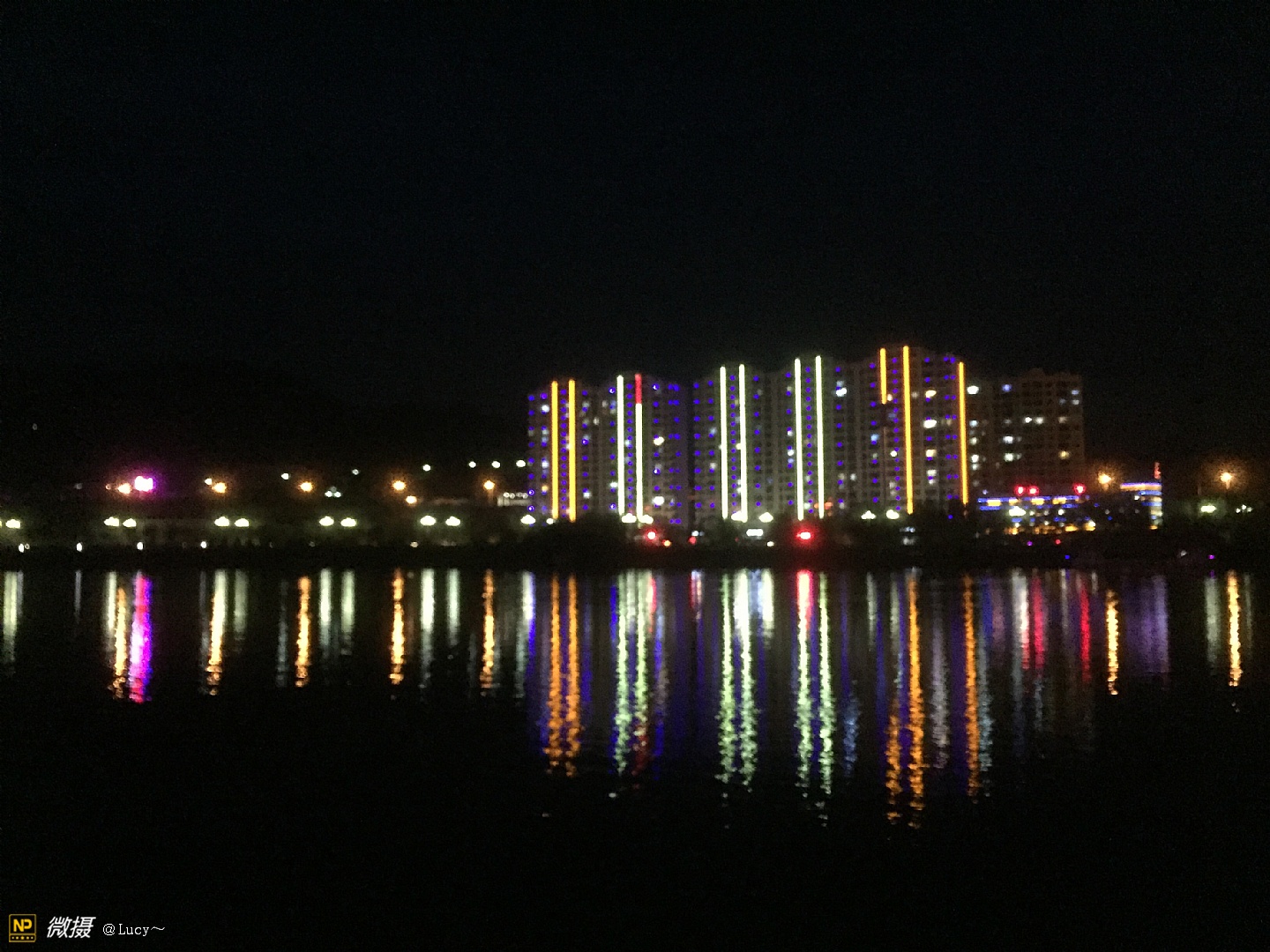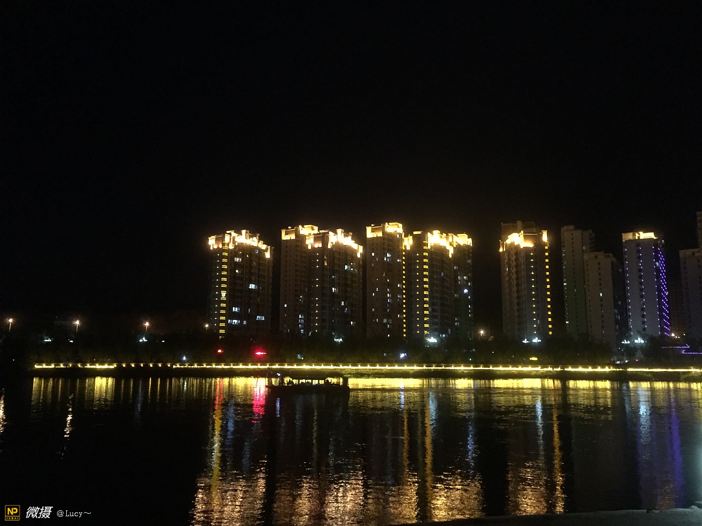 装饰一新的一座座高楼、倒映在河中、坚硬的外形又平添了几分朦胧与柔美!