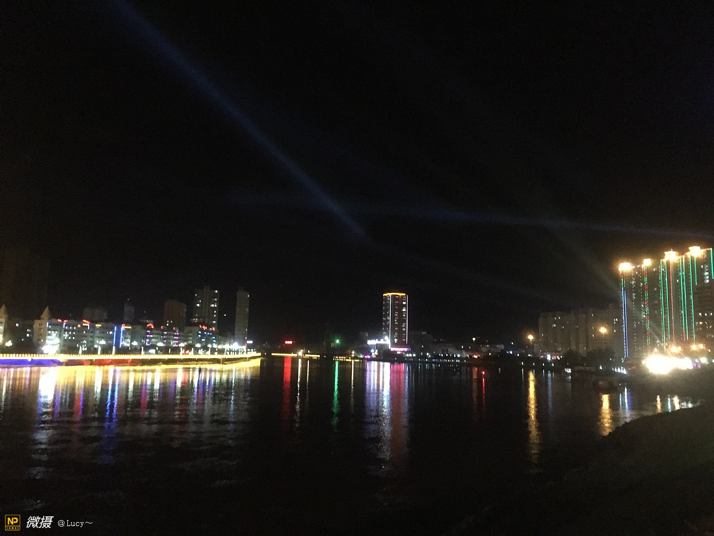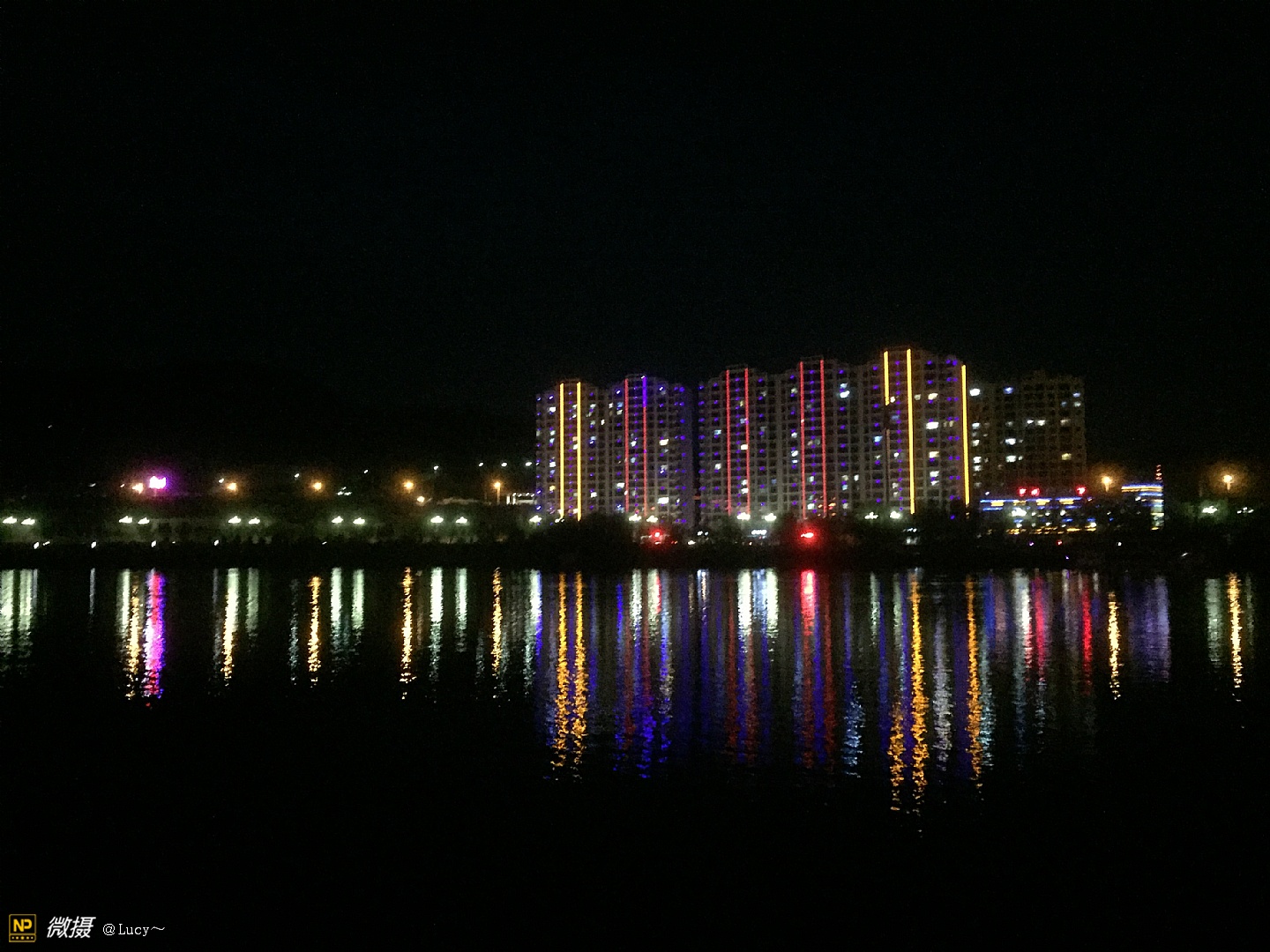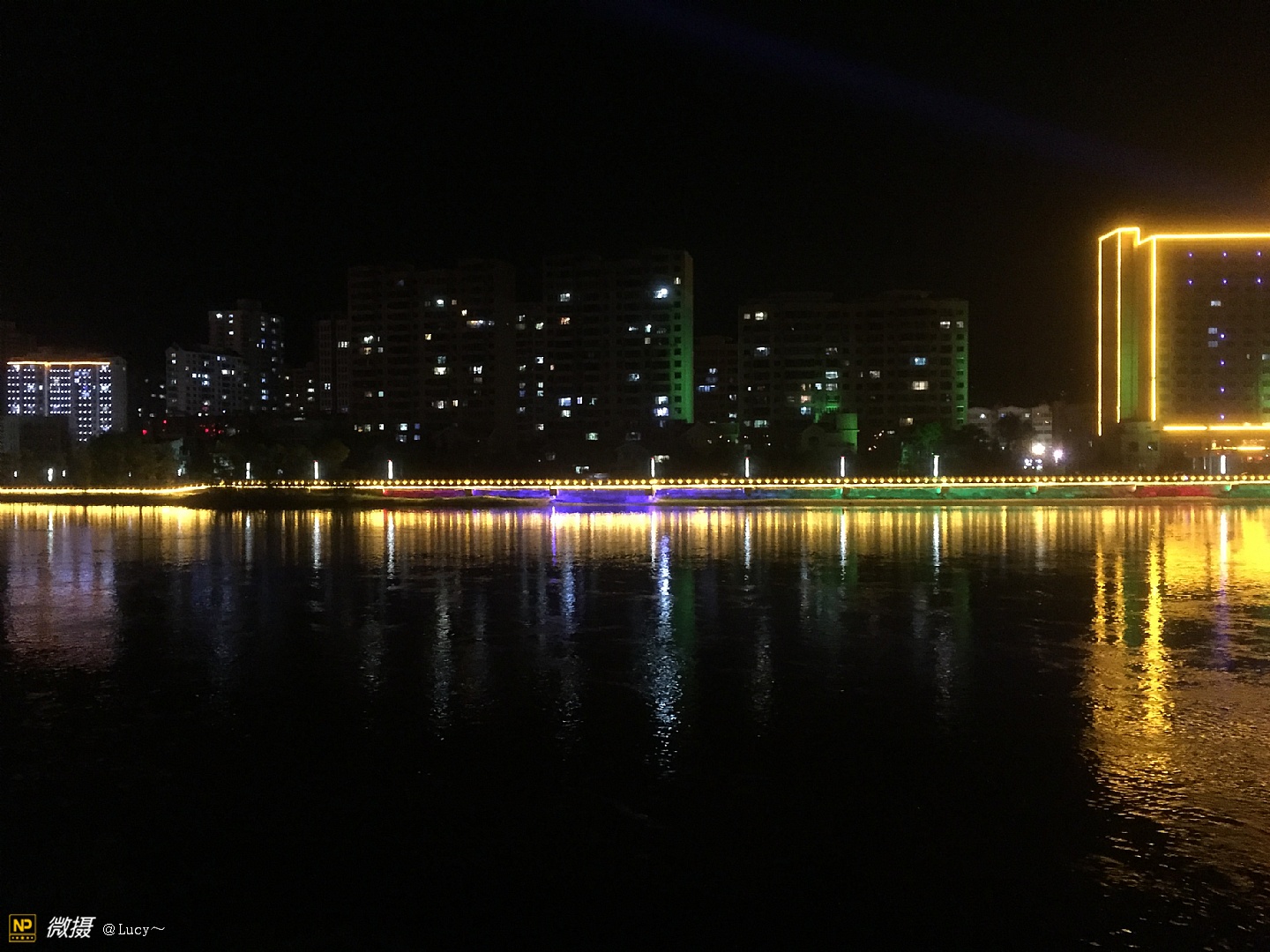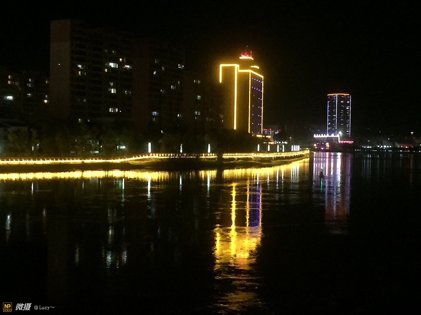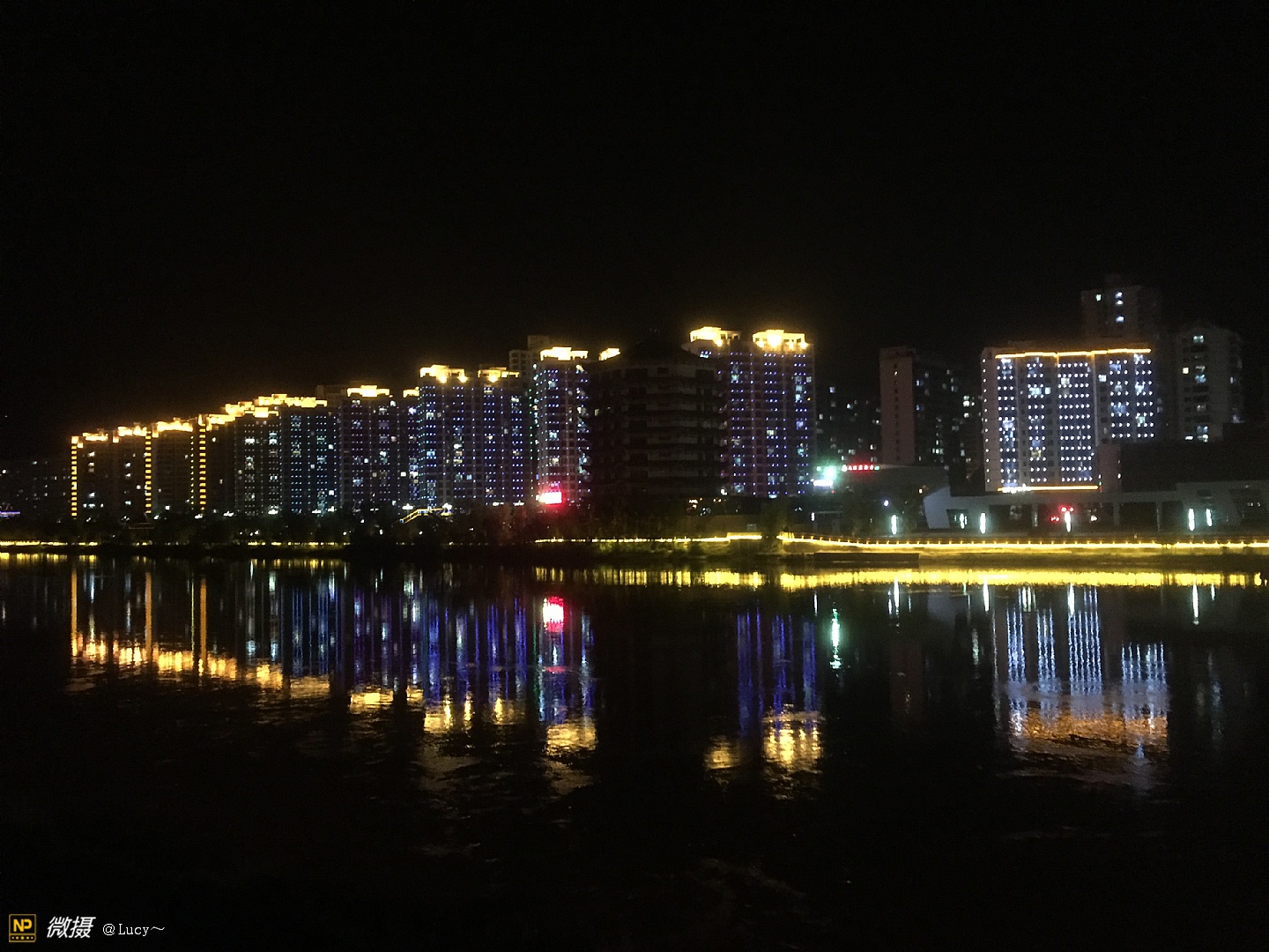 装饰一新的一座座高楼、倒映在河中、坚硬的外形又平添了几分朦胧与柔美!